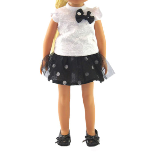 Black and White Polka Dot Skirt Set for 14 1/2-inch dolls