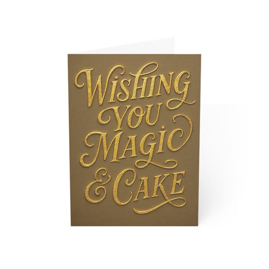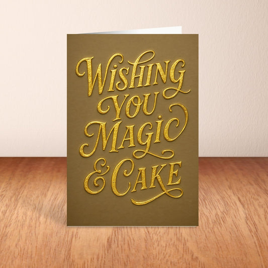 Wishing You Magic & Cake Greeting Card – Gold Foil Style Birthday Card with Envelope