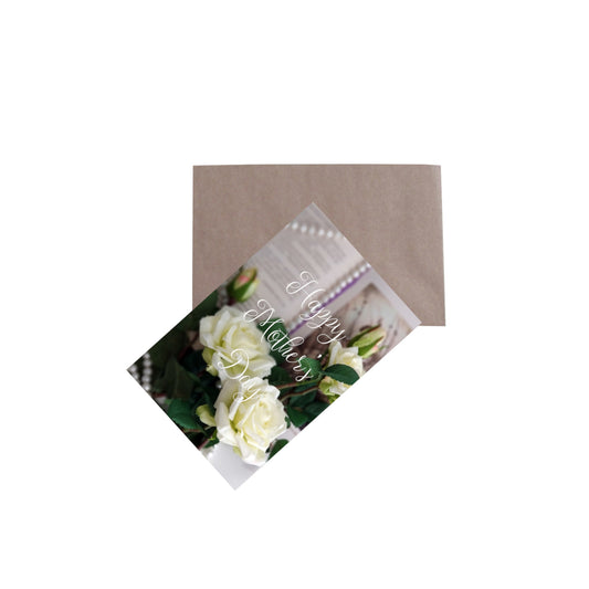 Happy Mother's Day 5.5 x 8.5 Greeting Card with Pearls and Flowers and Envelope