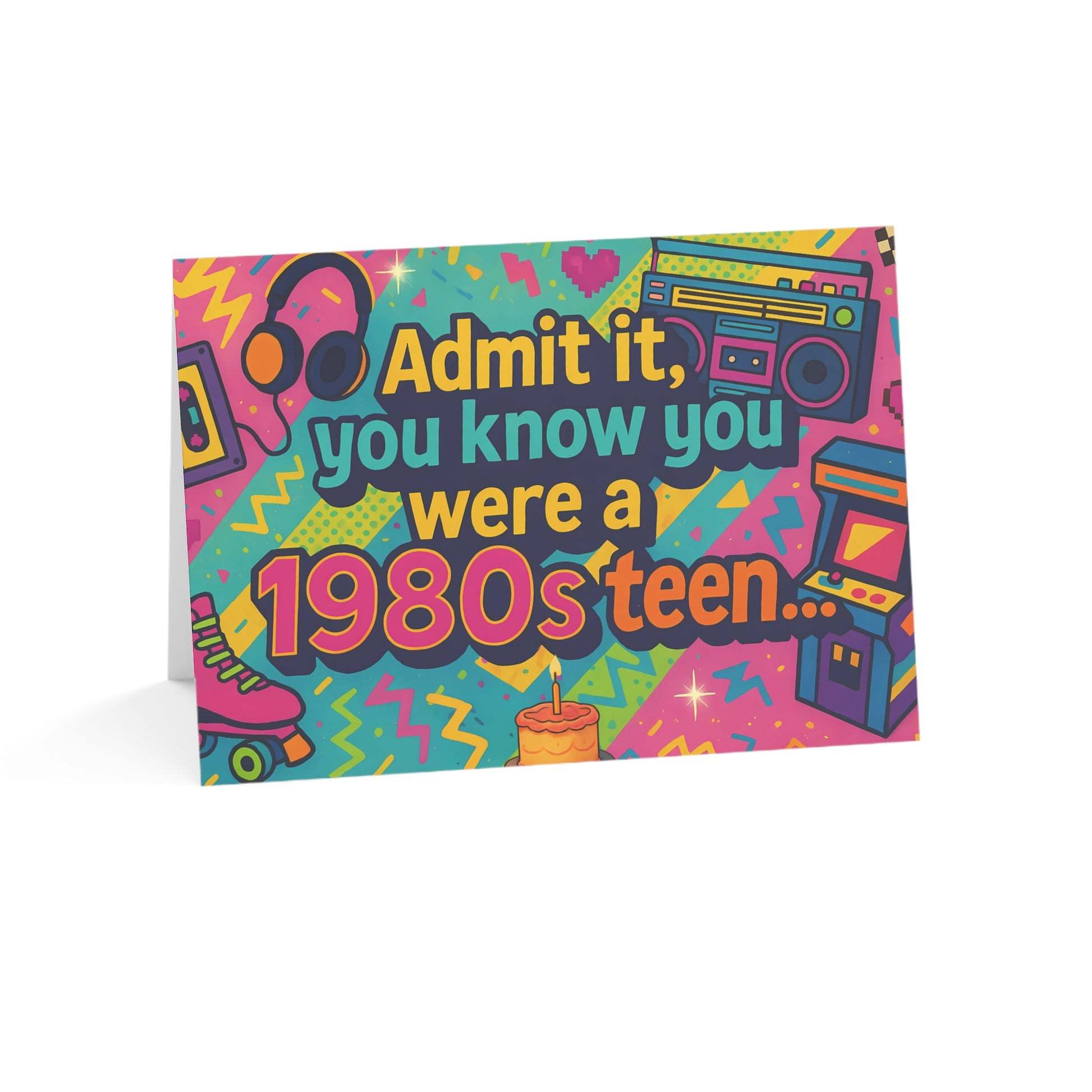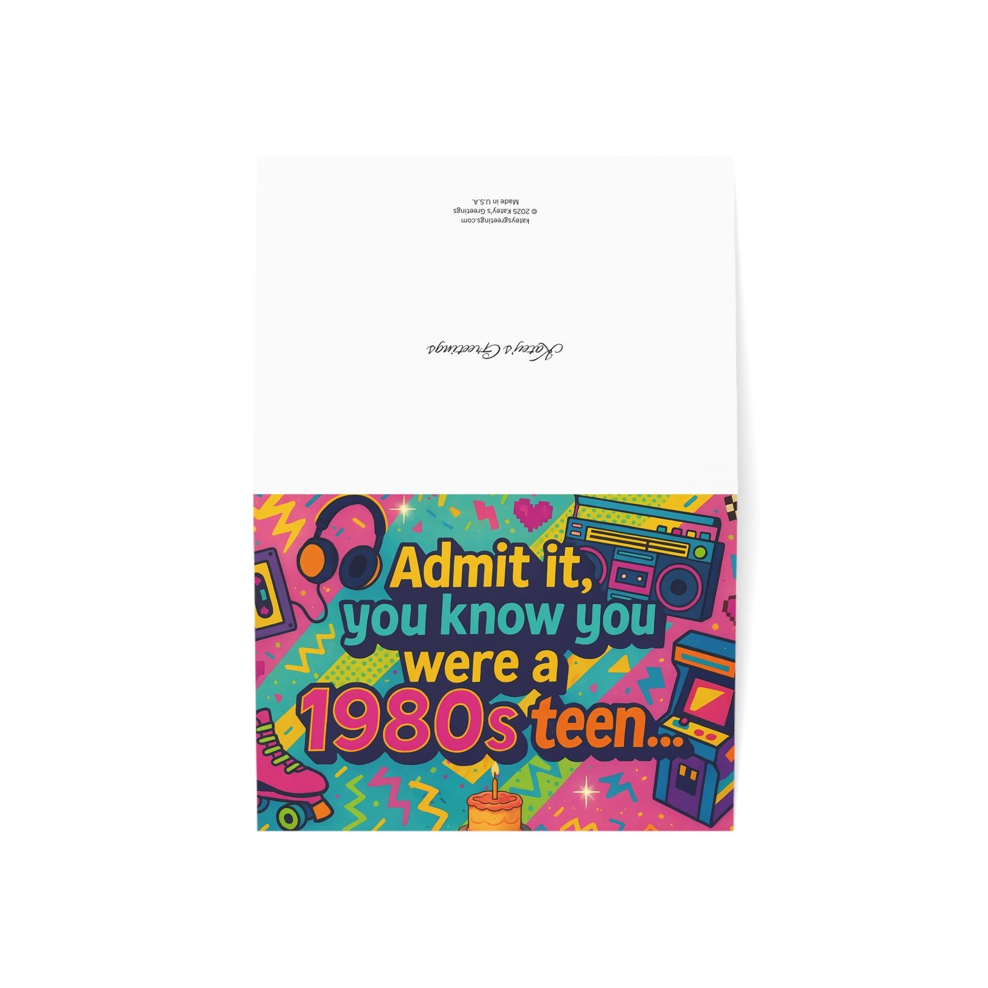 Bring the fun and flair of the '80s back with this vibrant and nostalgic birthday card titled "Admit it, you know you were a 1980s teen..."