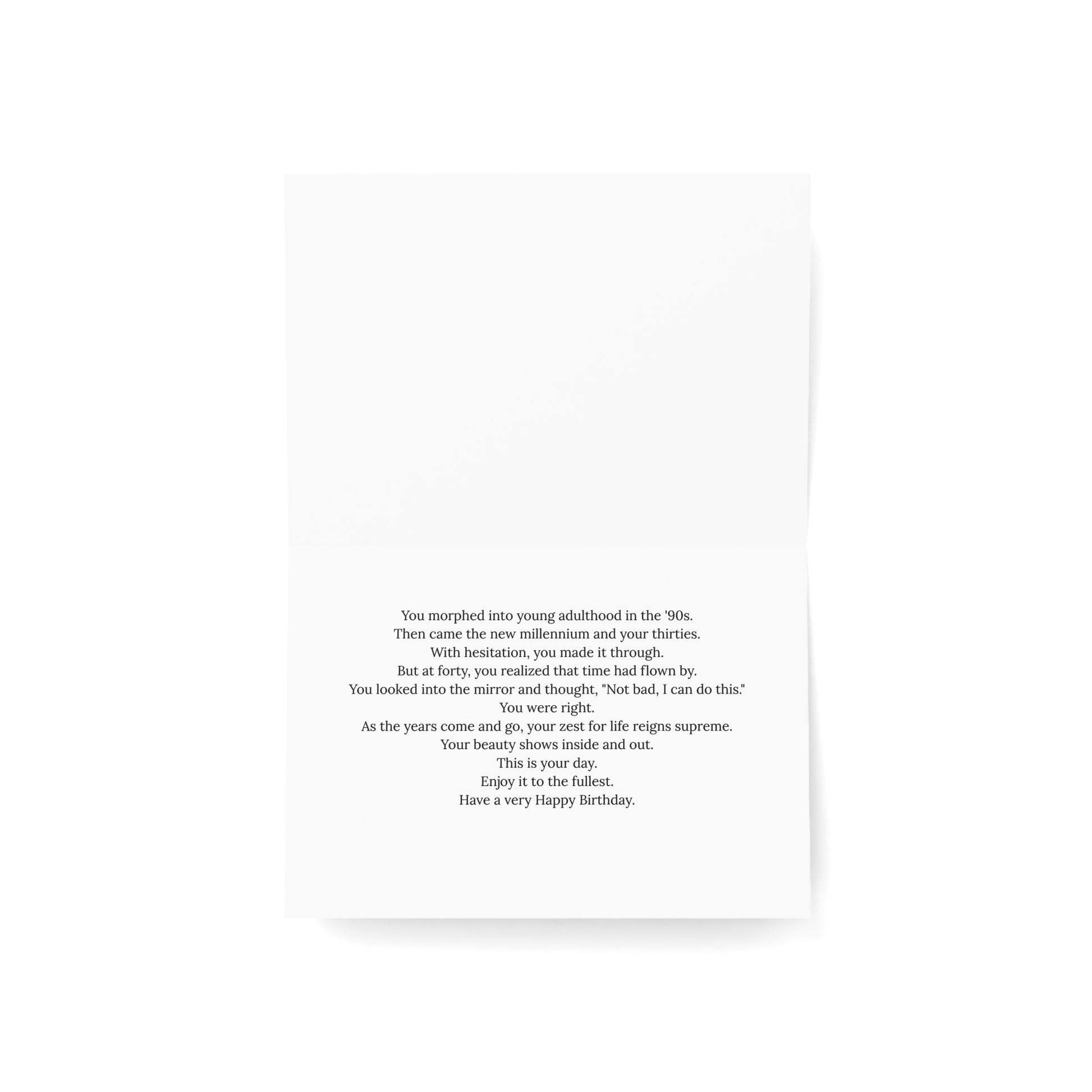 Packed with retro energy—think neon patterns, boom boxes, roller skates, and cassette tapes—this card is a perfect throwback for anyone who rocked leg warmers and big hair back in the day.