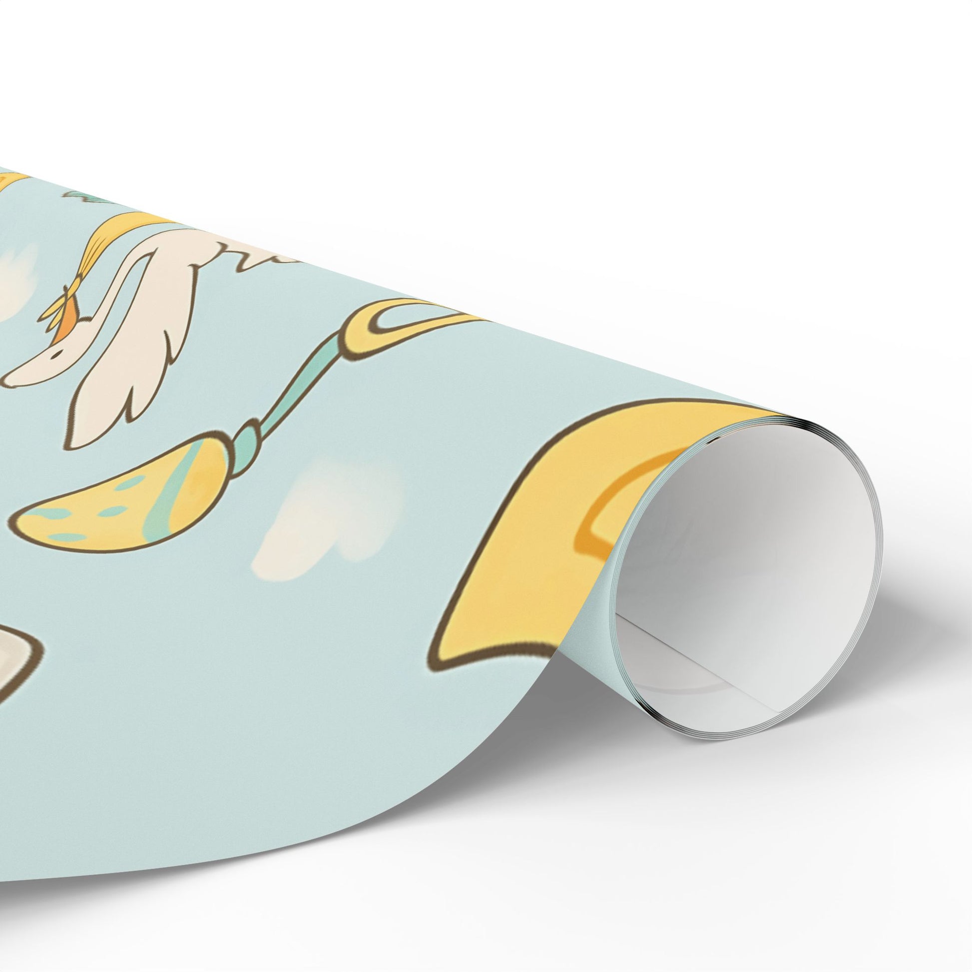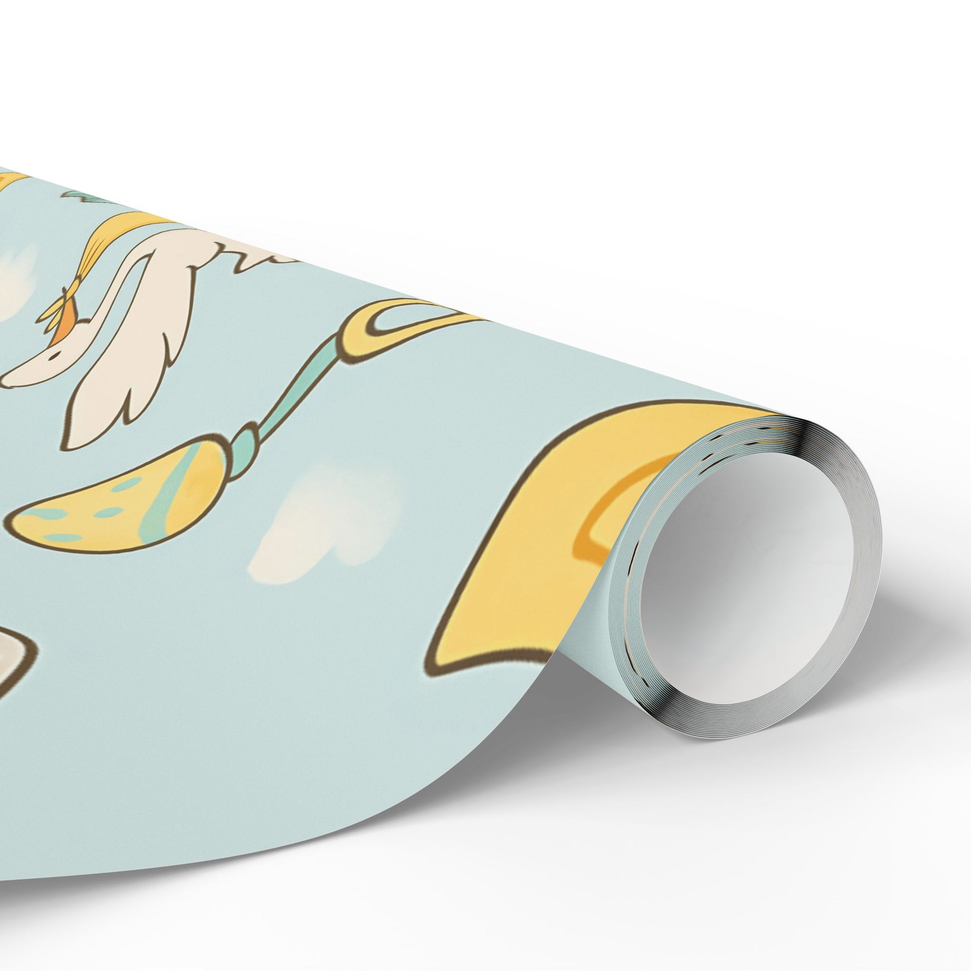 Baby Shower Wrapping Paper – Storks, Ducks & Baby Essentials on Sky Blue