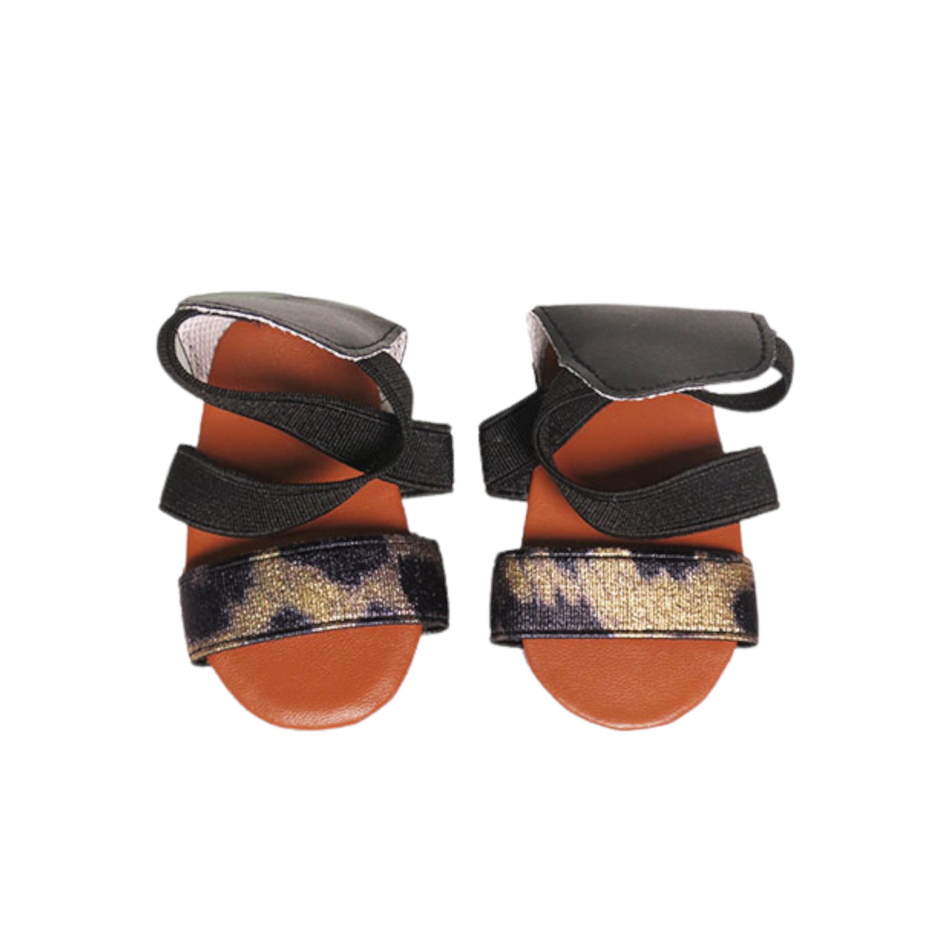 Give your doll’s outfit a touch of elegance with these stylish Black and Gold Sandals!