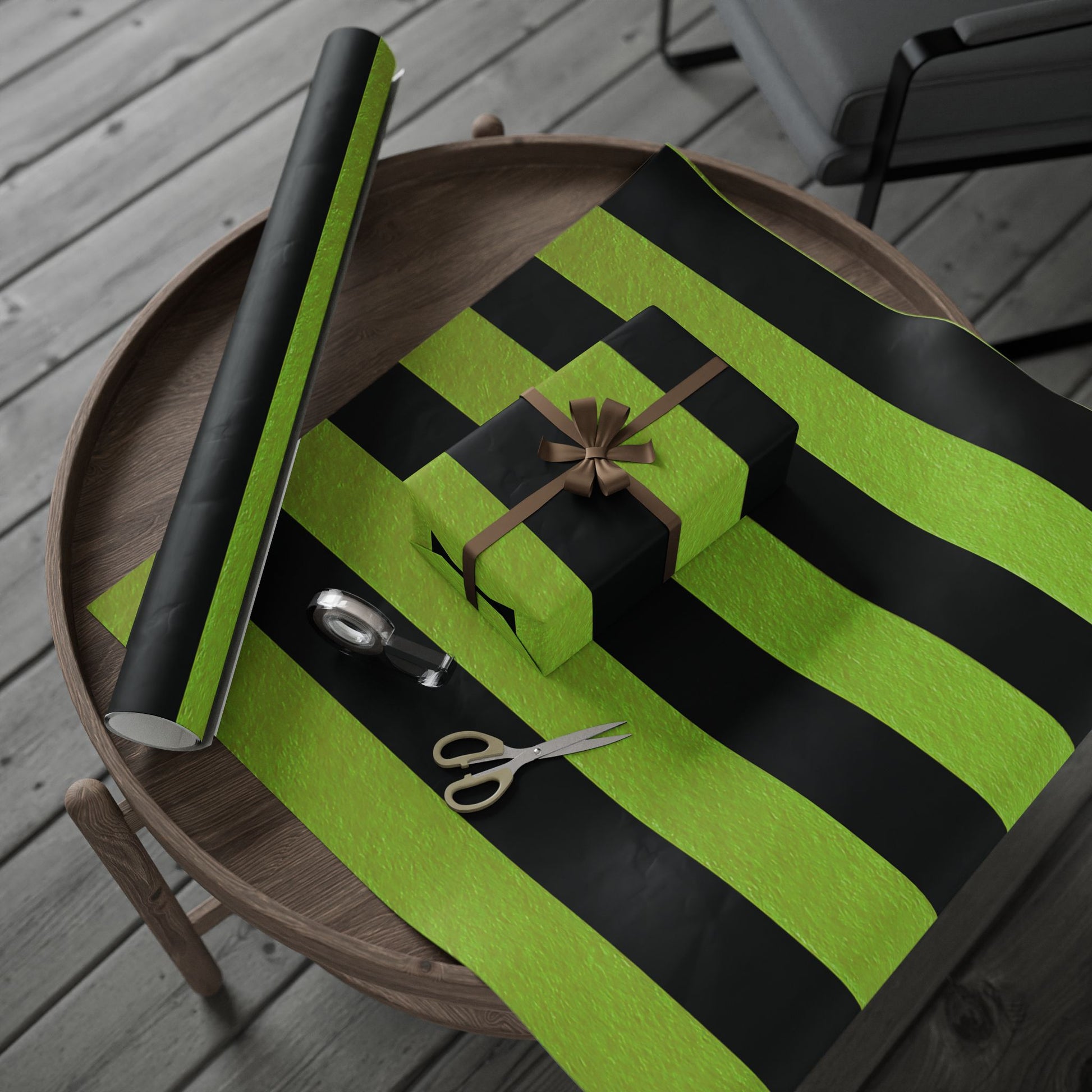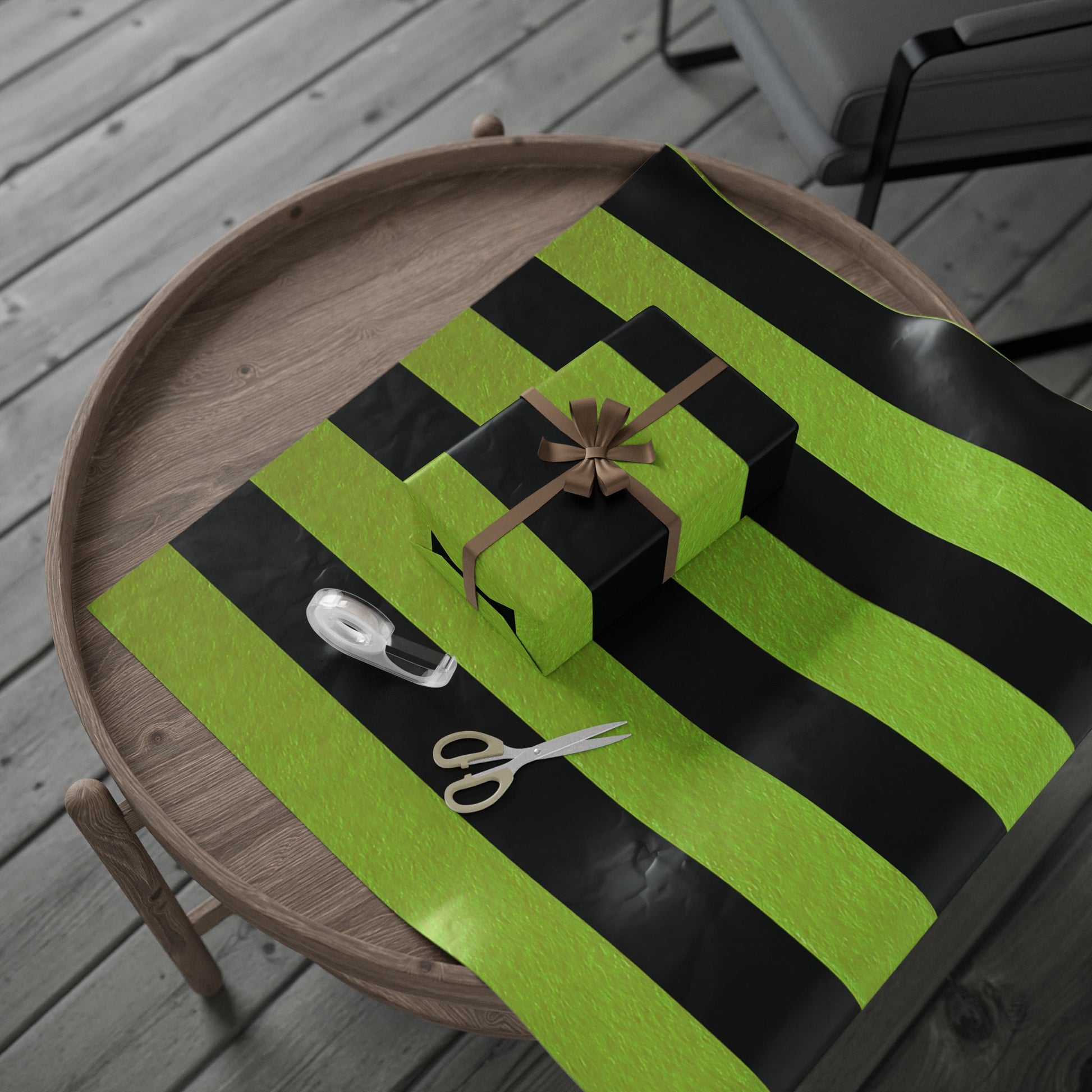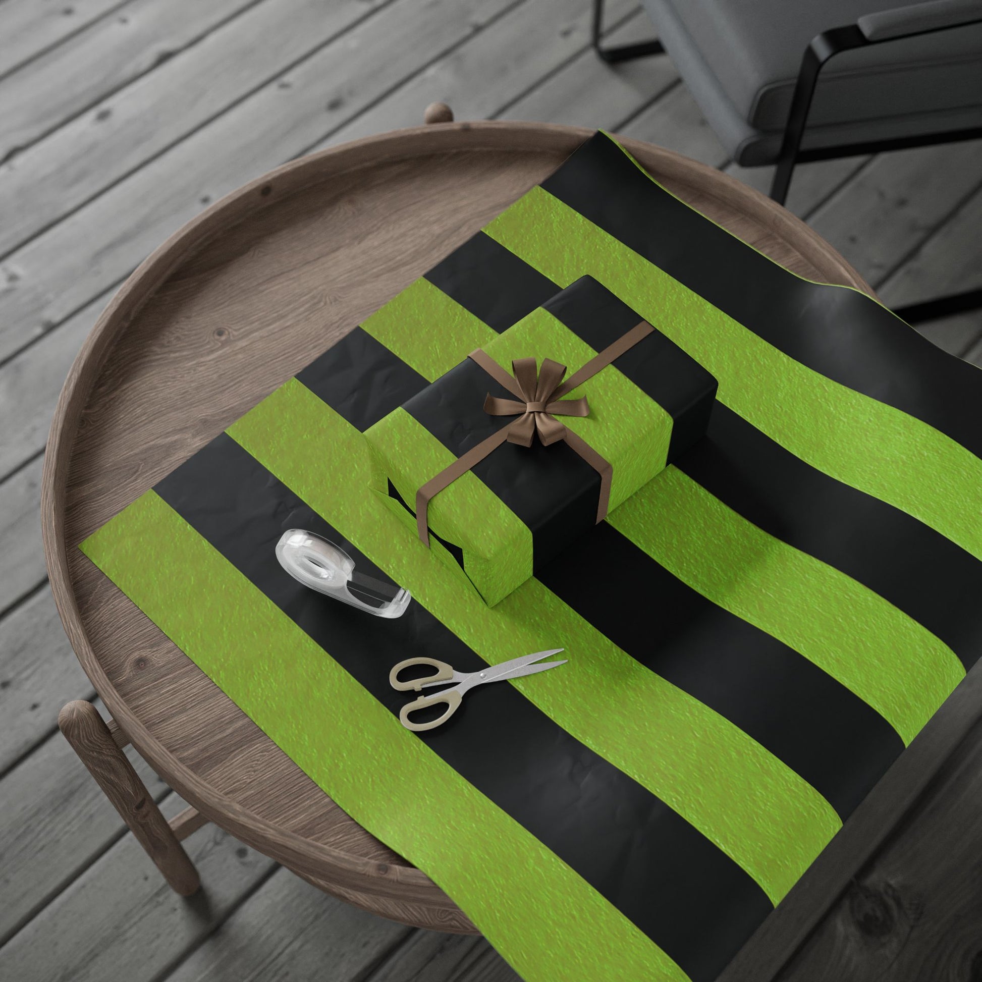 Black and Green Striped Luxury Wrapping Paper – Glossy or Matte Finish, Durable 90gsm