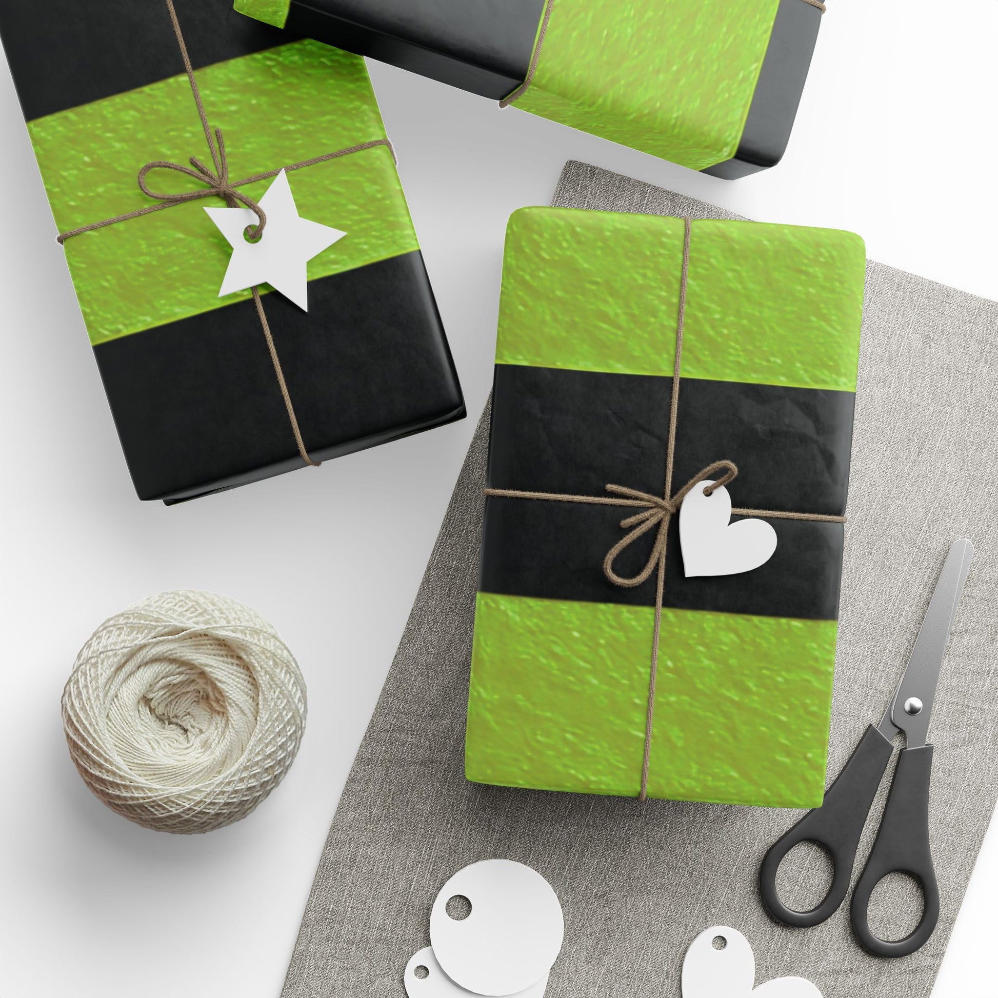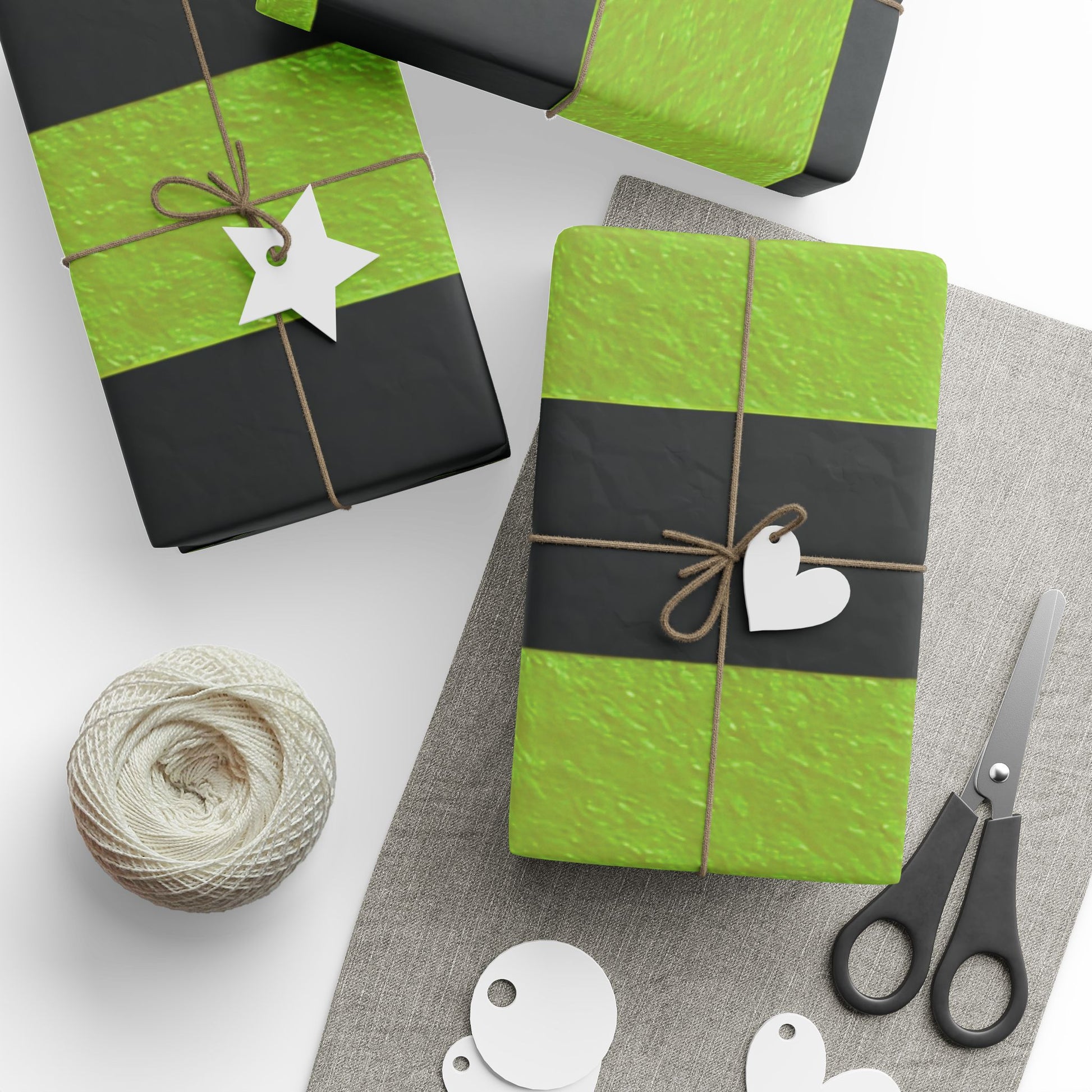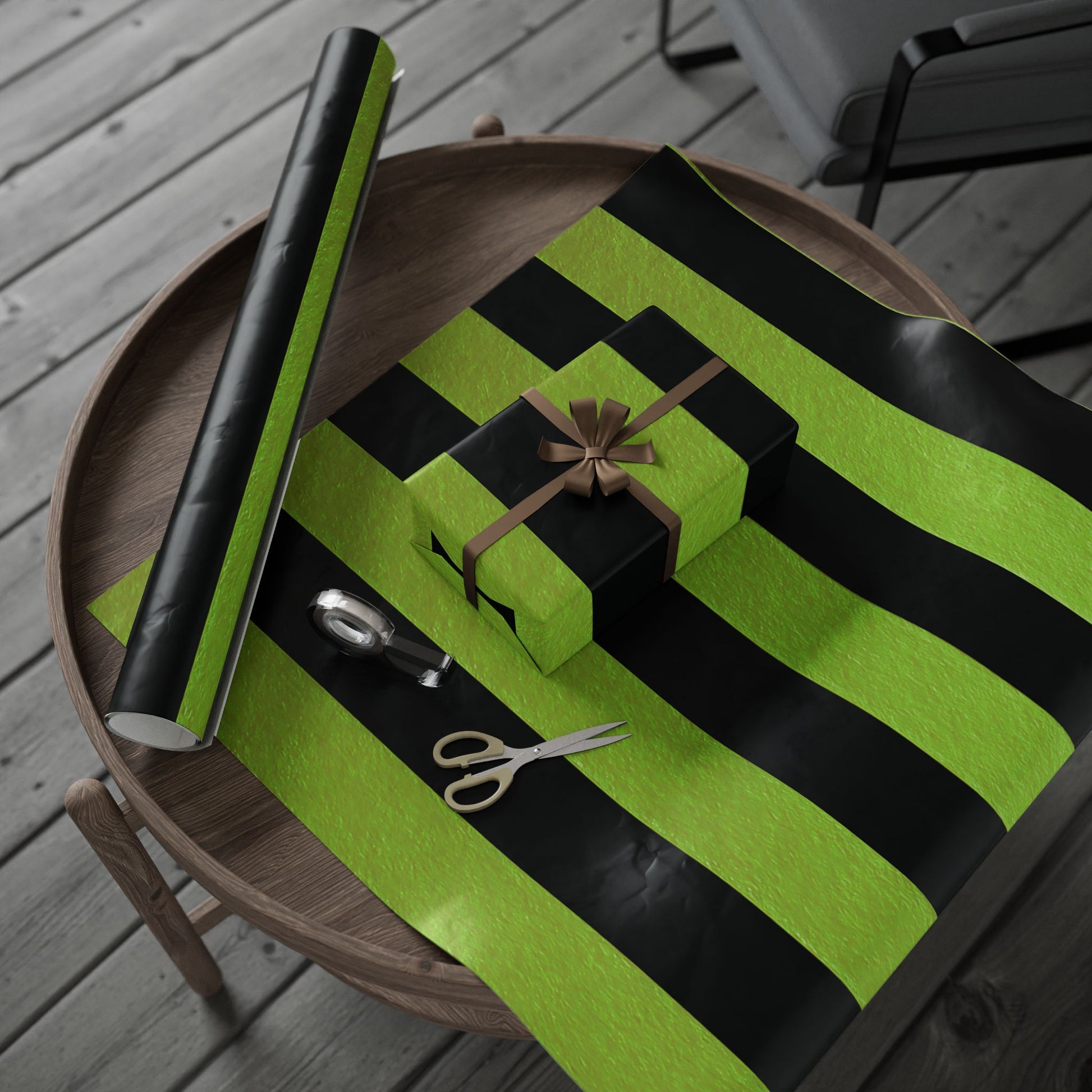 Black and Green Striped Luxury Wrapping Paper – Glossy or Matte Finish, Durable 90gsm