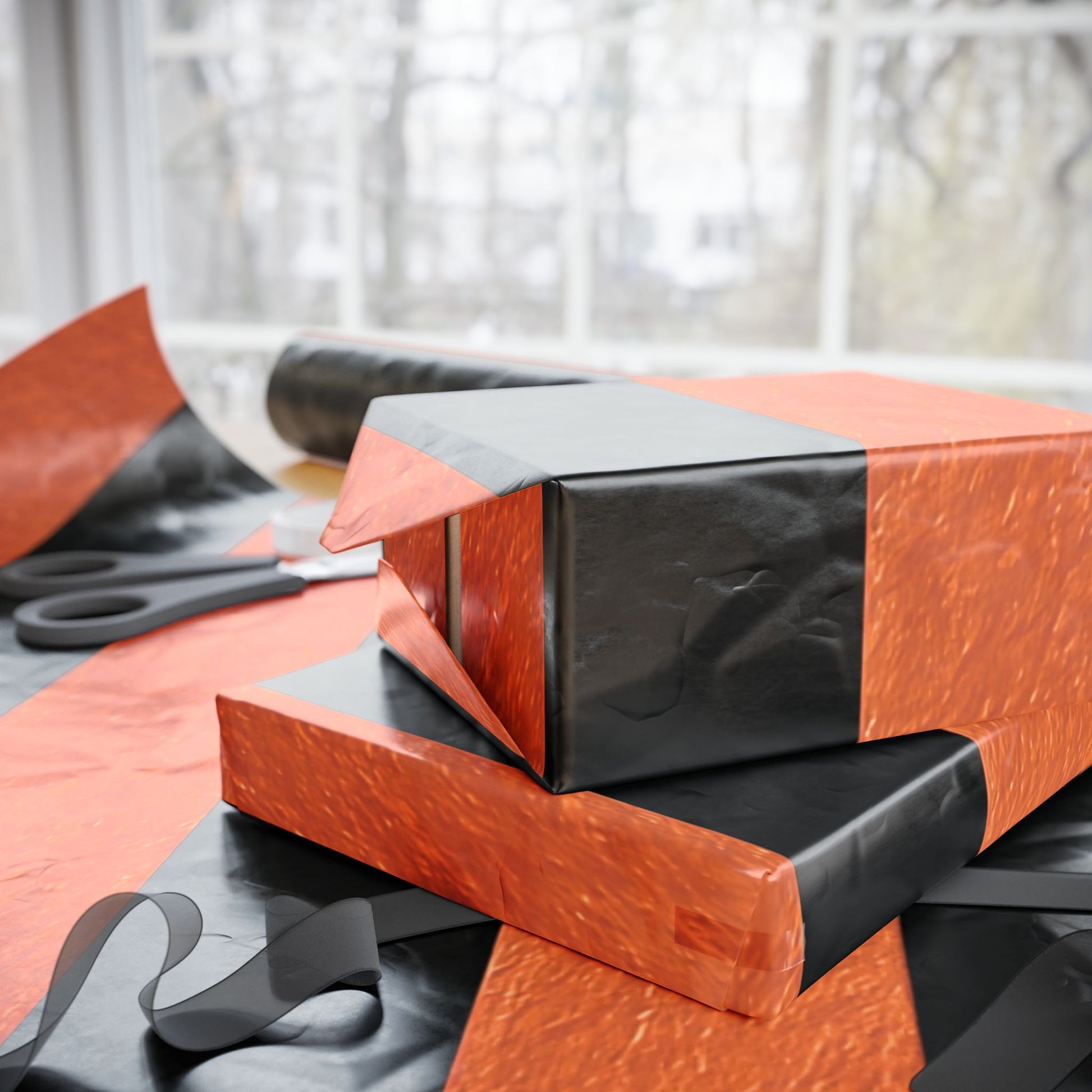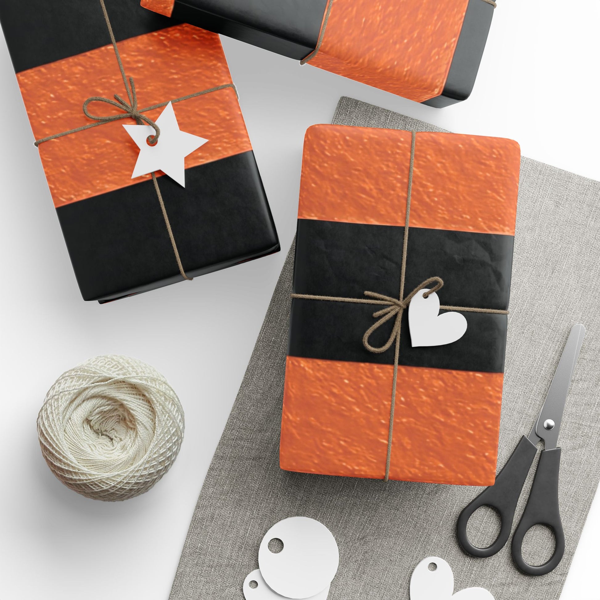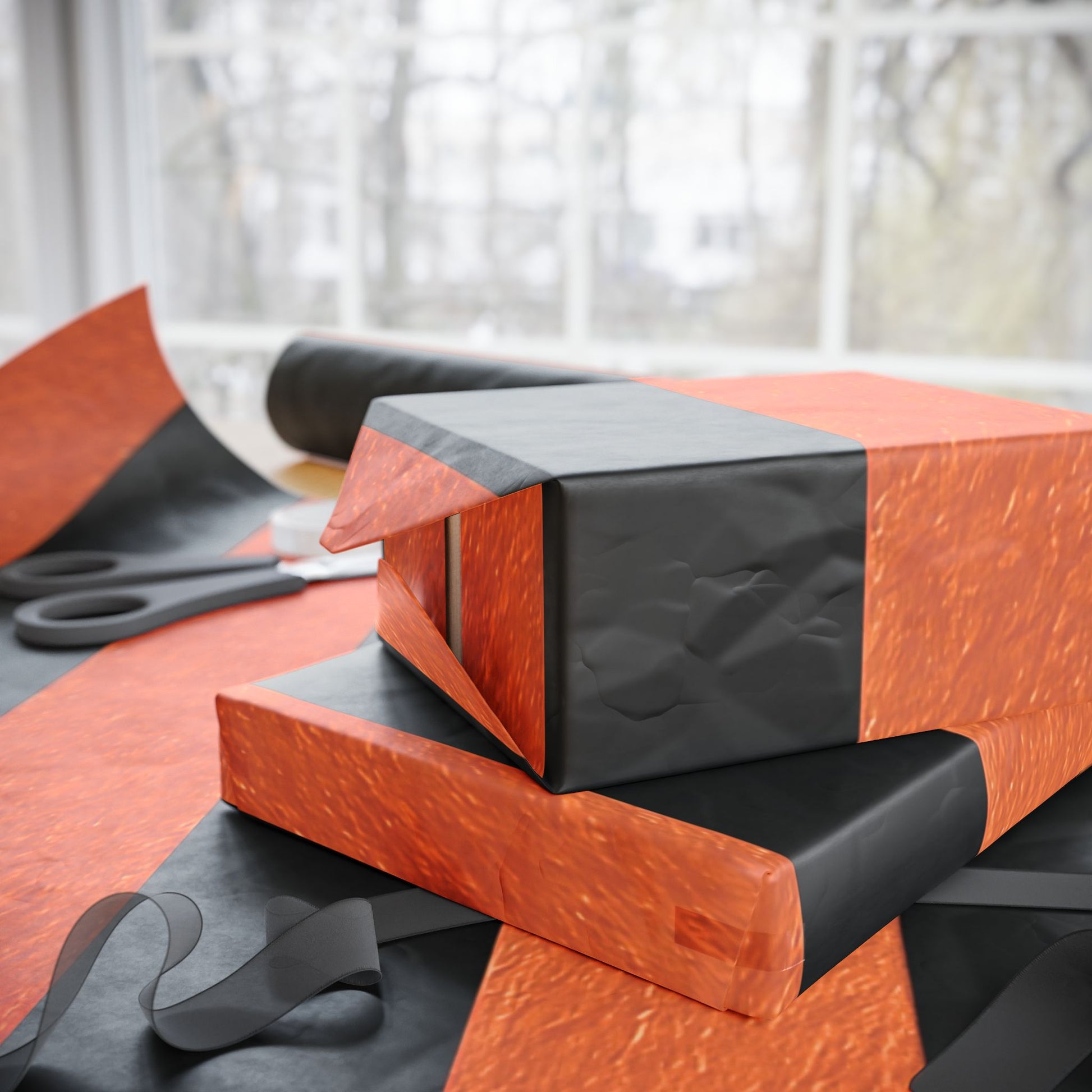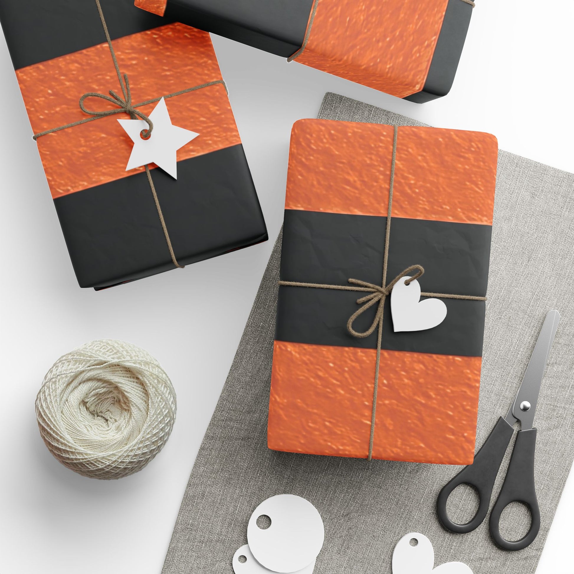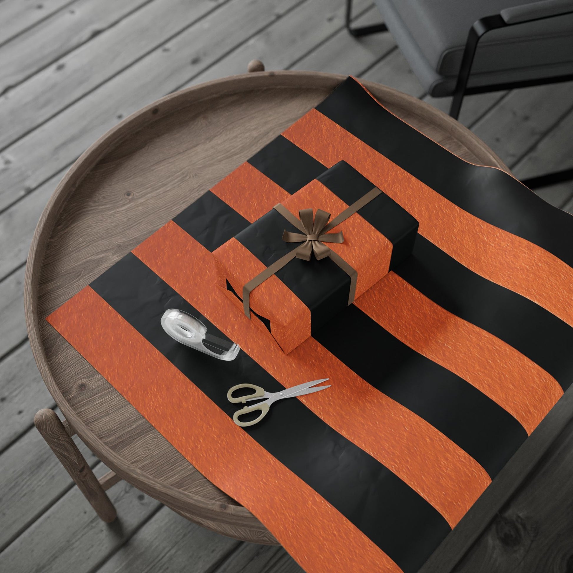 Black and Orange Striped Luxury Wrapping Paper – Glossy or Matte Finish, Durable 90gsm