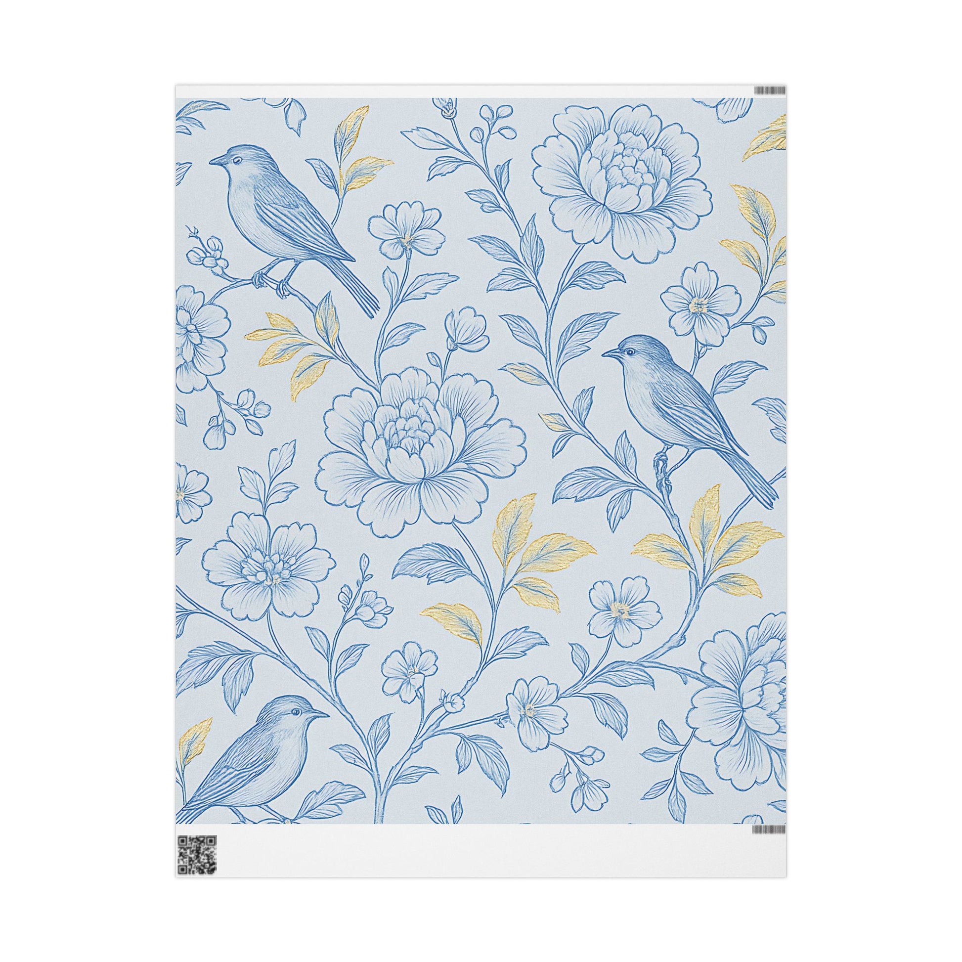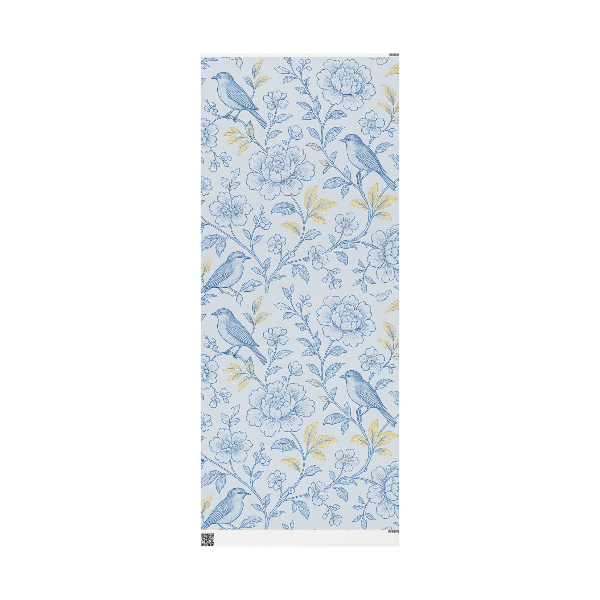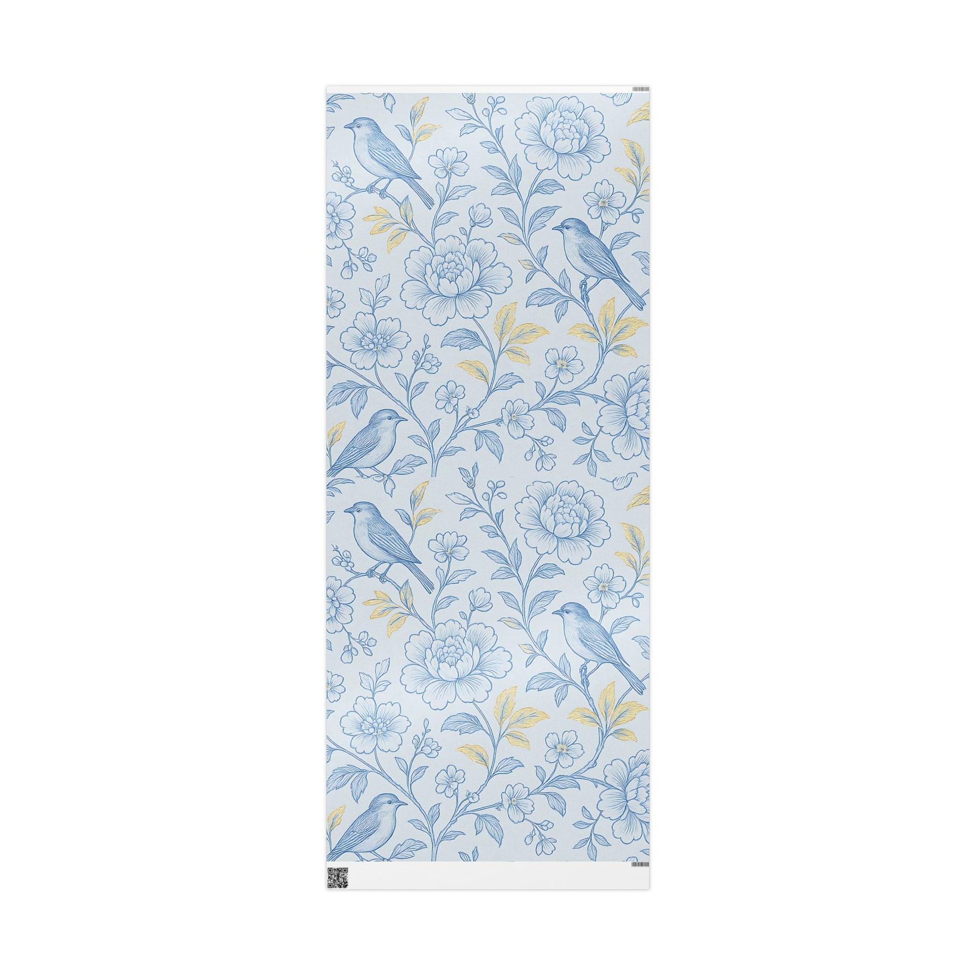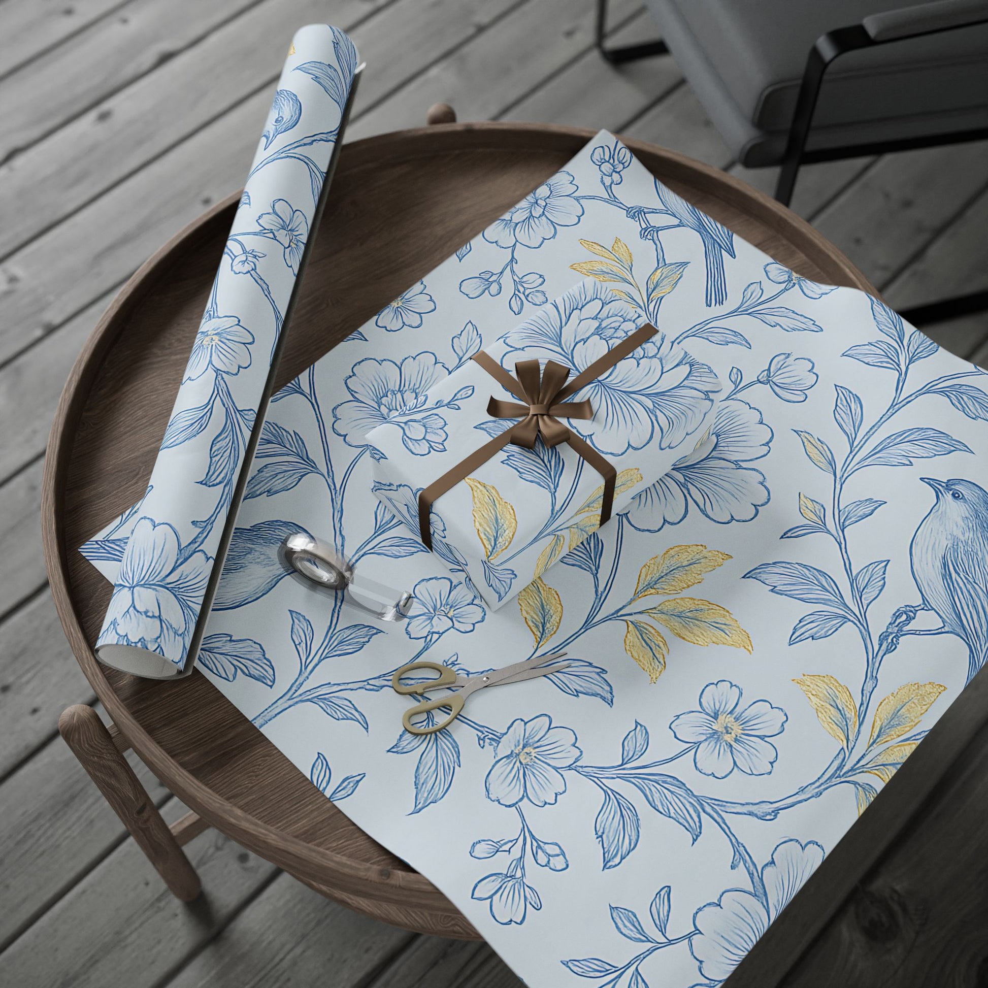 Blue Bird & Floral Wrapping Paper – Elegant Nature-Inspired Gift Wrap in Glossy or Matte Finish.