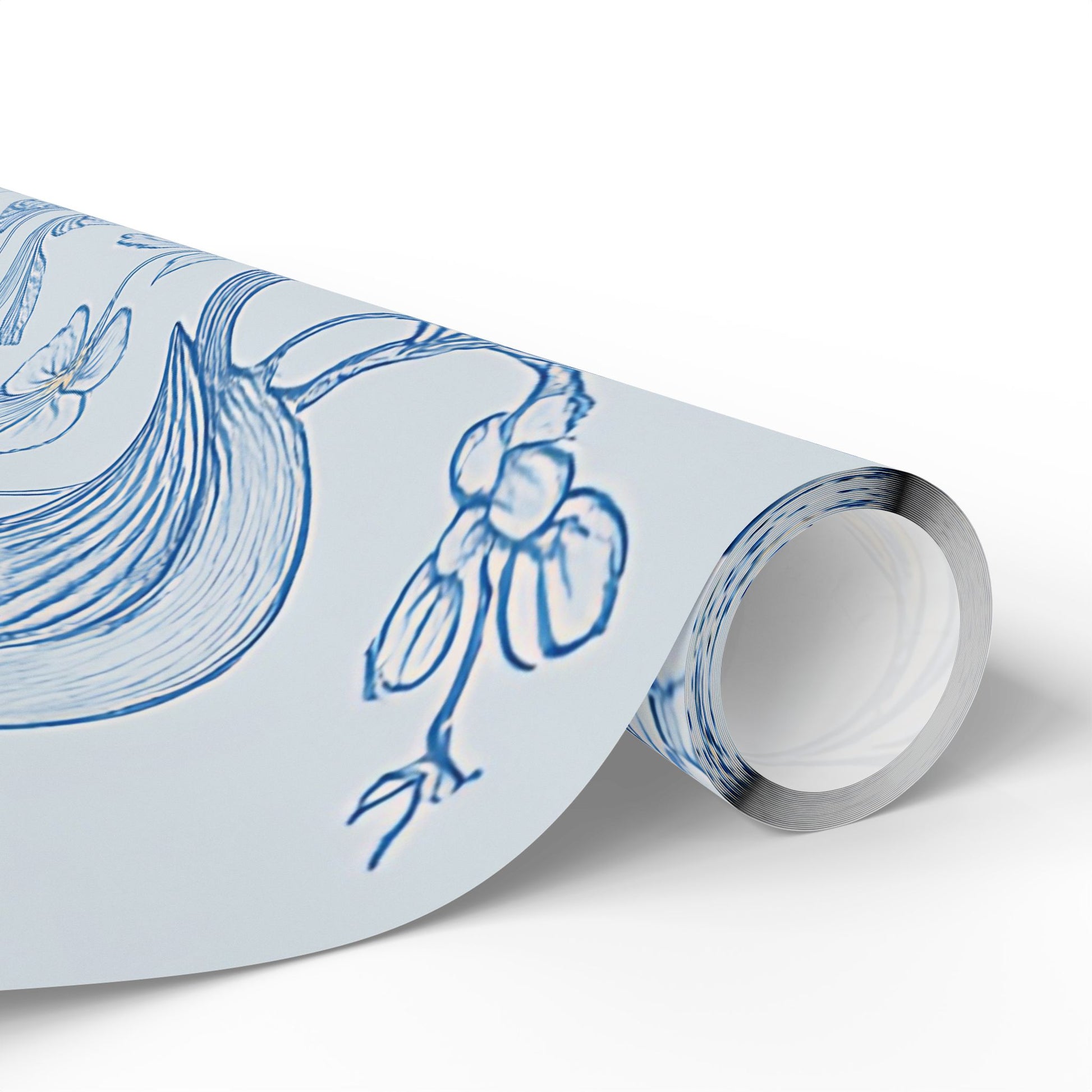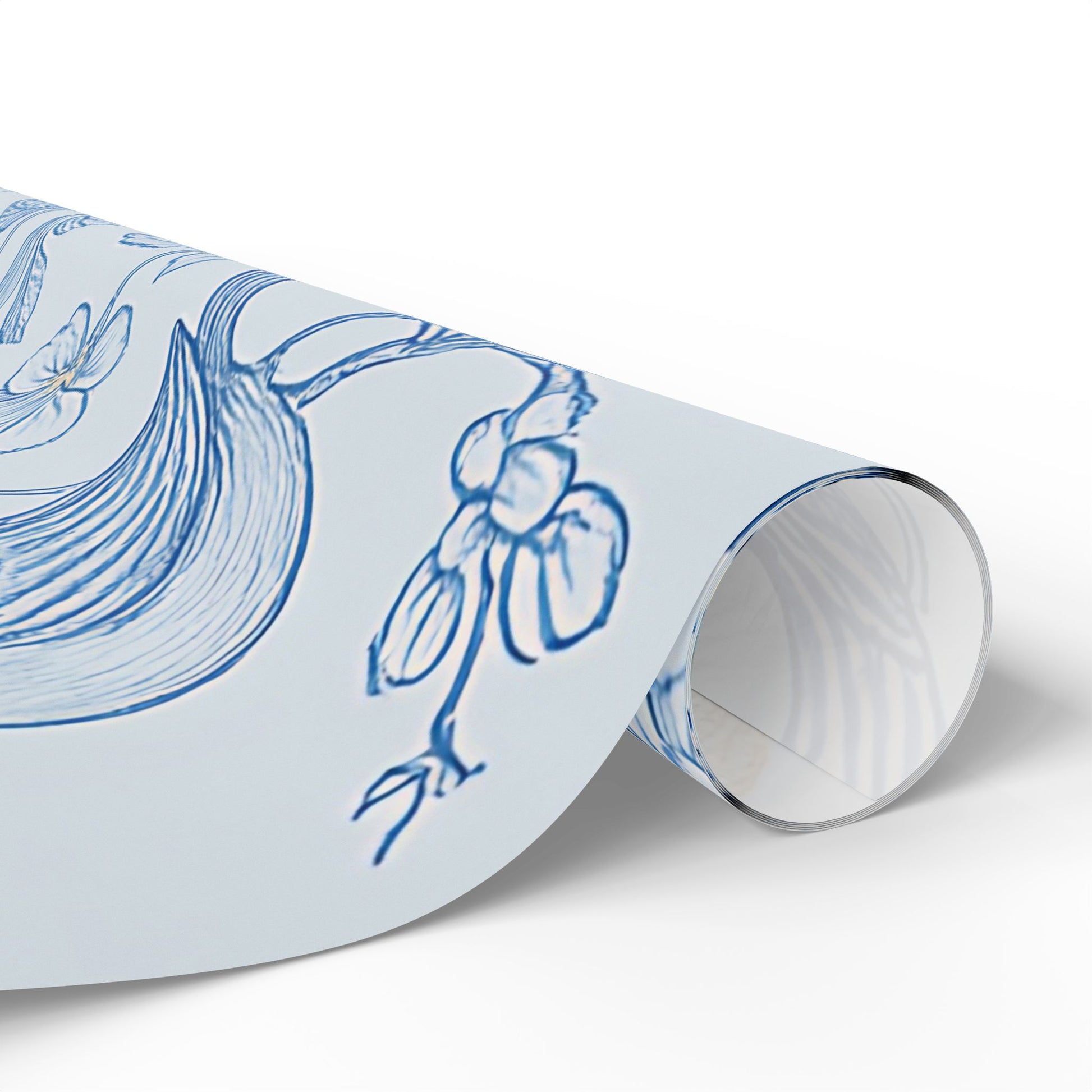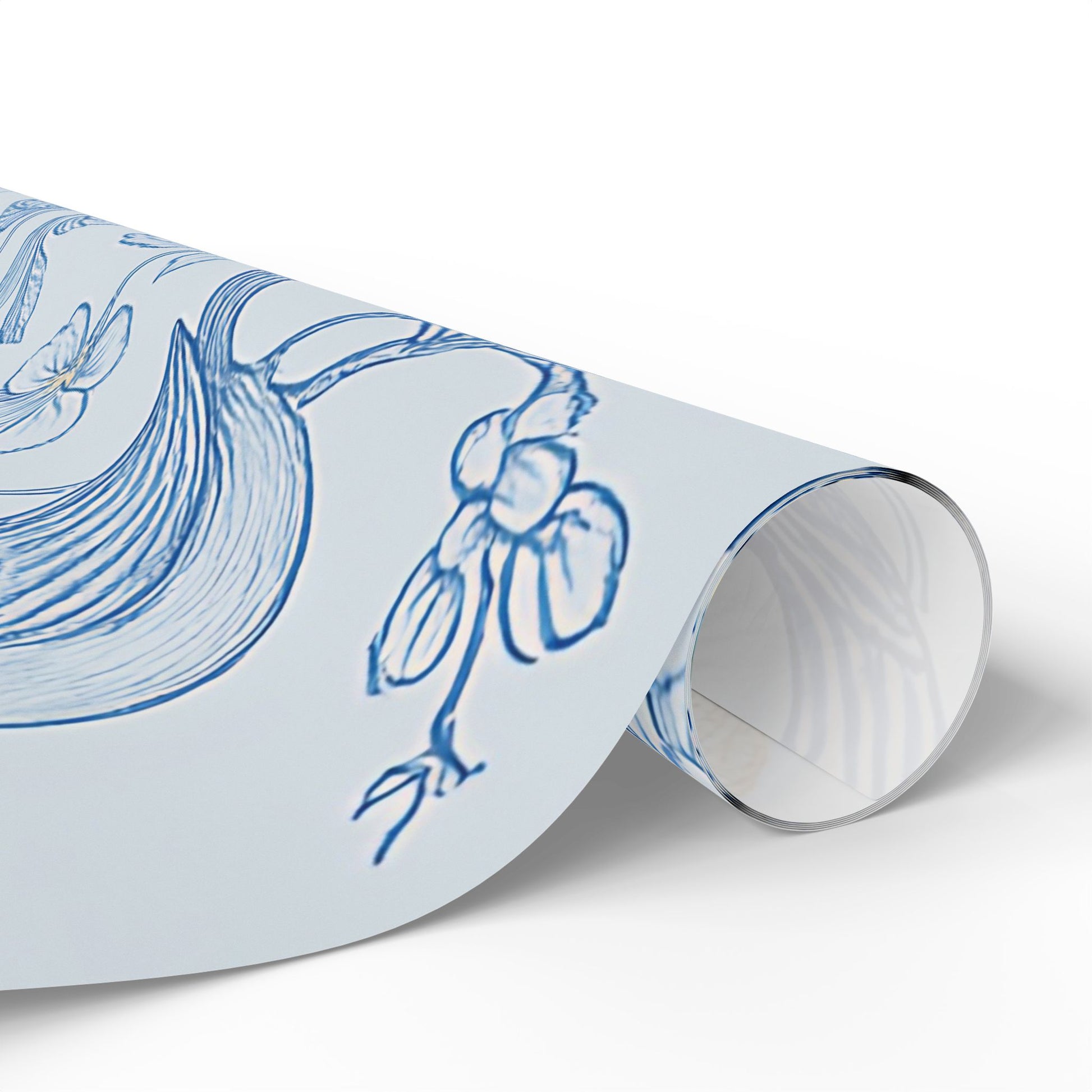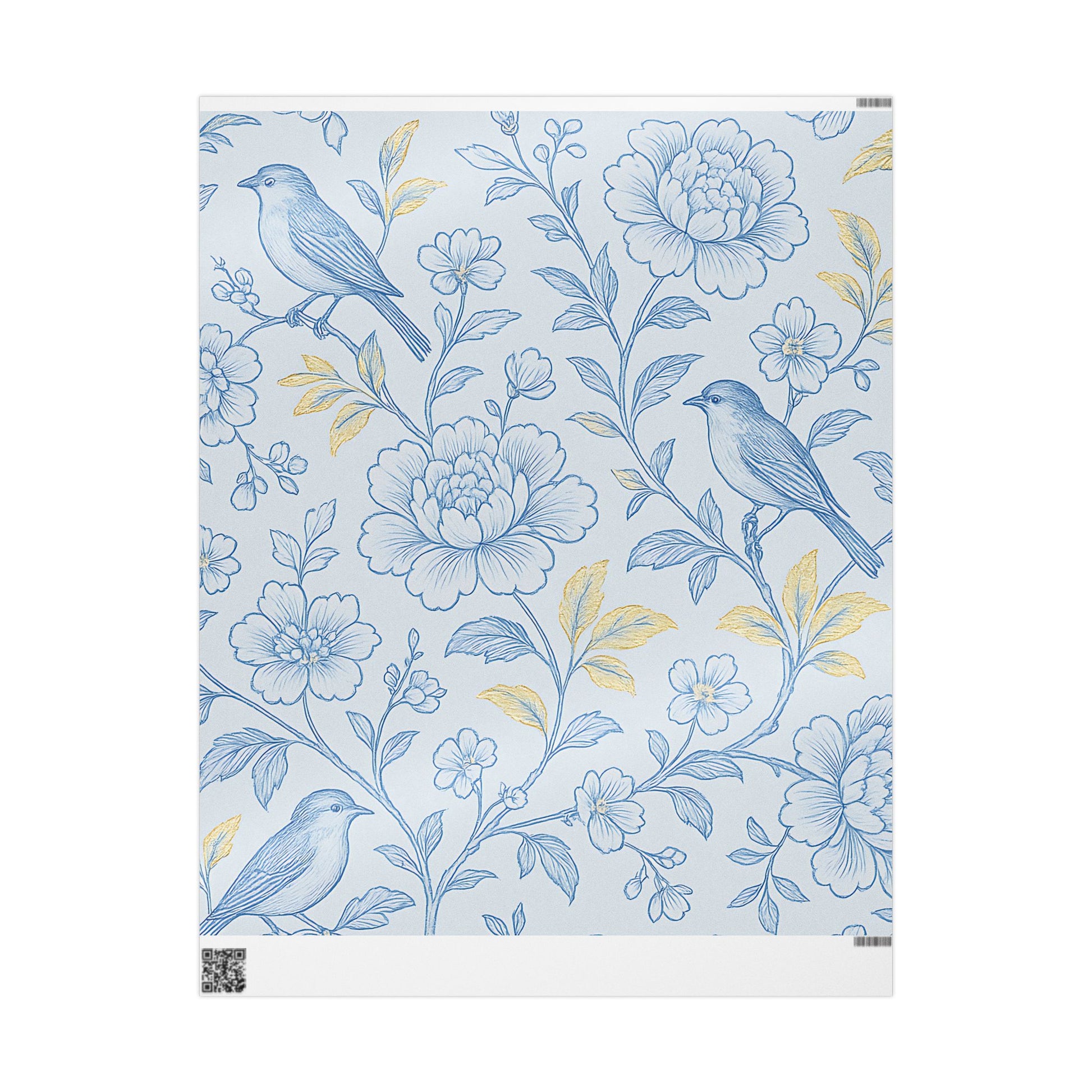 Blue Bird & Floral Wrapping Paper – Elegant Nature-Inspired Gift Wrap in Glossy or Matte Finish.