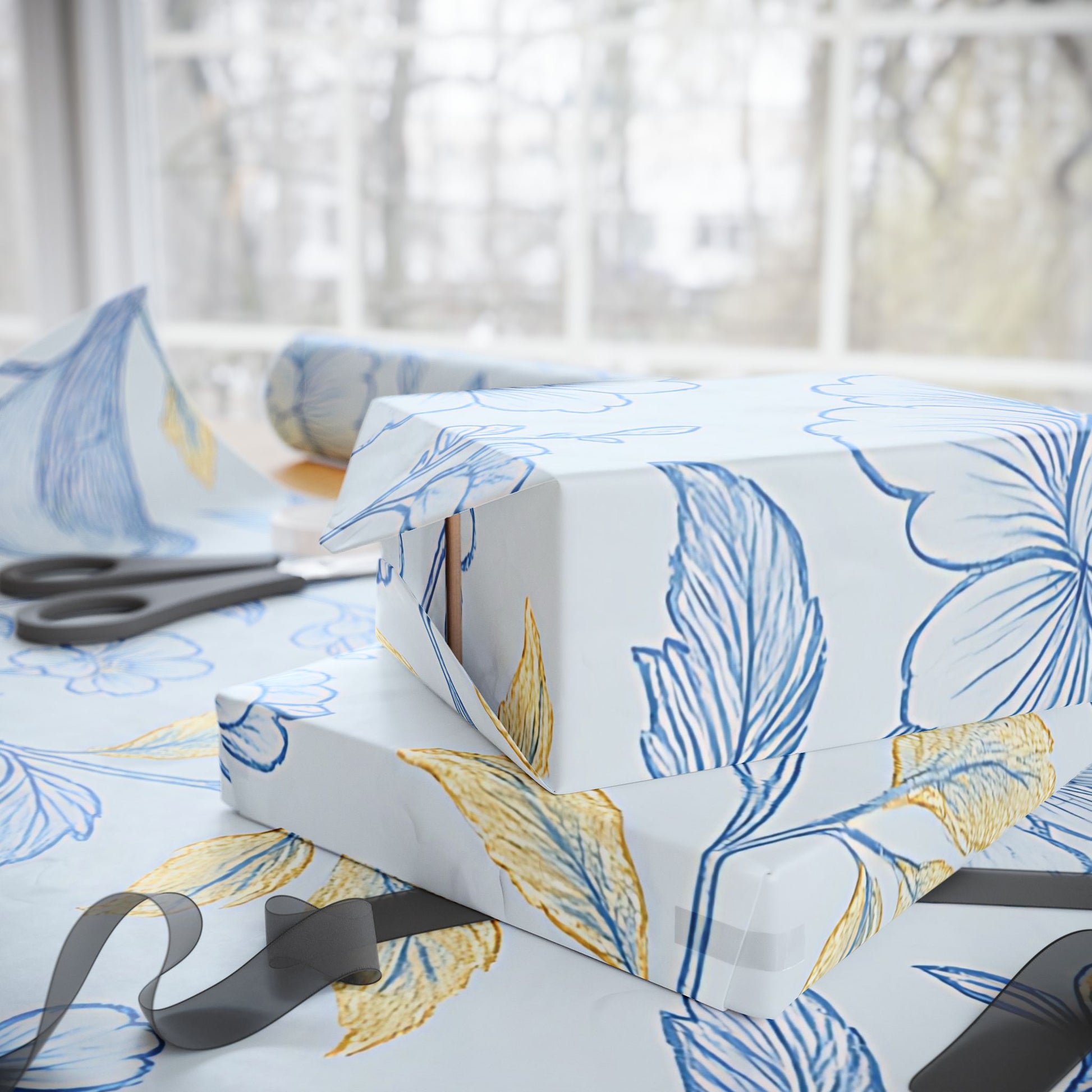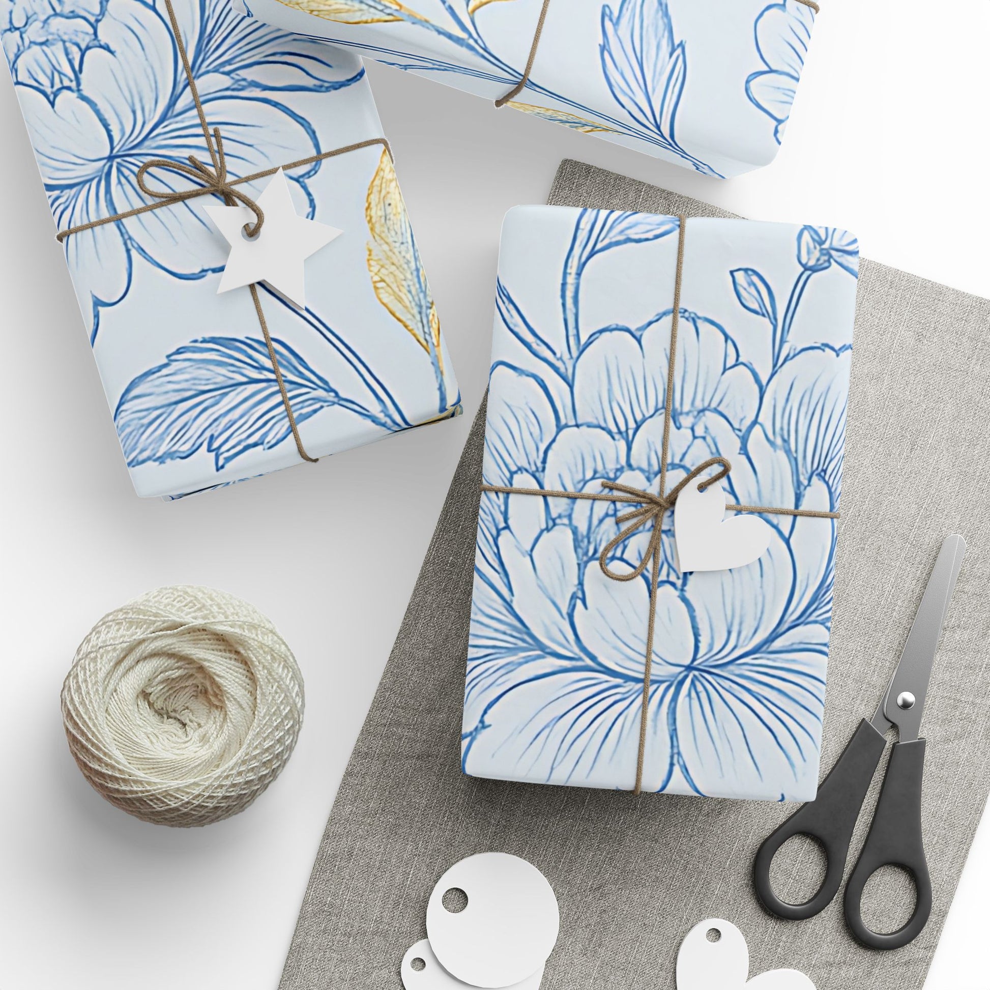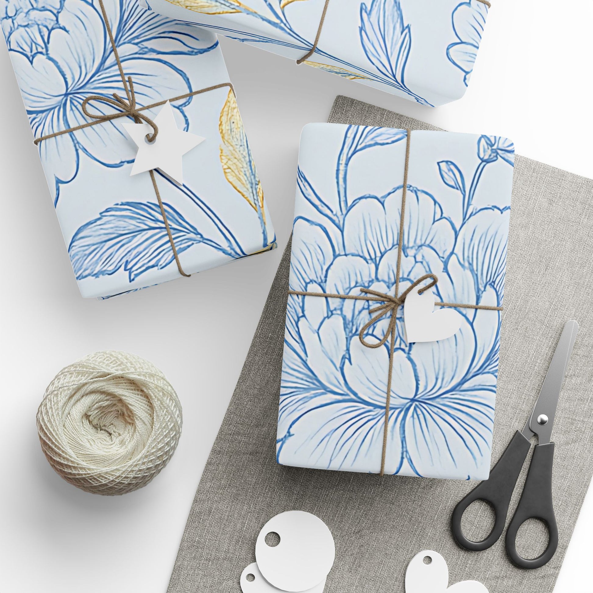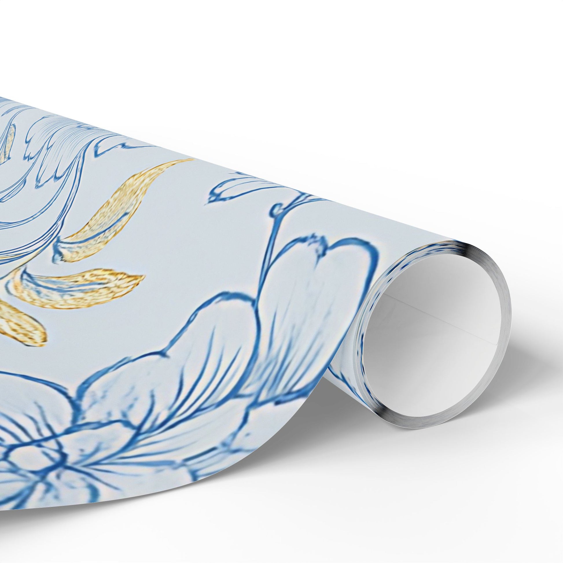 Blue Bird & Floral Wrapping Paper – Elegant Nature-Inspired Gift Wrap in Glossy or Matte Finish.
