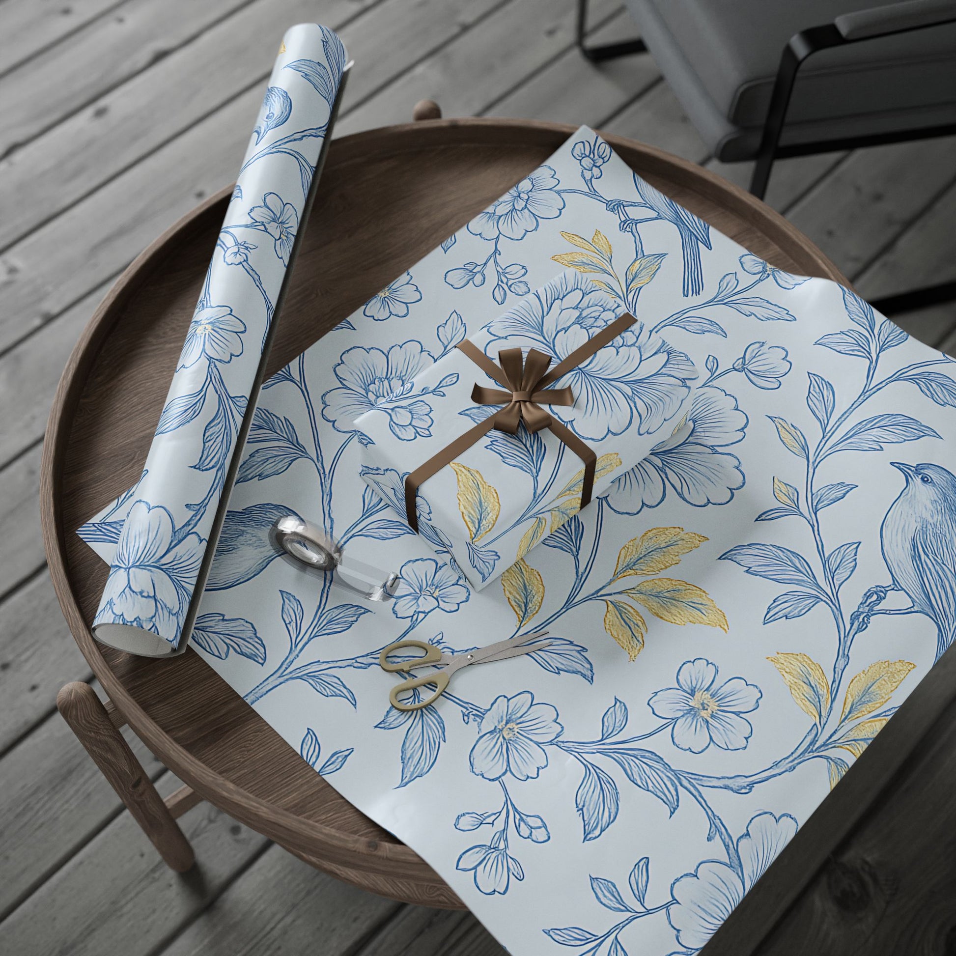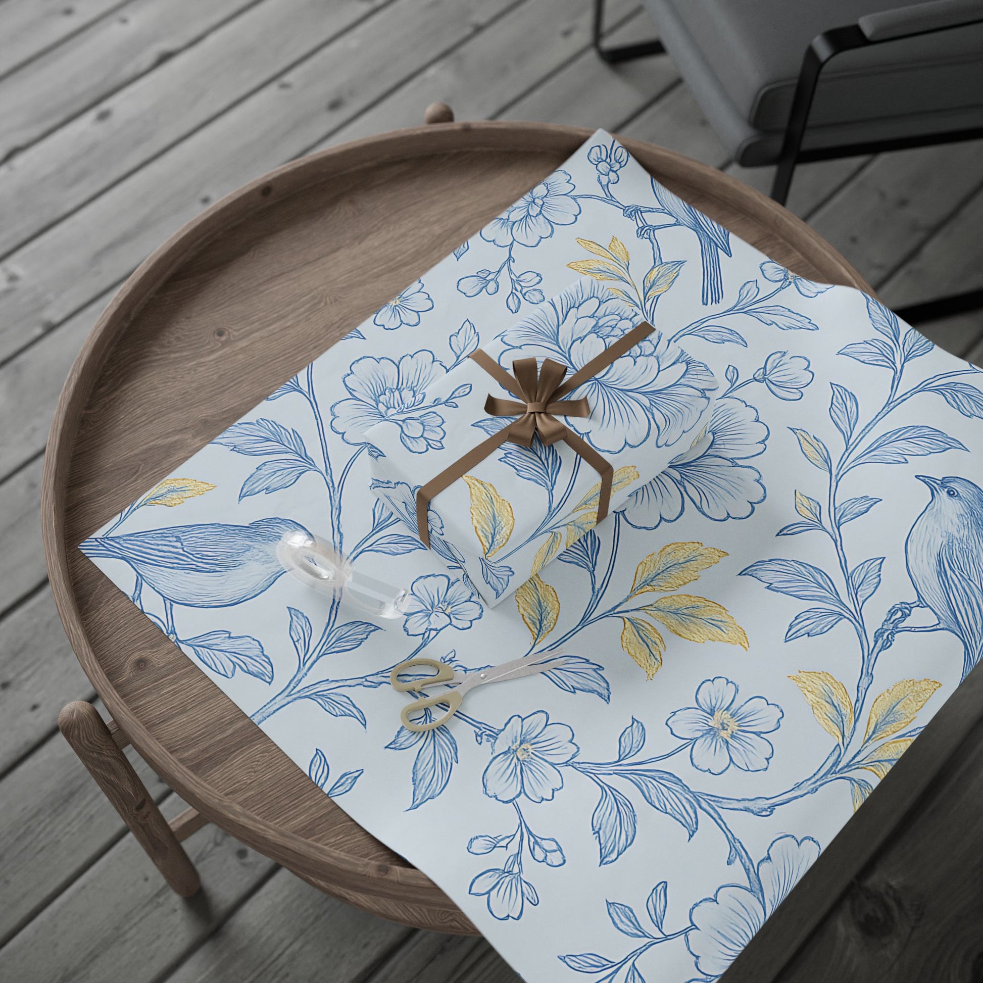 Whether for an elegant occasion or a thoughtful personal gift, this bird and floral wrapping paper transforms every package into a work of art.