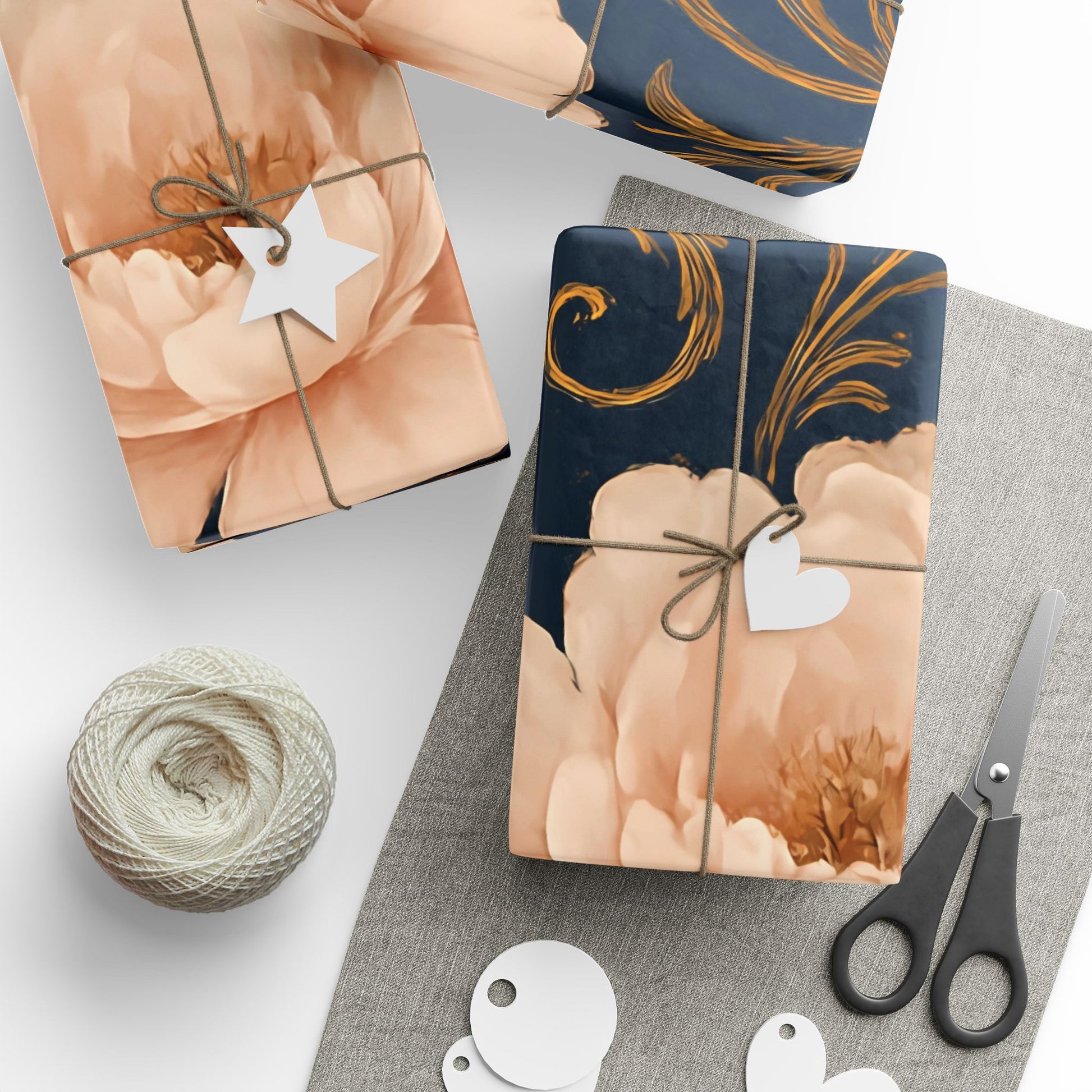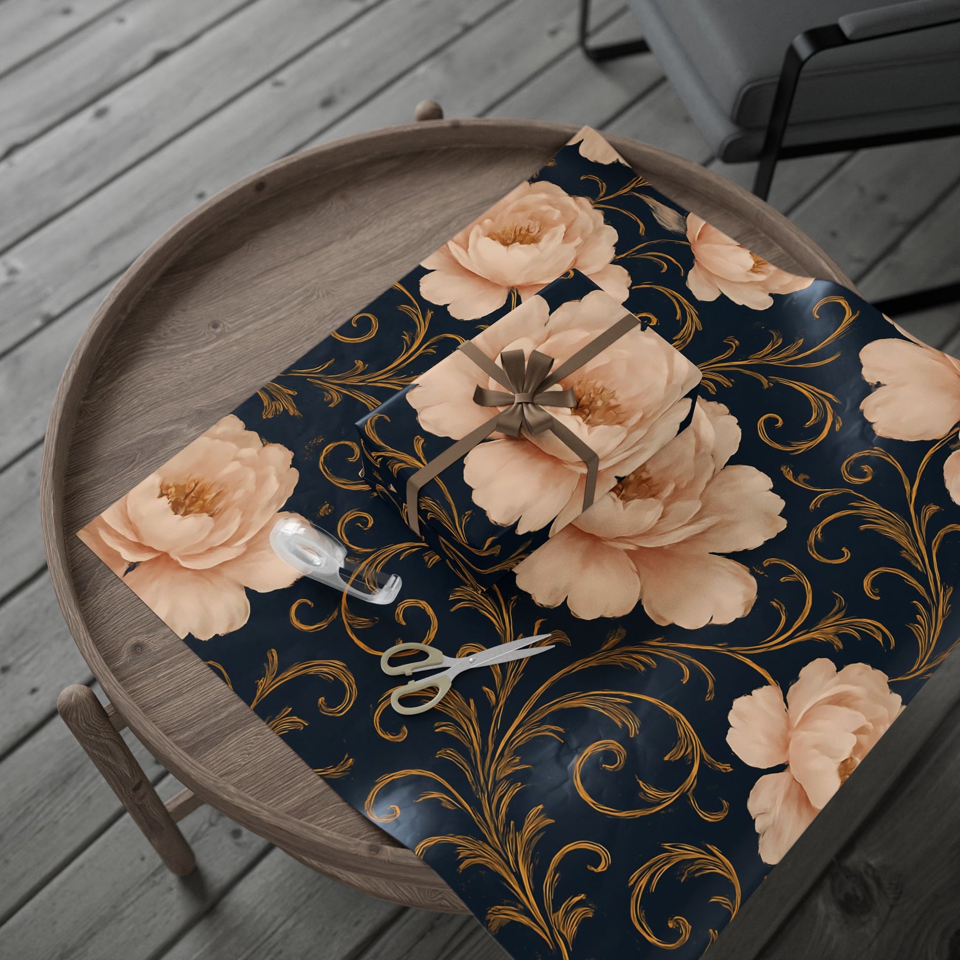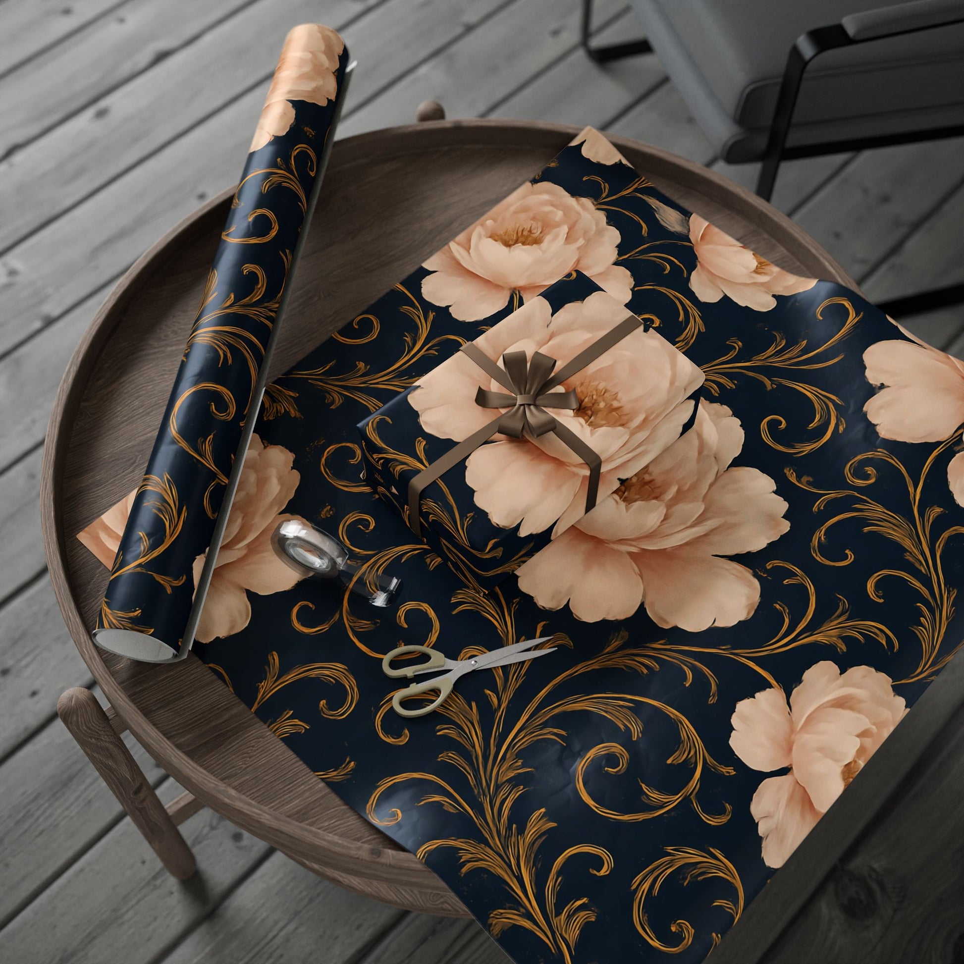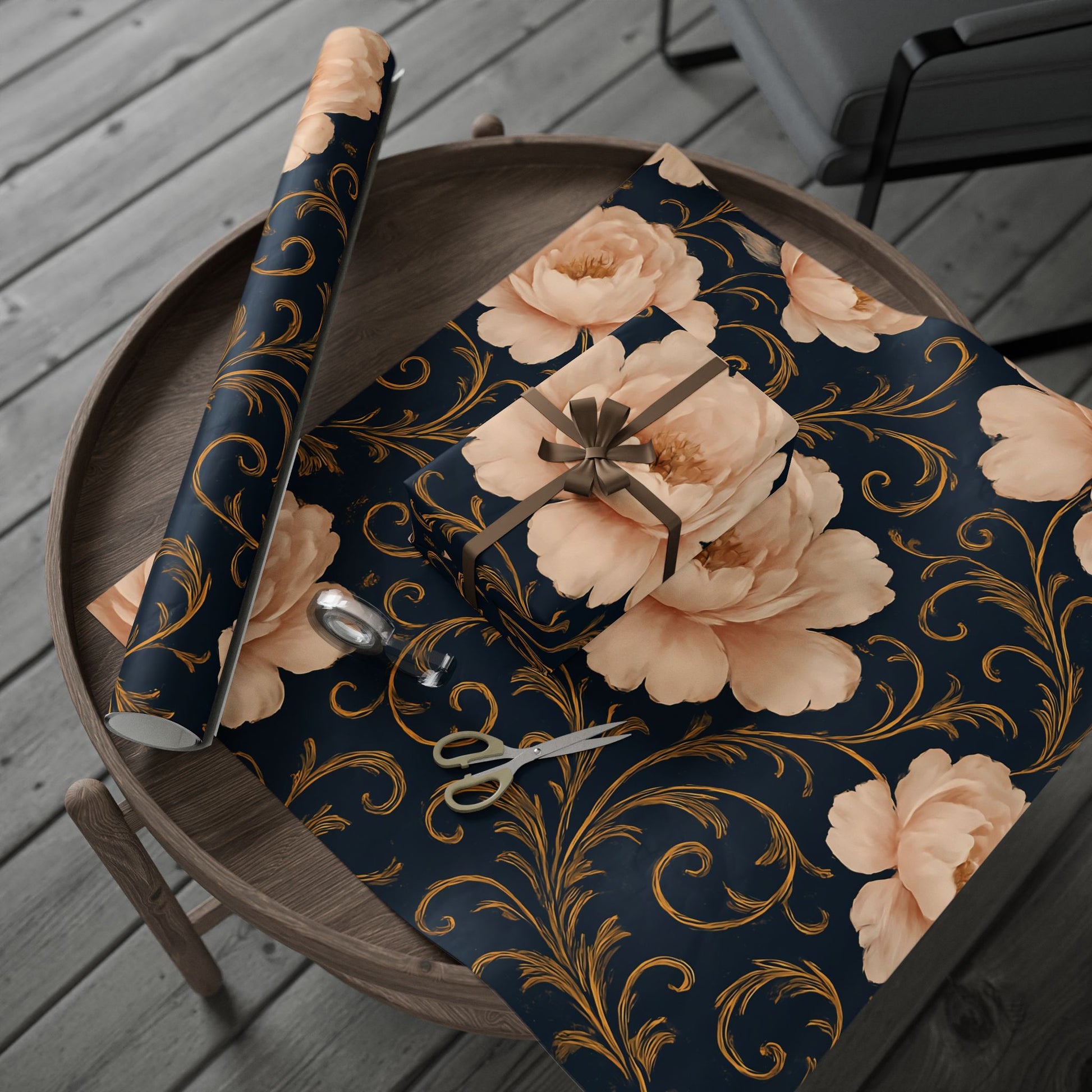 Wrap your gifts in timeless beauty with our Blush Peony & Gold Scroll Wrapping Paper.