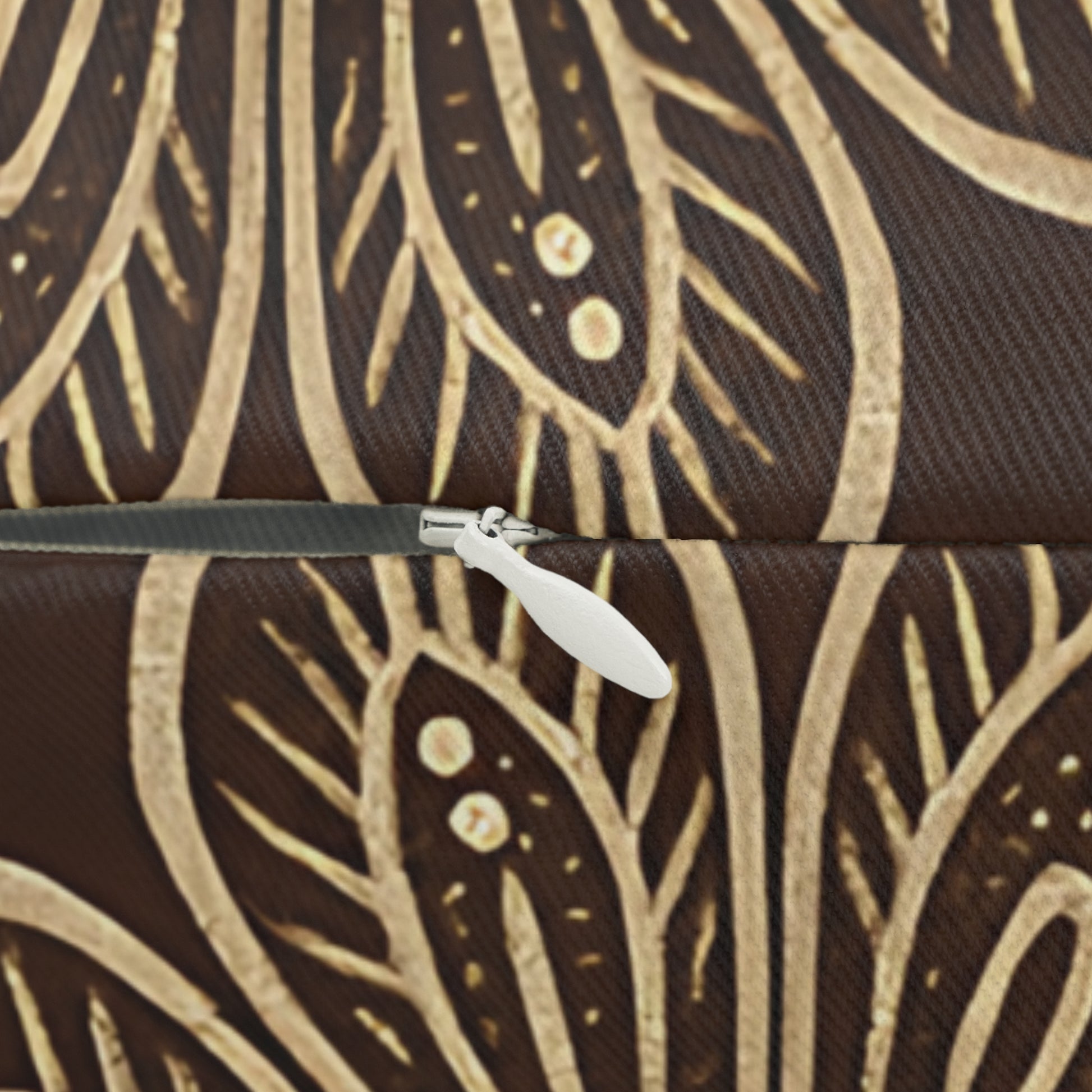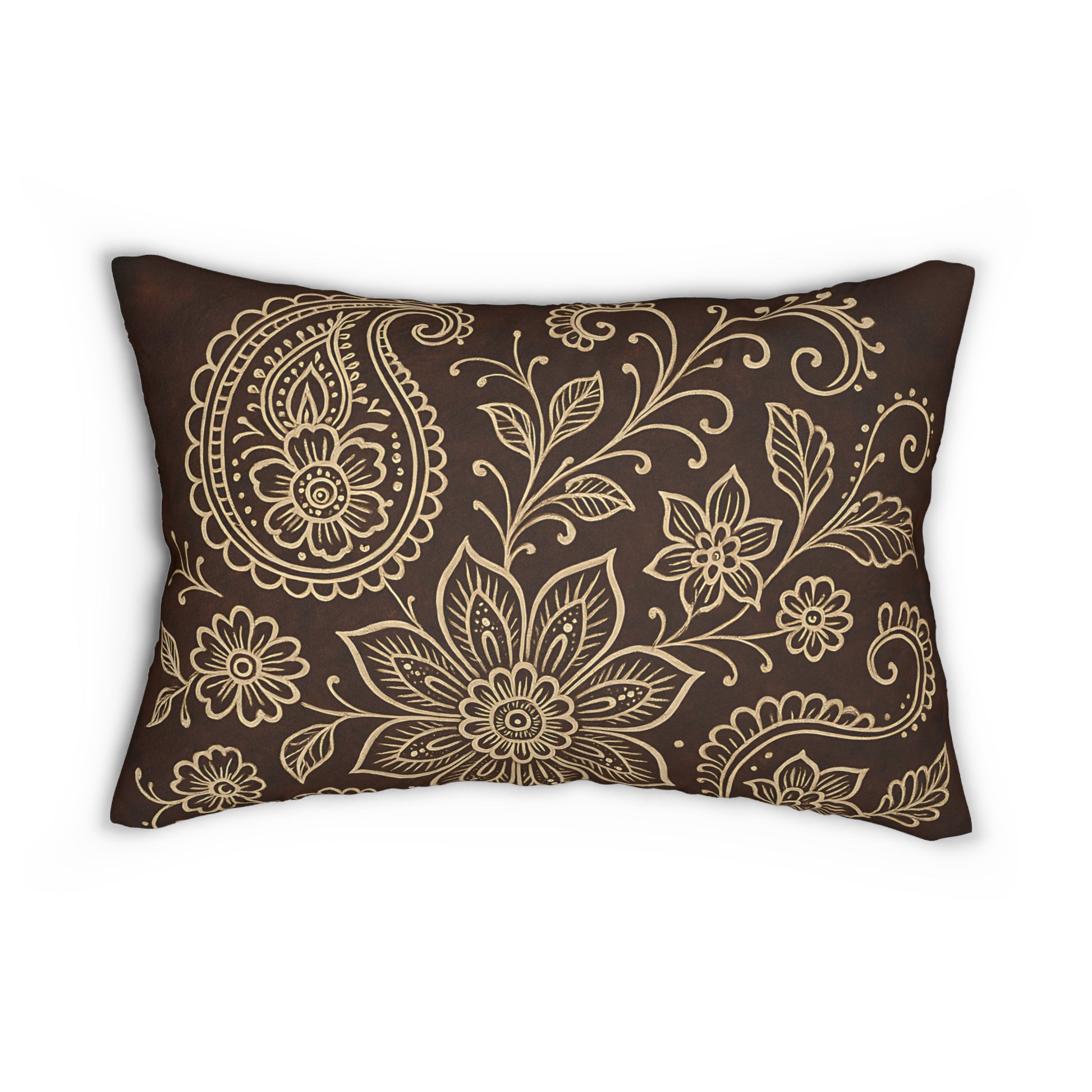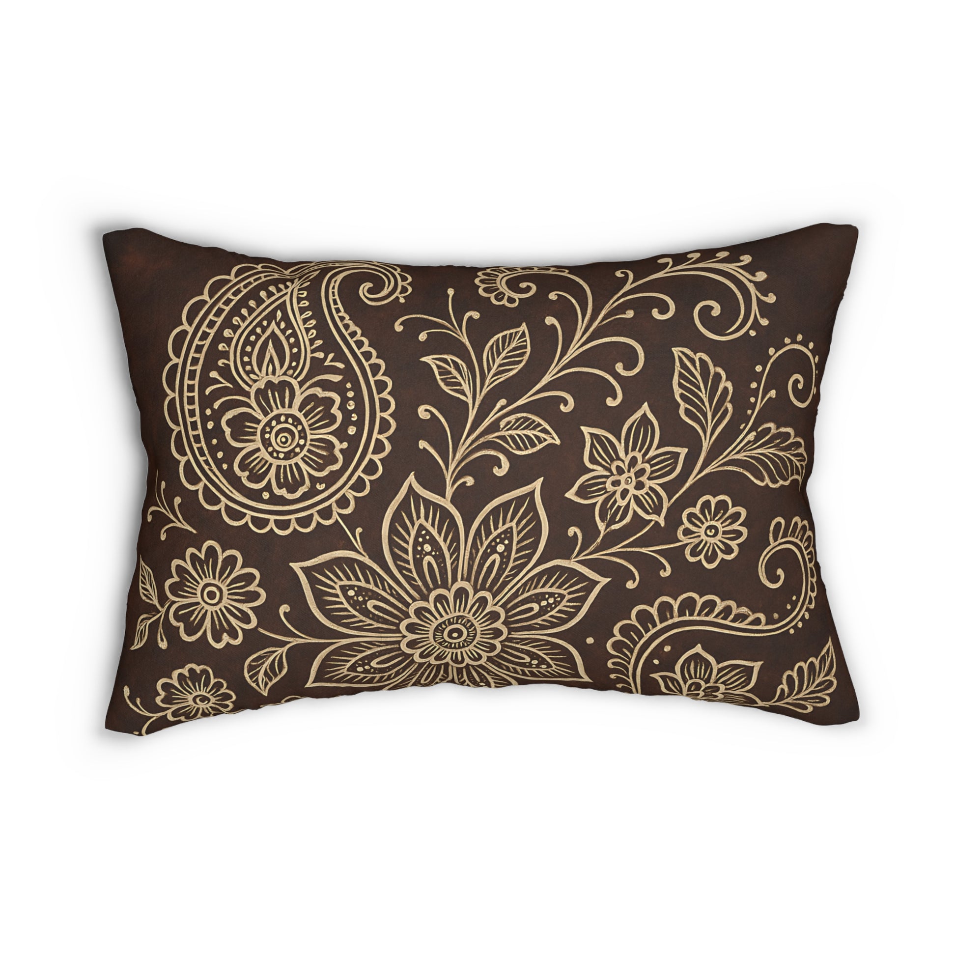 Elevate your space with this beautifully detailed Boho Paisley Floral Lumbar Pillow, featuring an intricate vintage-inspired botanical pattern in warm beige on a rich brown background.