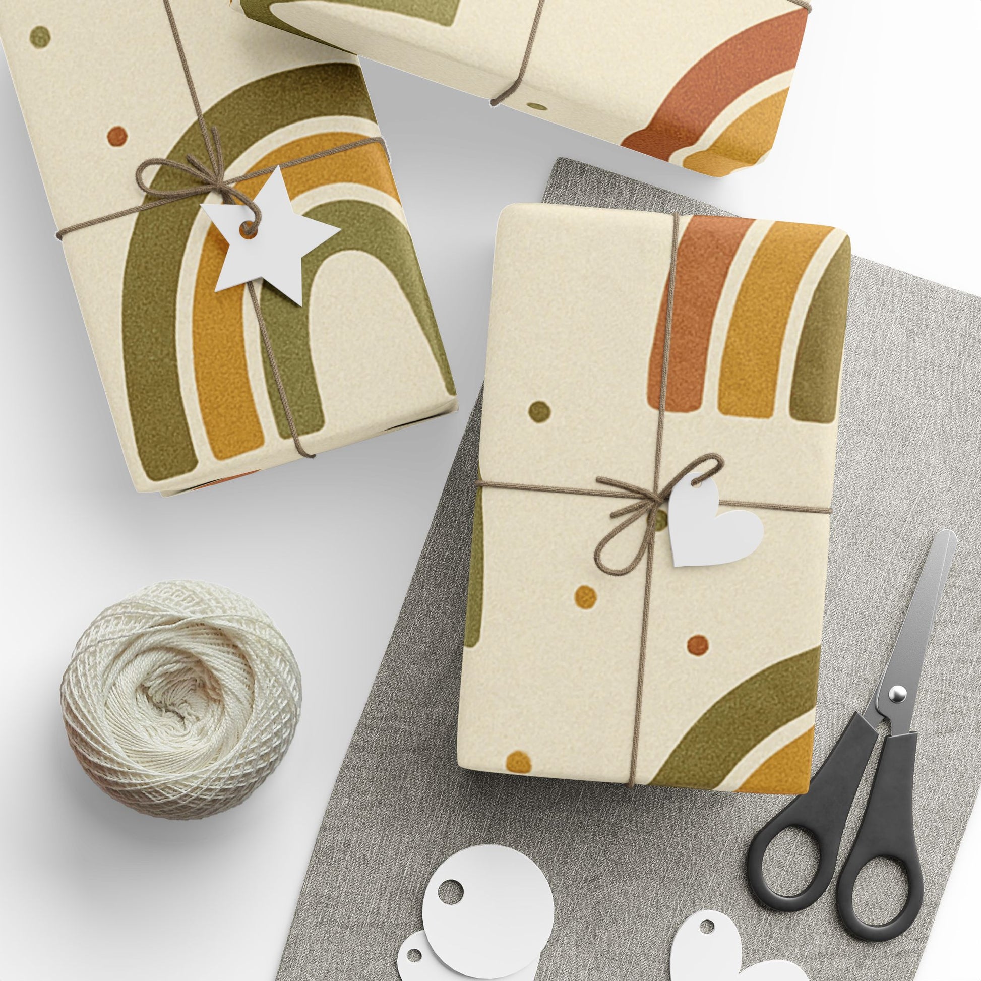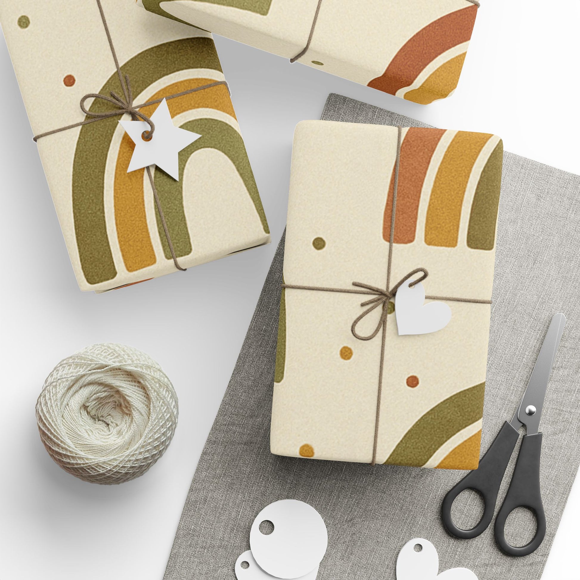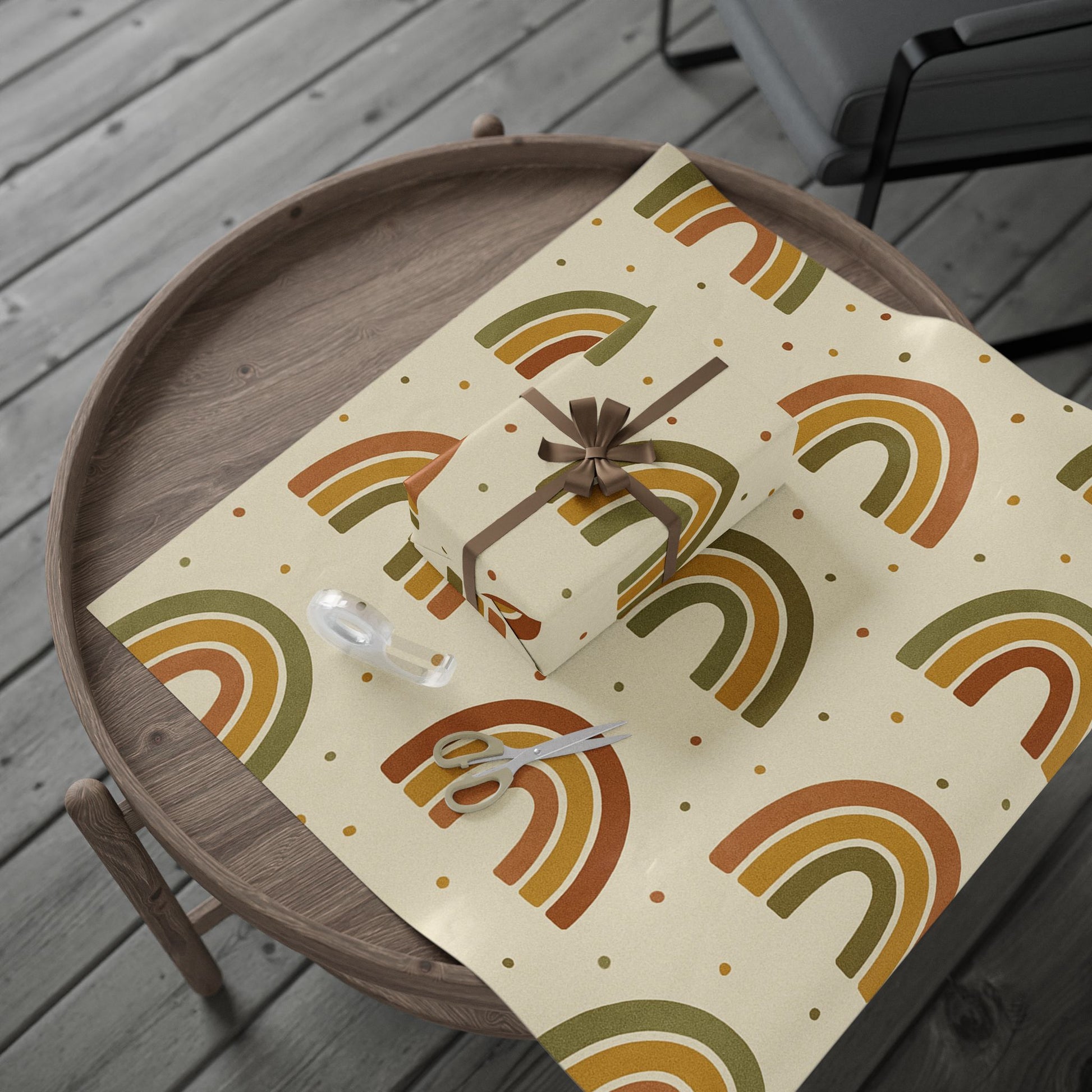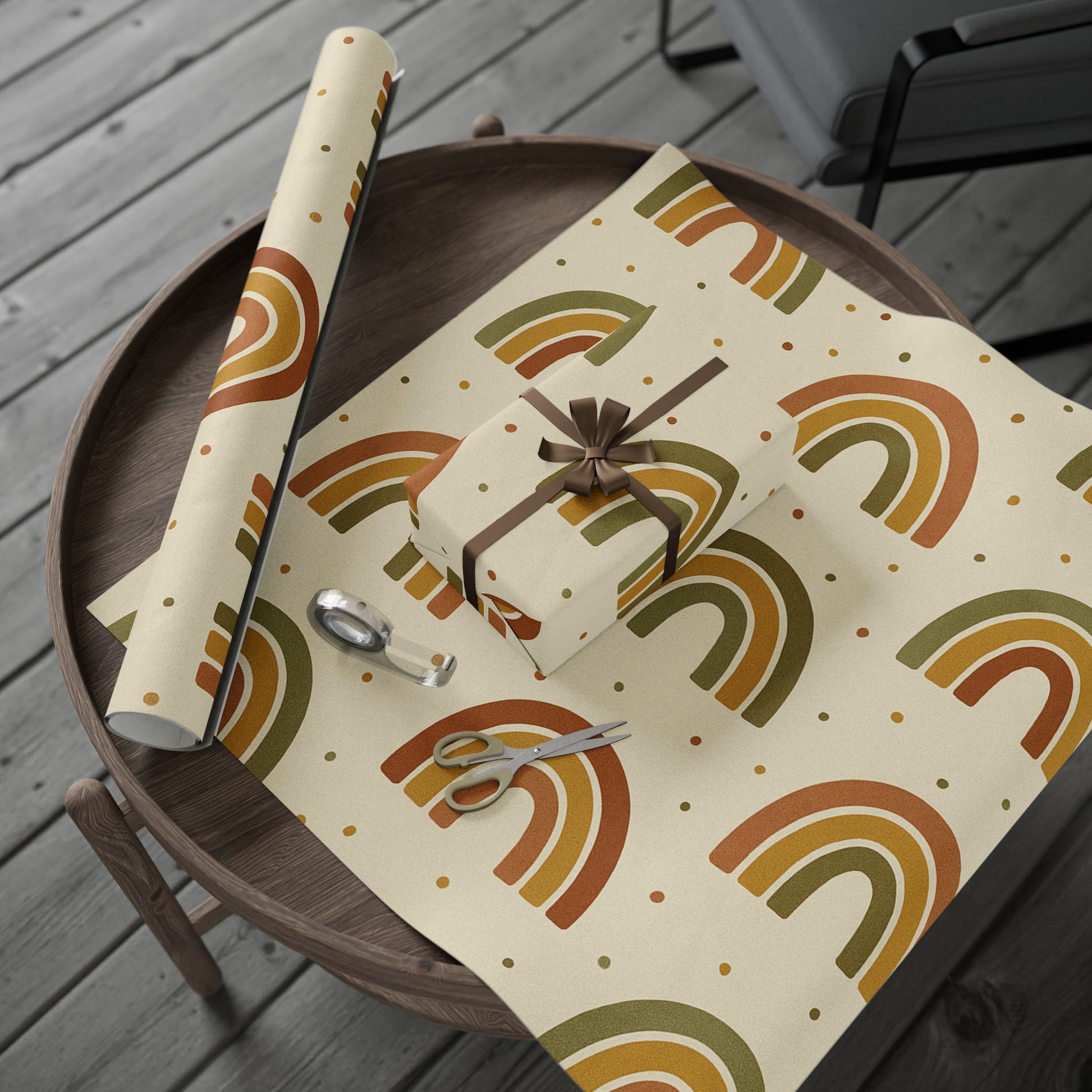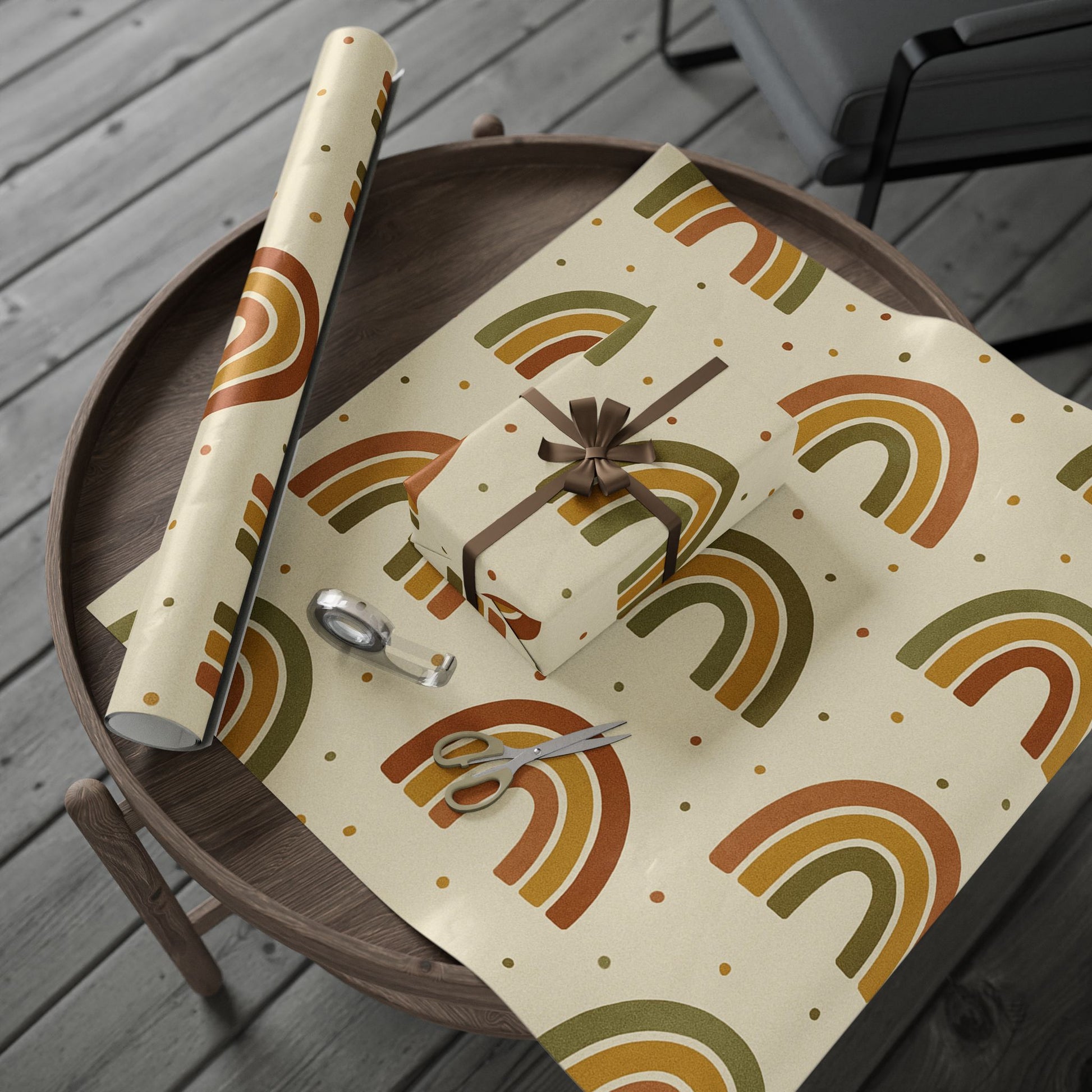 Add a cozy, earthy touch to your gift-giving with this Boho Rainbow Wrapping Paper.