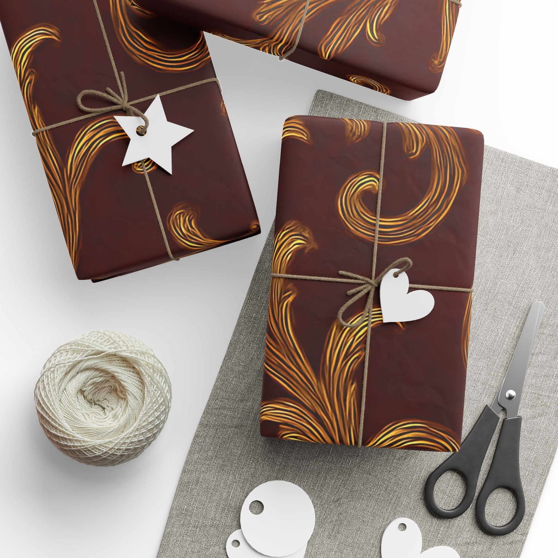 Infuse your gifts with timeless elegance using our Burgundy & Gold Baroque Scroll Wrapping Paper.