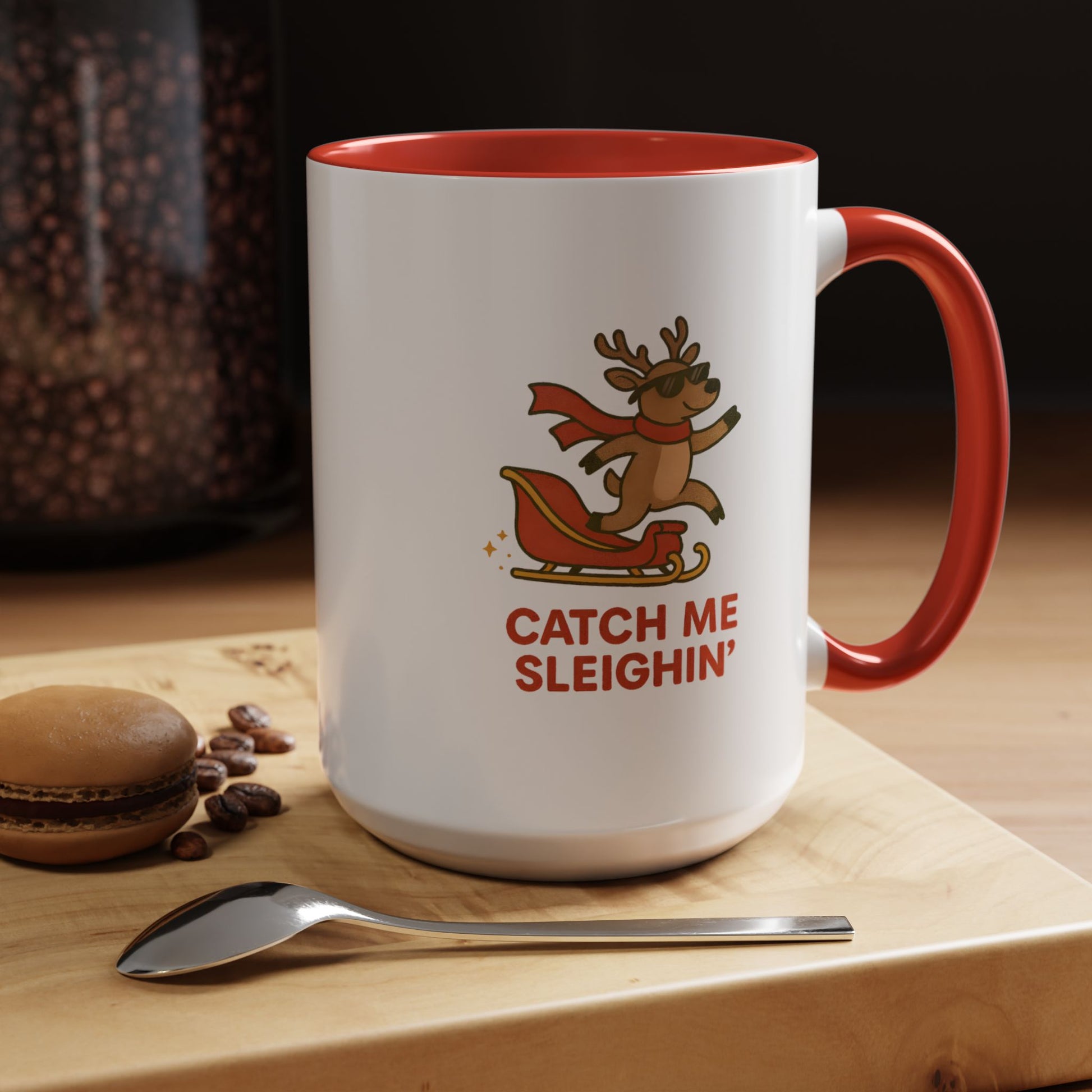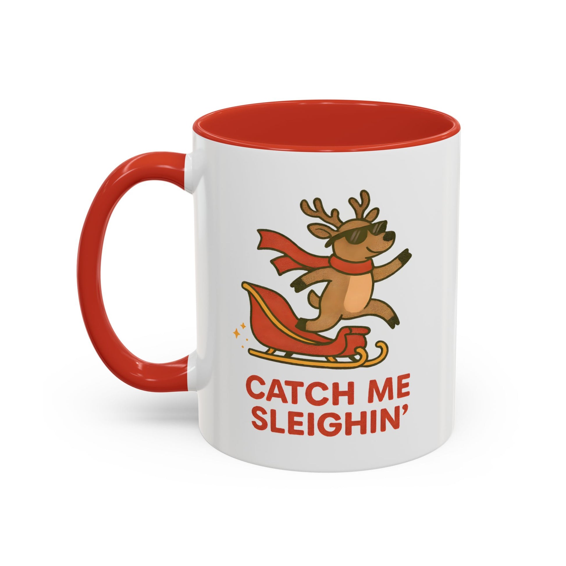 Catch Me Sleighin’ Christmas Mug | Funny Holiday Reindeer Coffee Cup | 11oz & 15oz.
