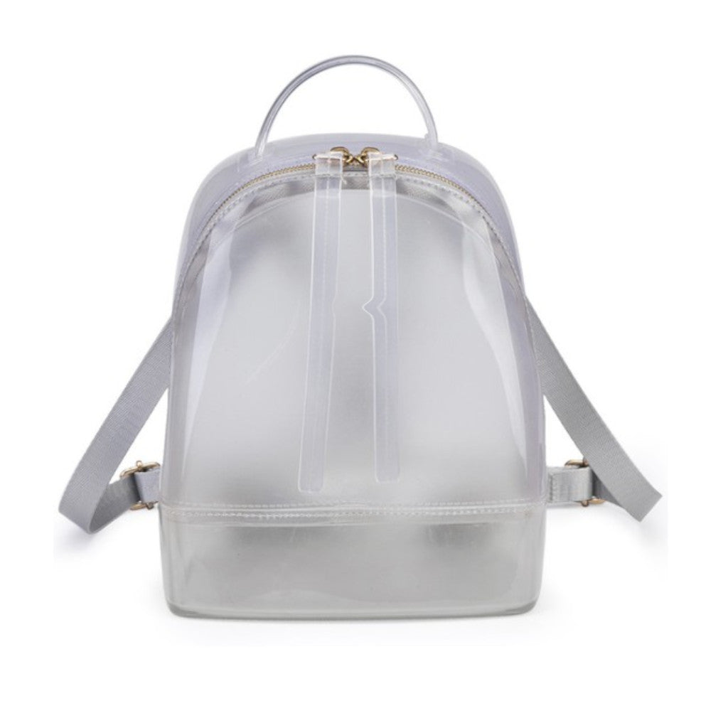 Add a pop of playful sophistication to your accessories with the Clear Convertible Jelly Candy Backpack!