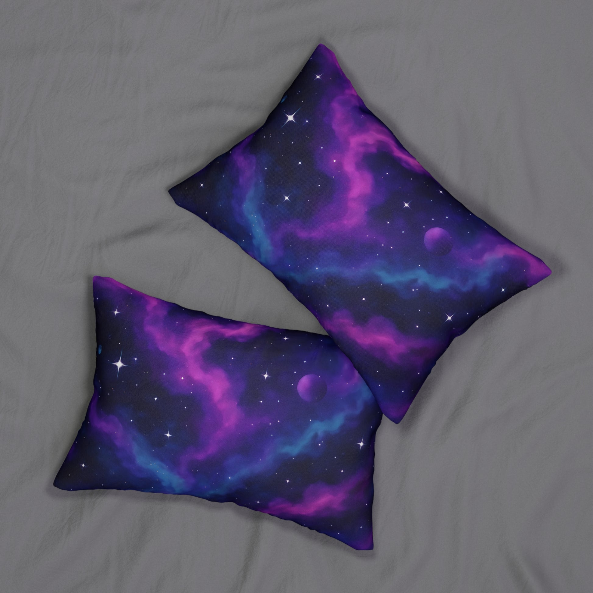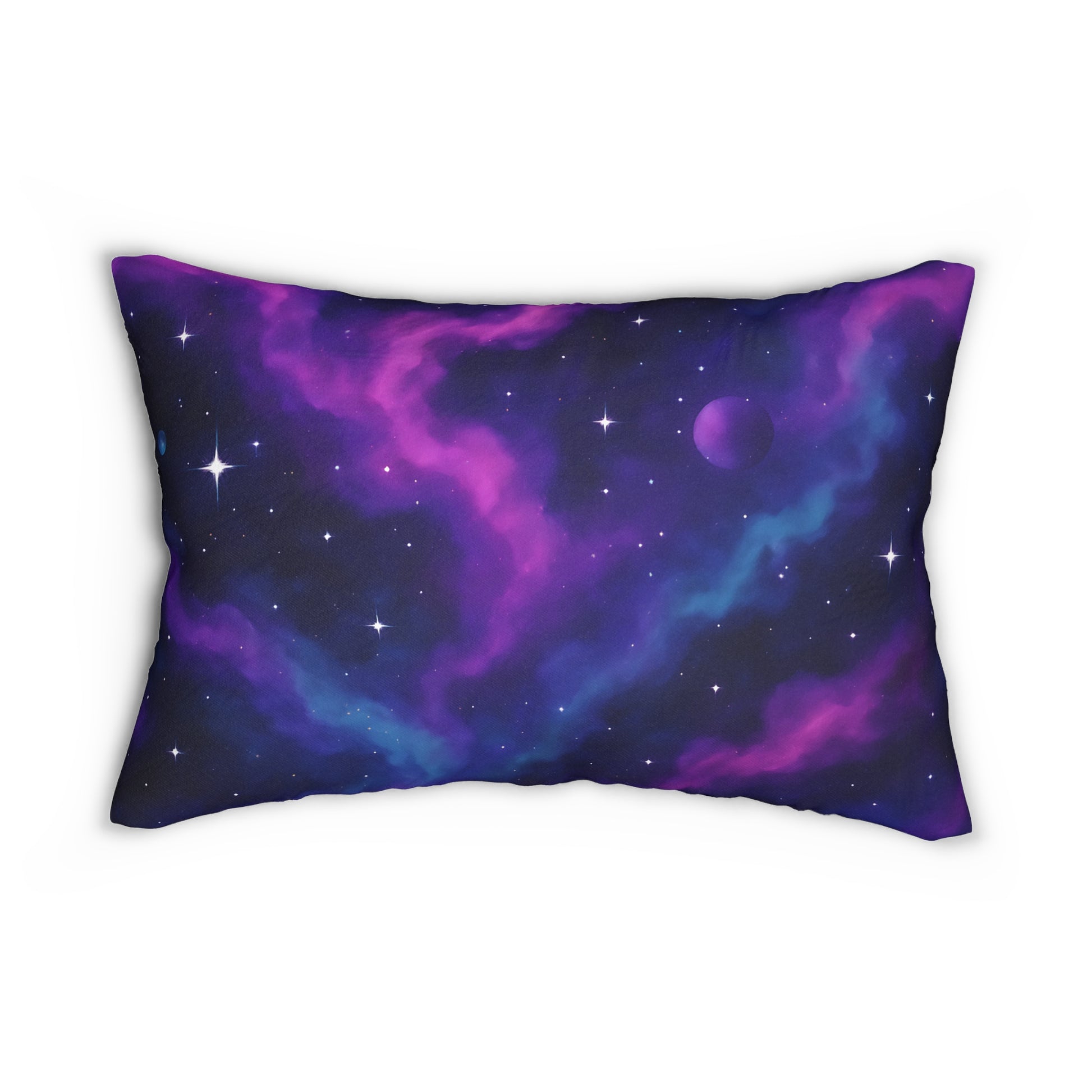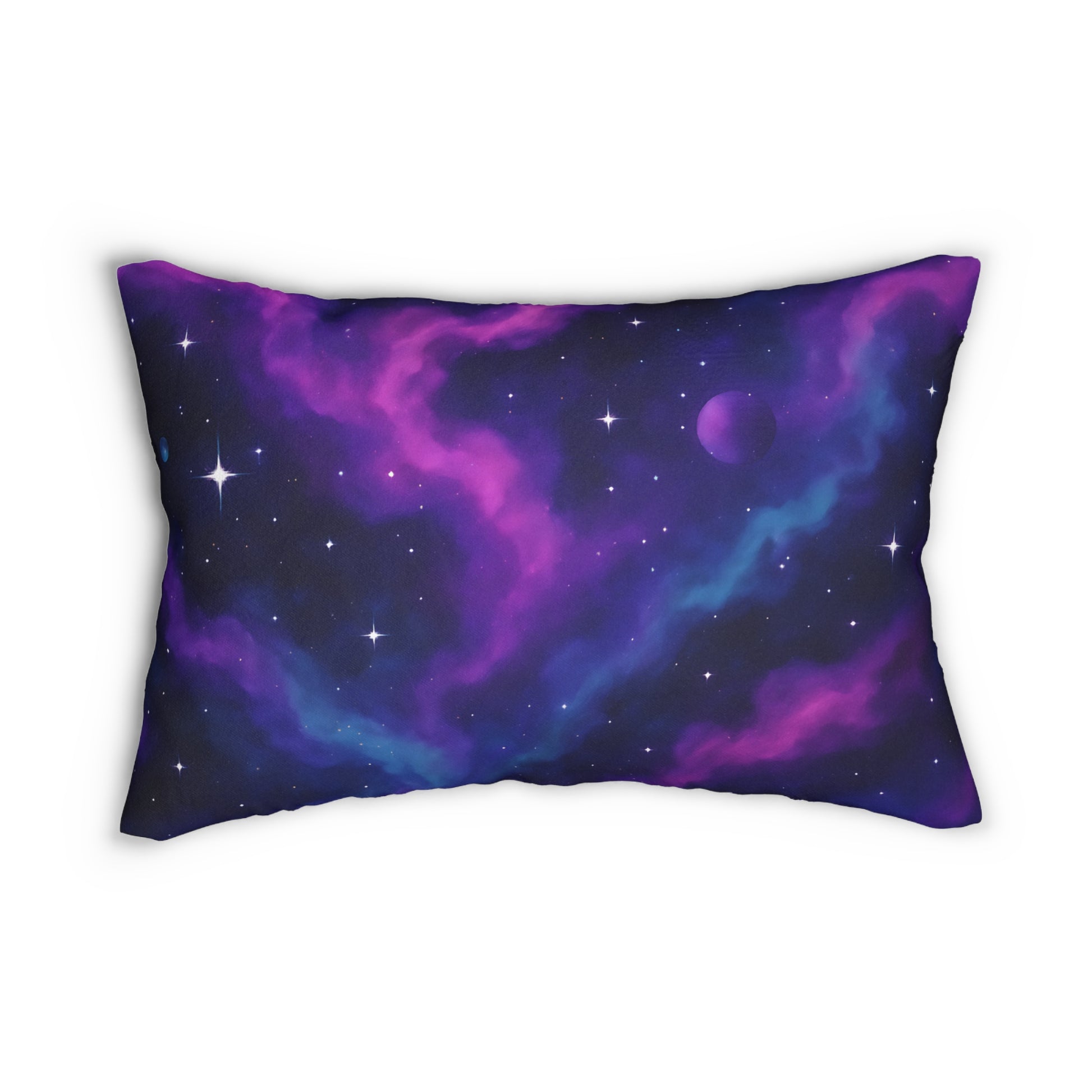 Cosmic Nebula Lumbar Pillow – Purple & Blue Galaxy Print Cushion.