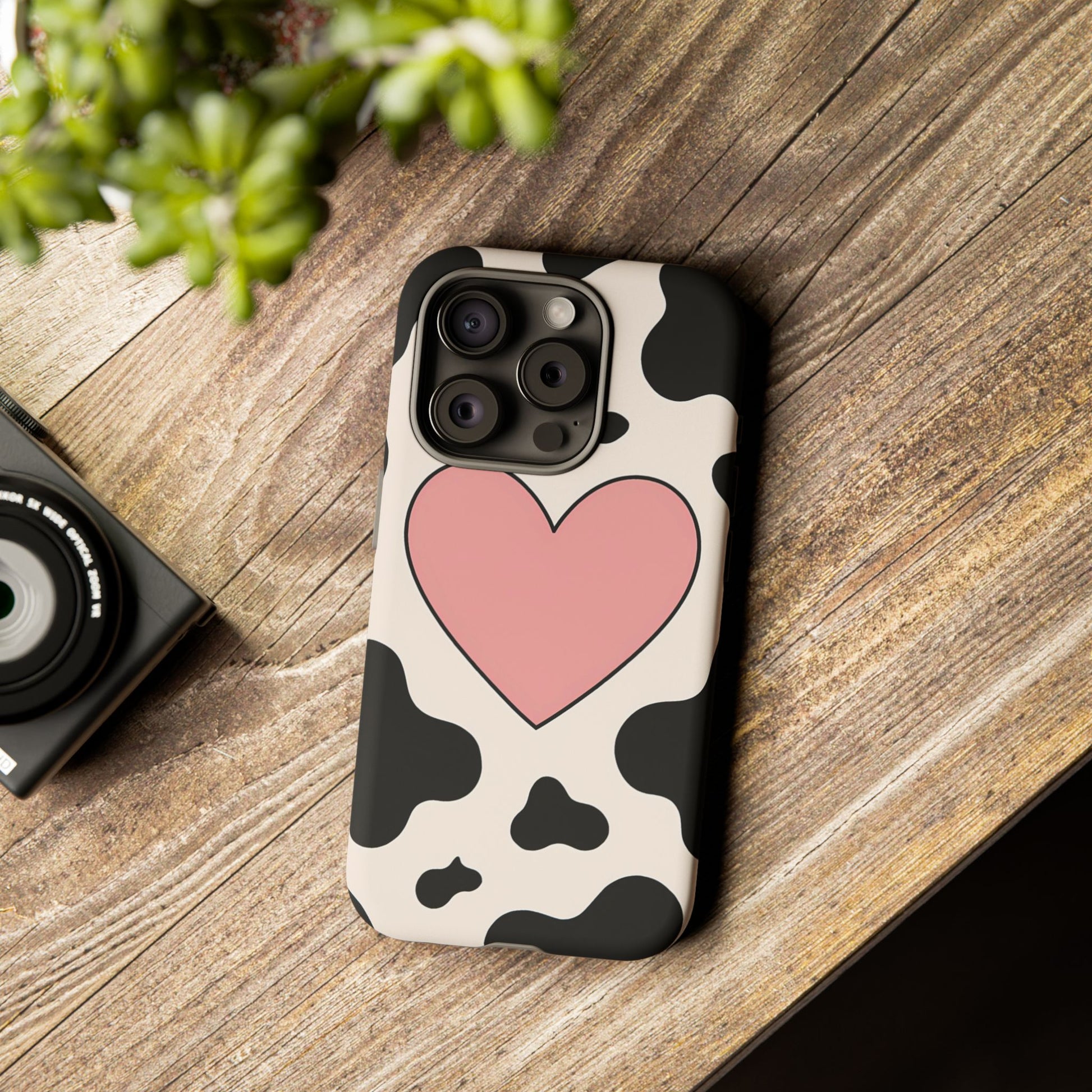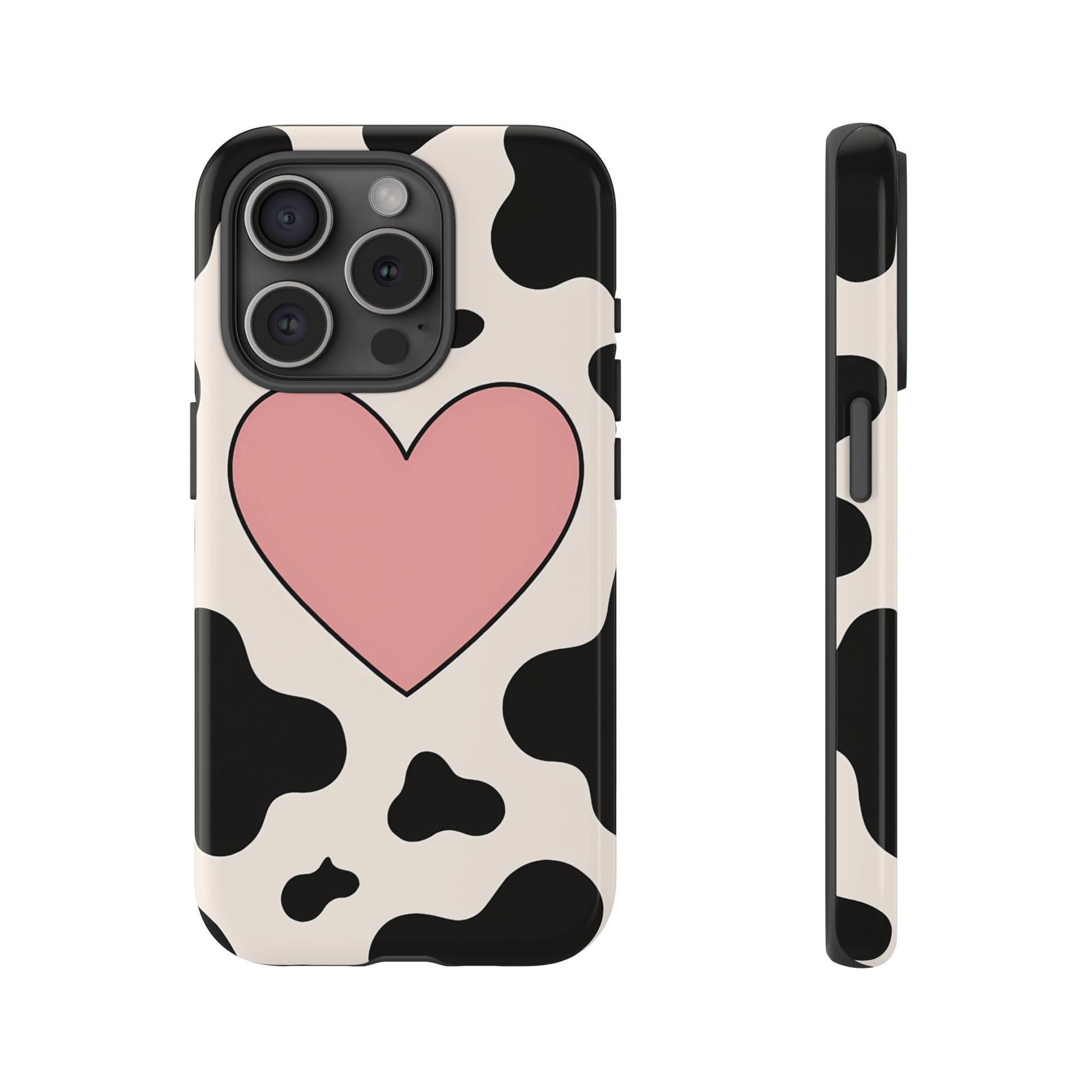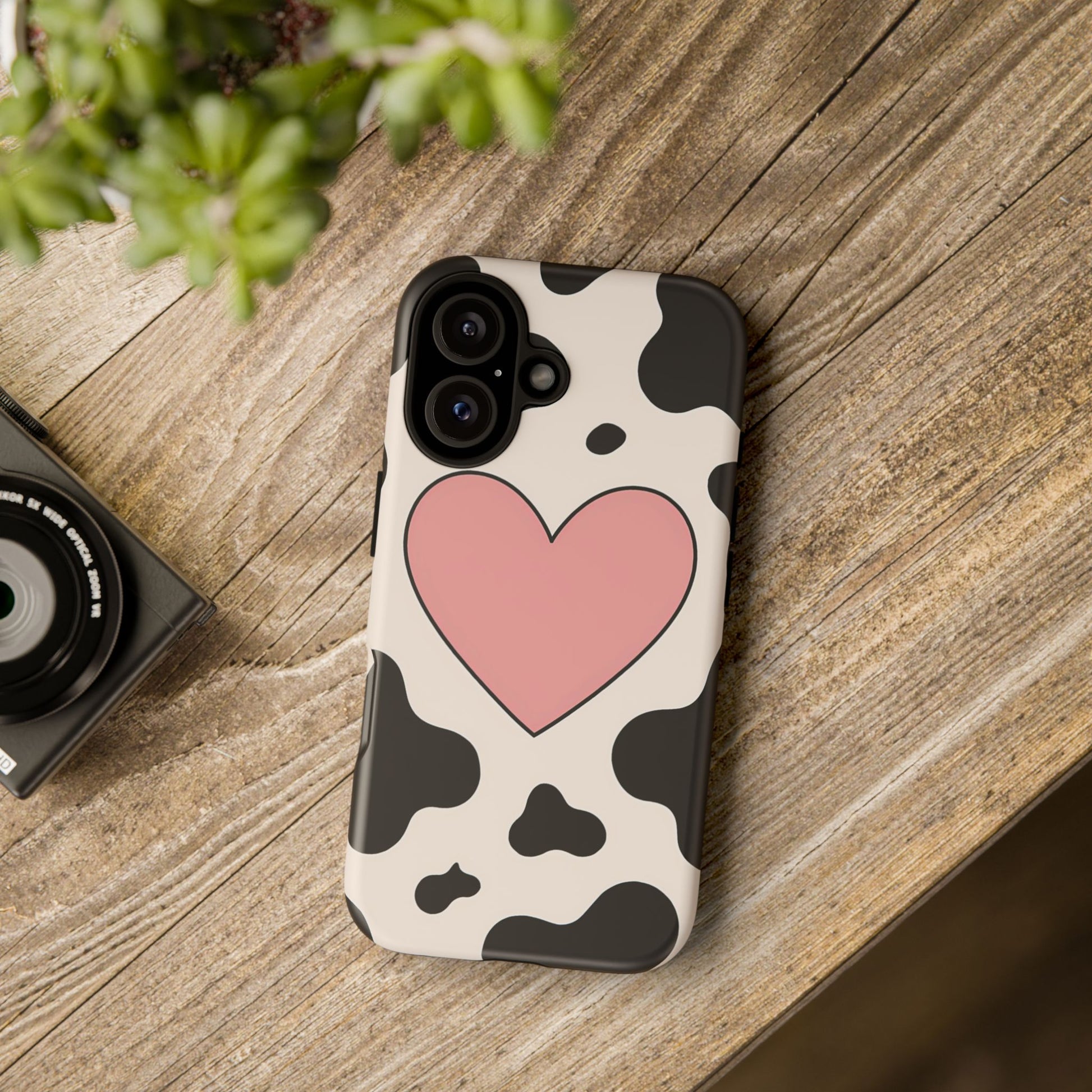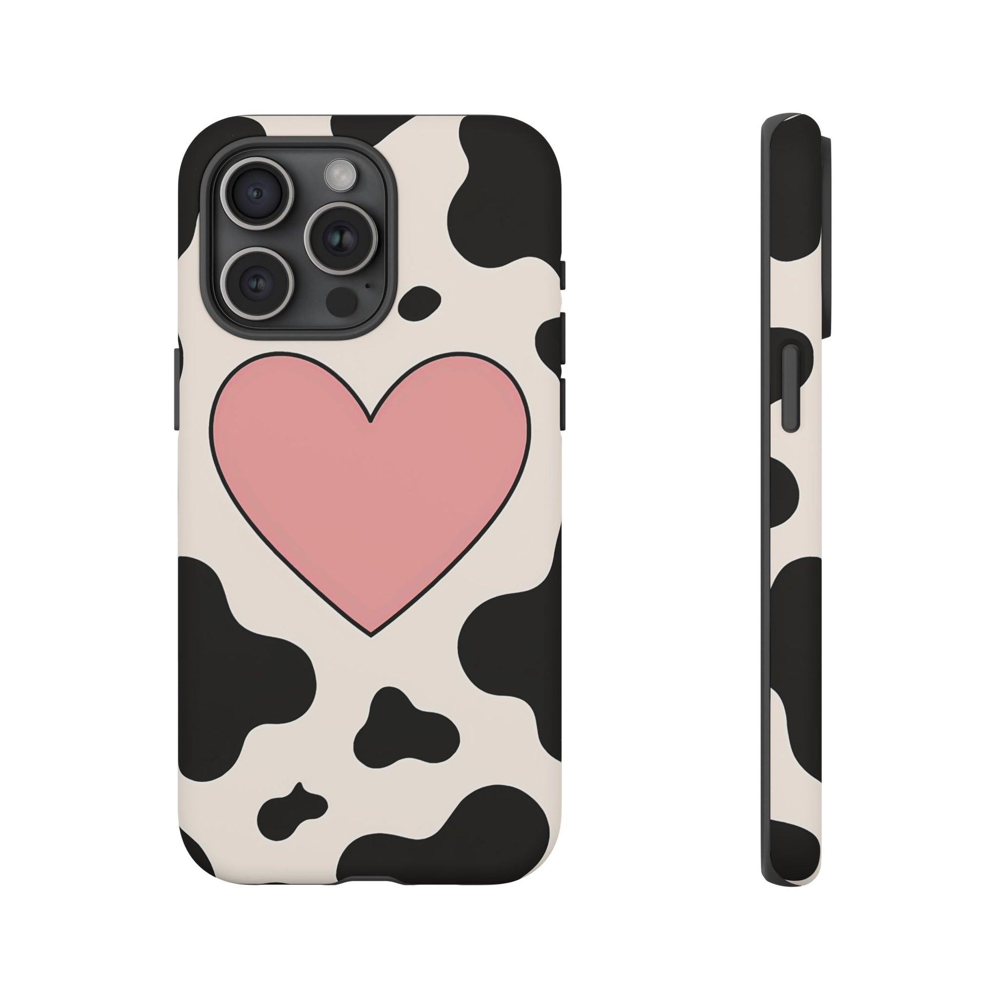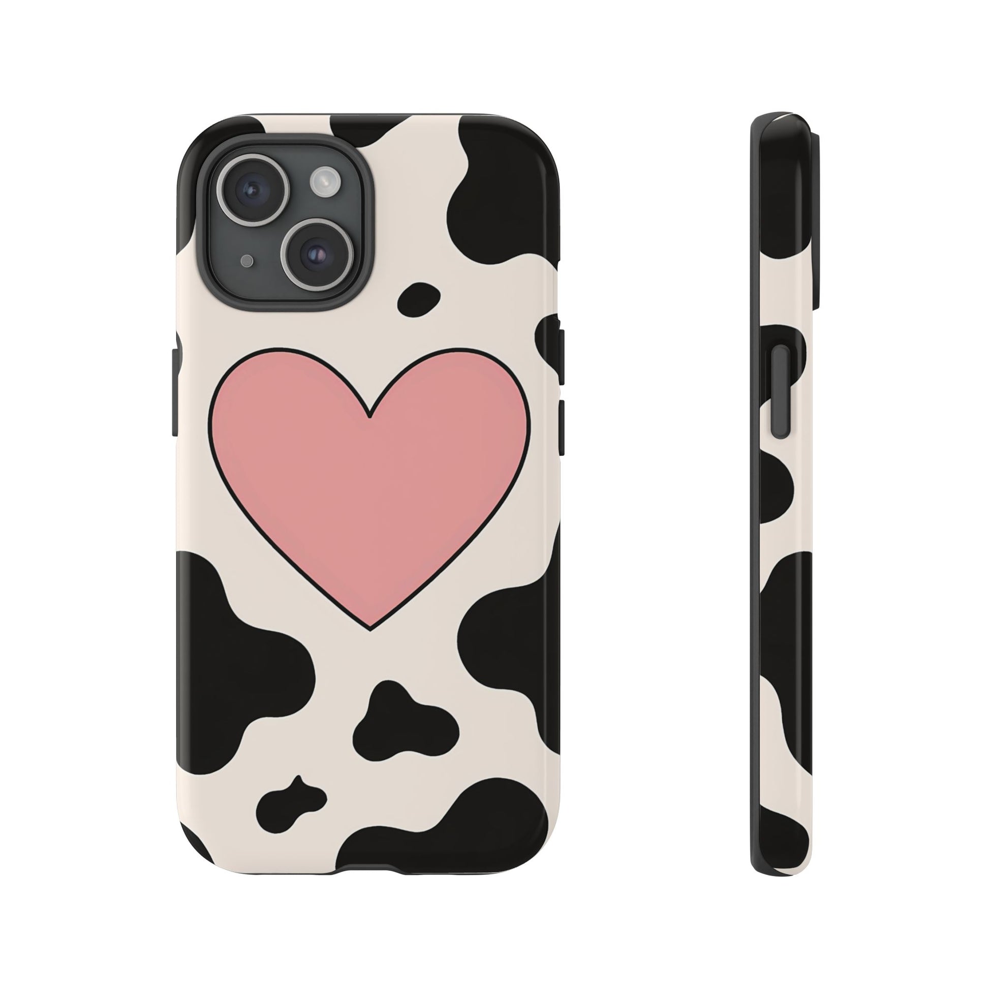 Cow Print Phone Case with Pink Heart – Bold & Cute Protective Cover