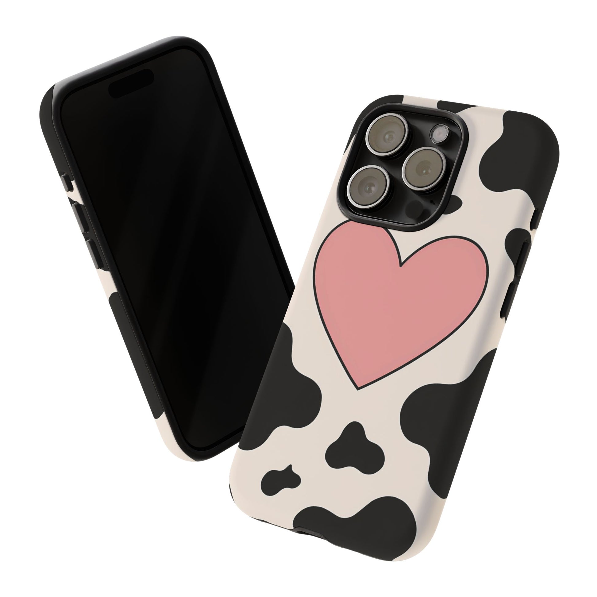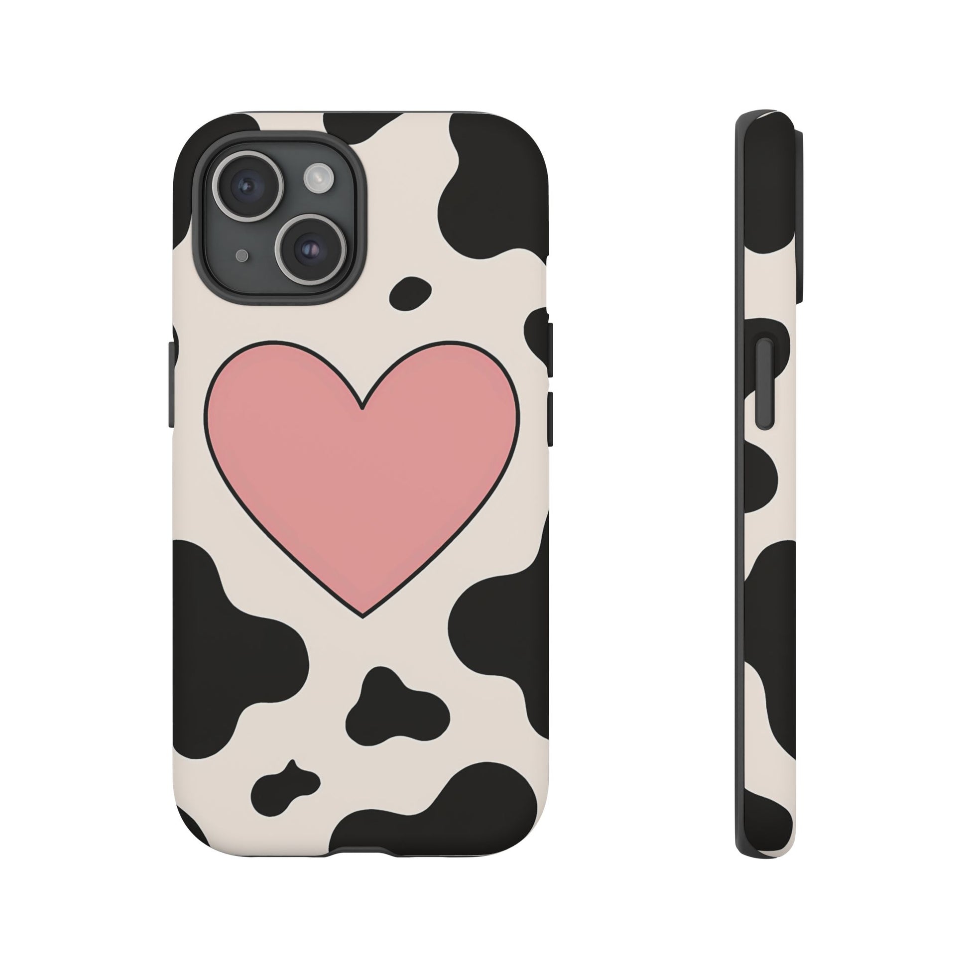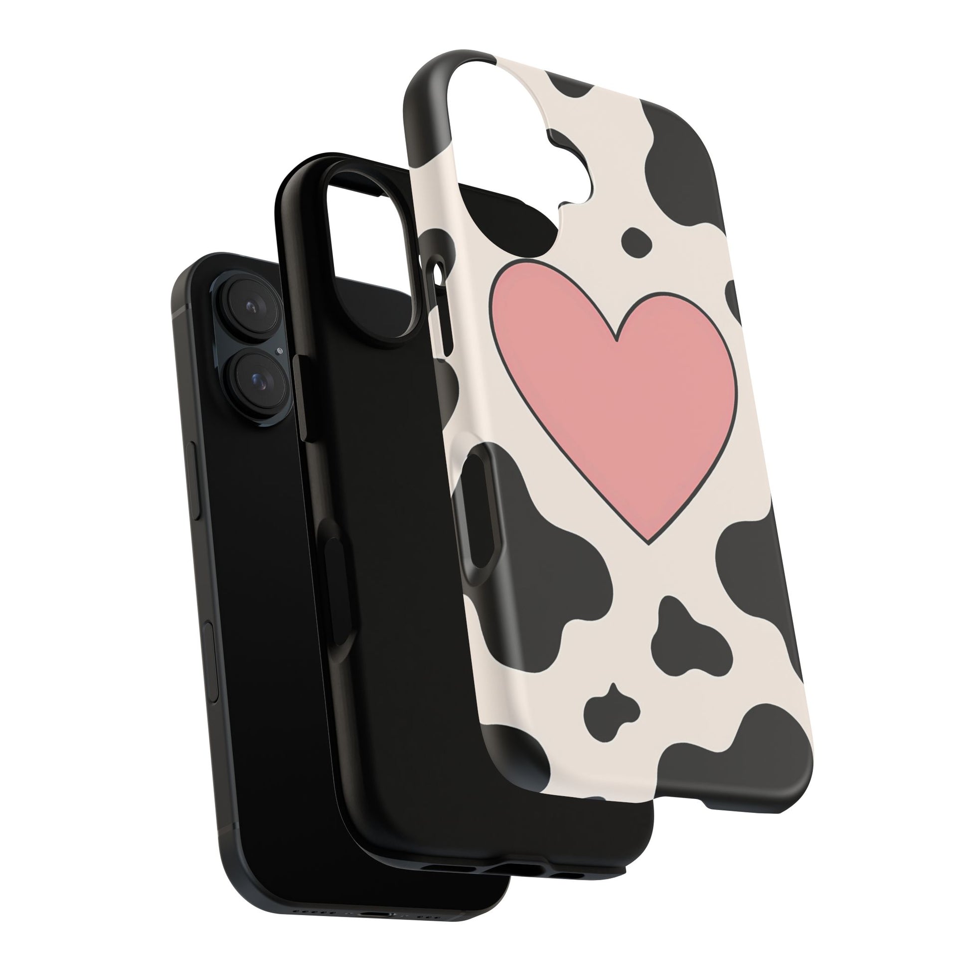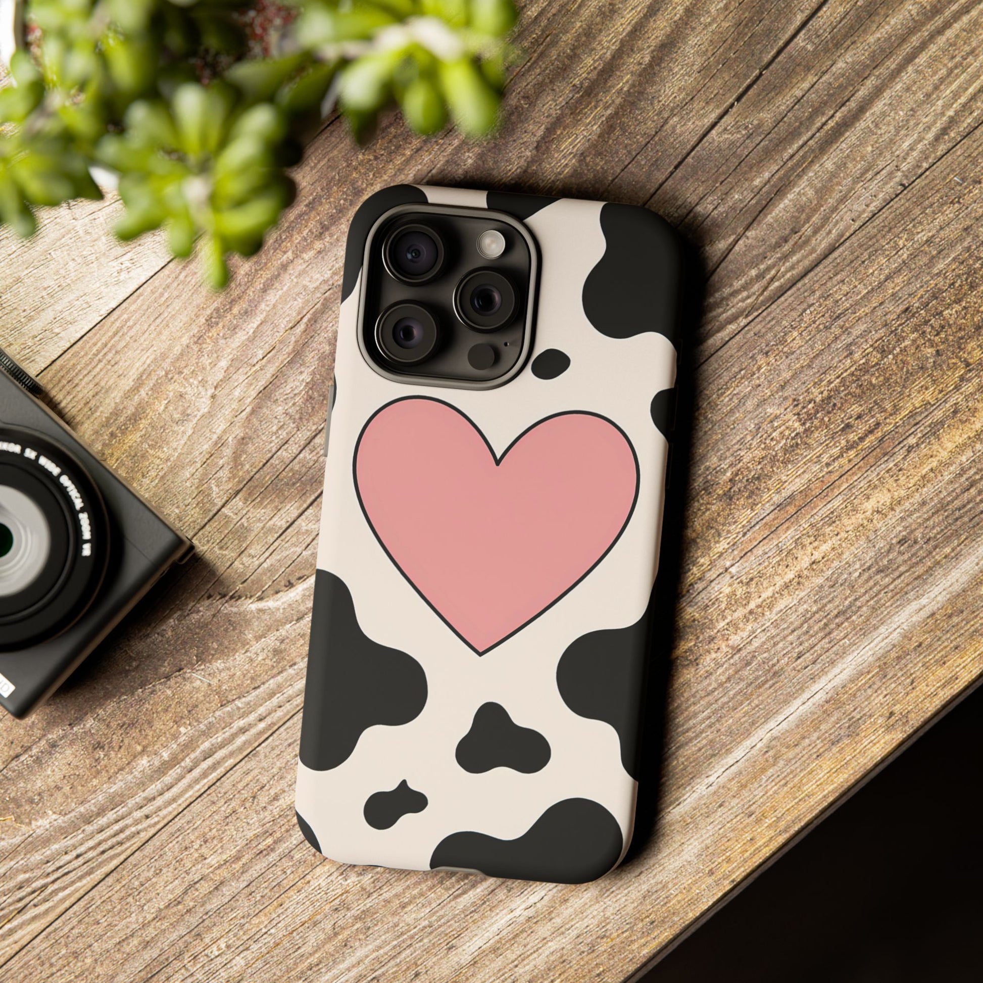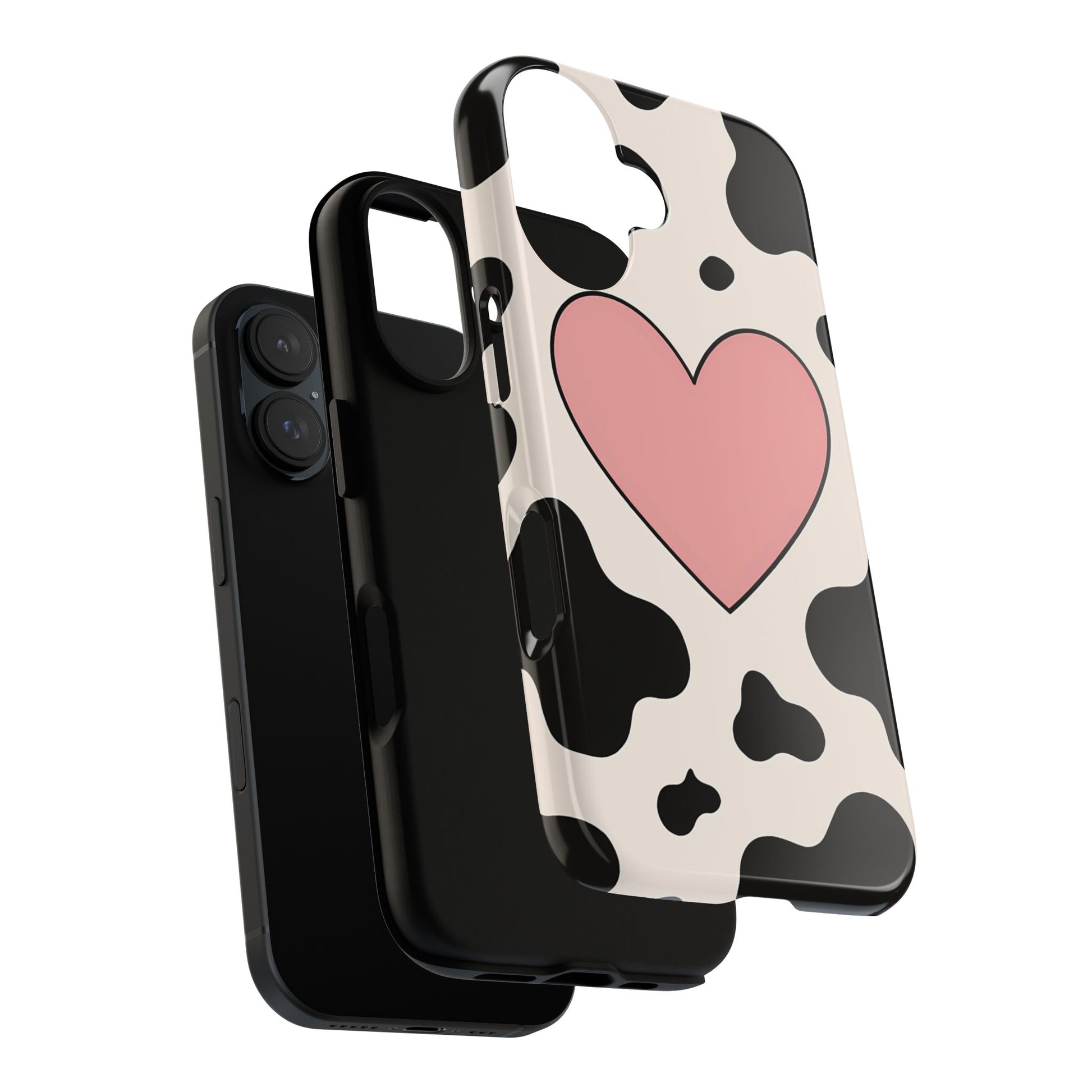 Cow Print Phone Case with Pink Heart – Bold & Cute Protective Cover