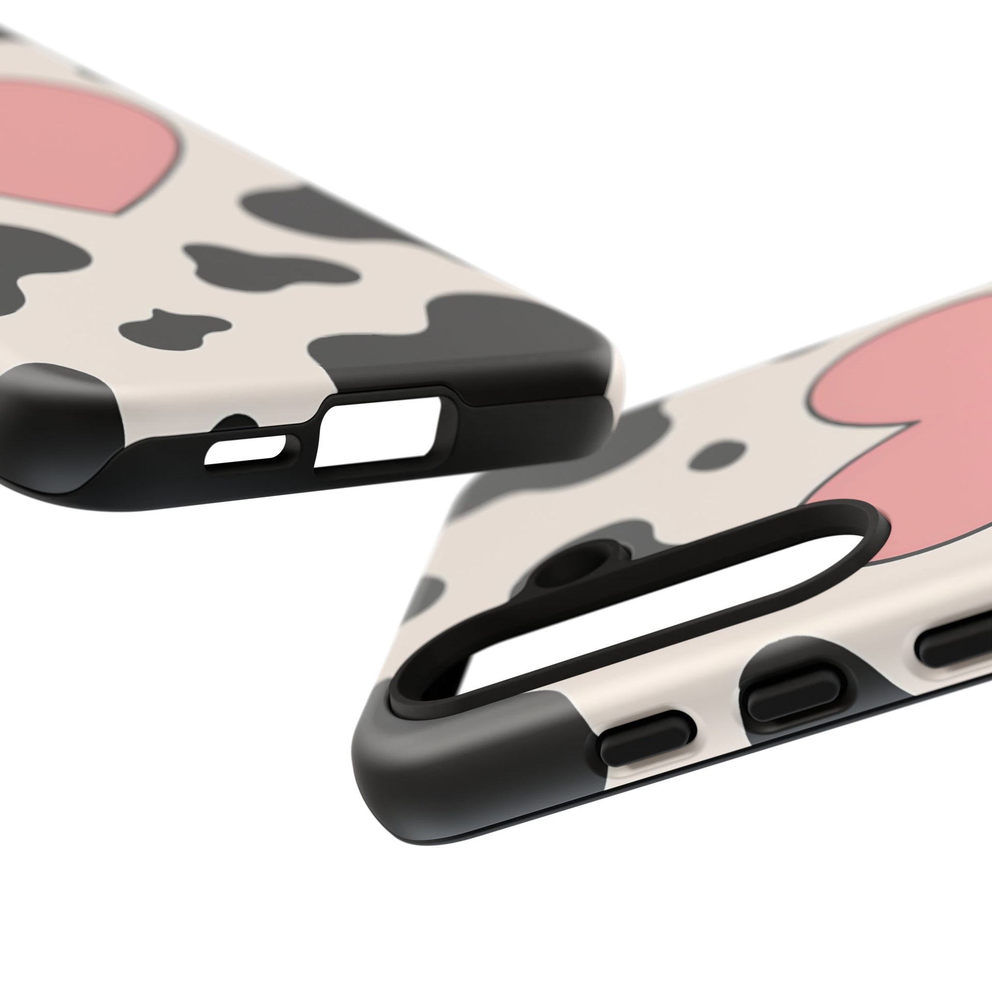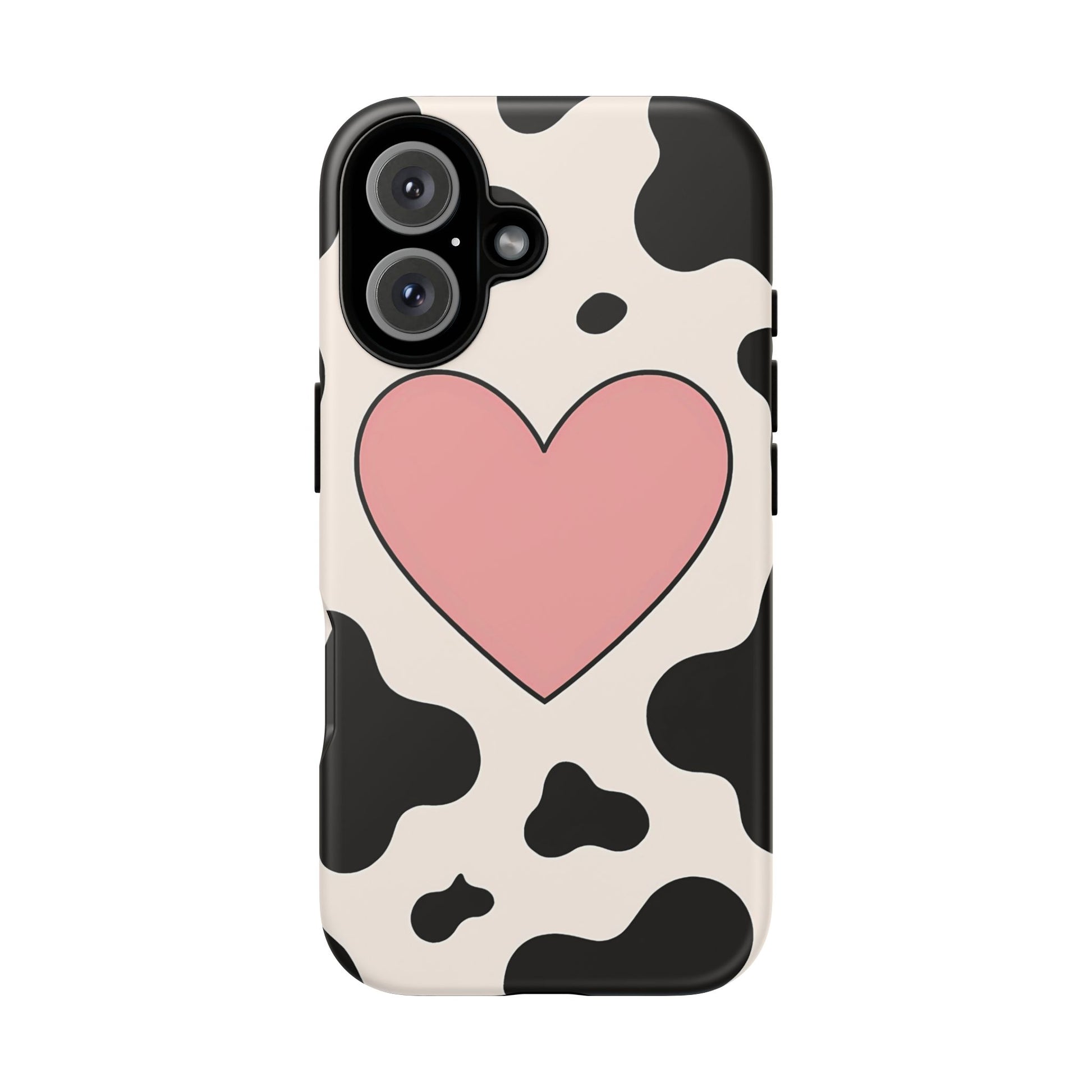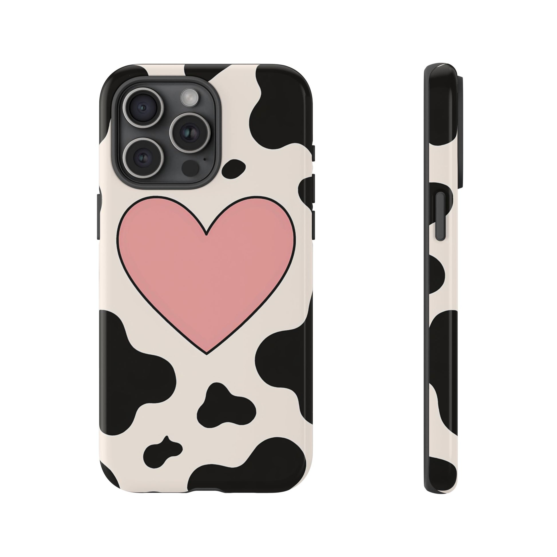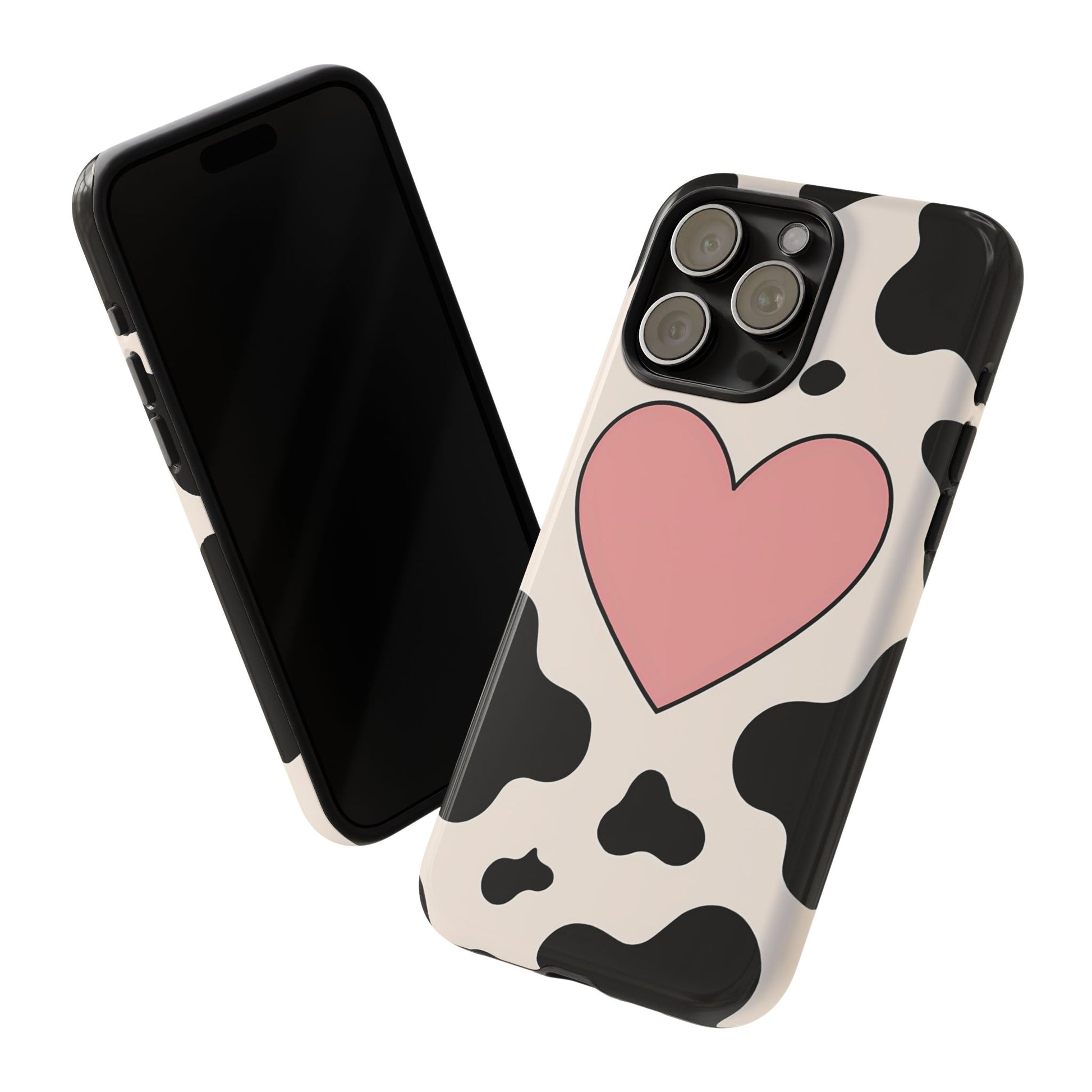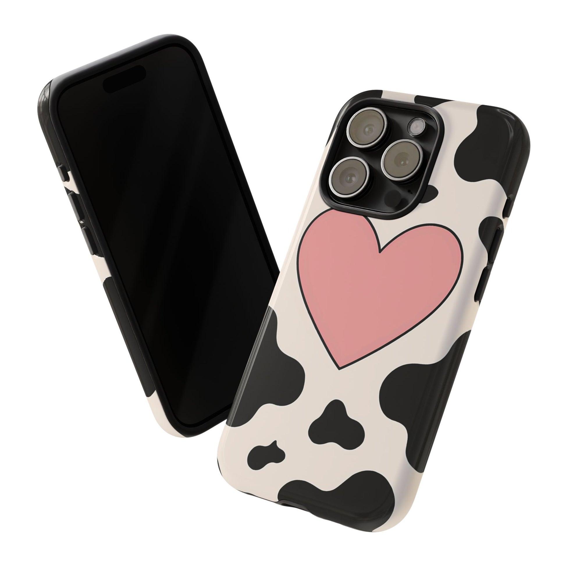Cow Print Phone Case with Pink Heart – Bold & Cute Protective Cover
