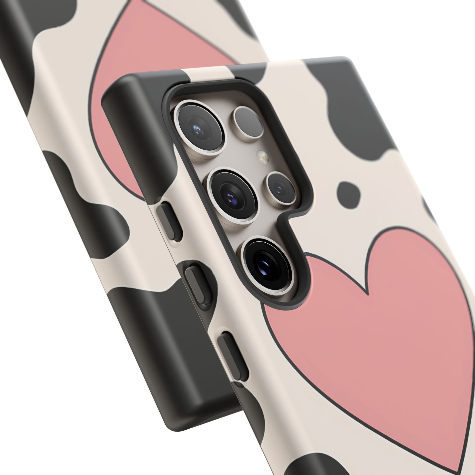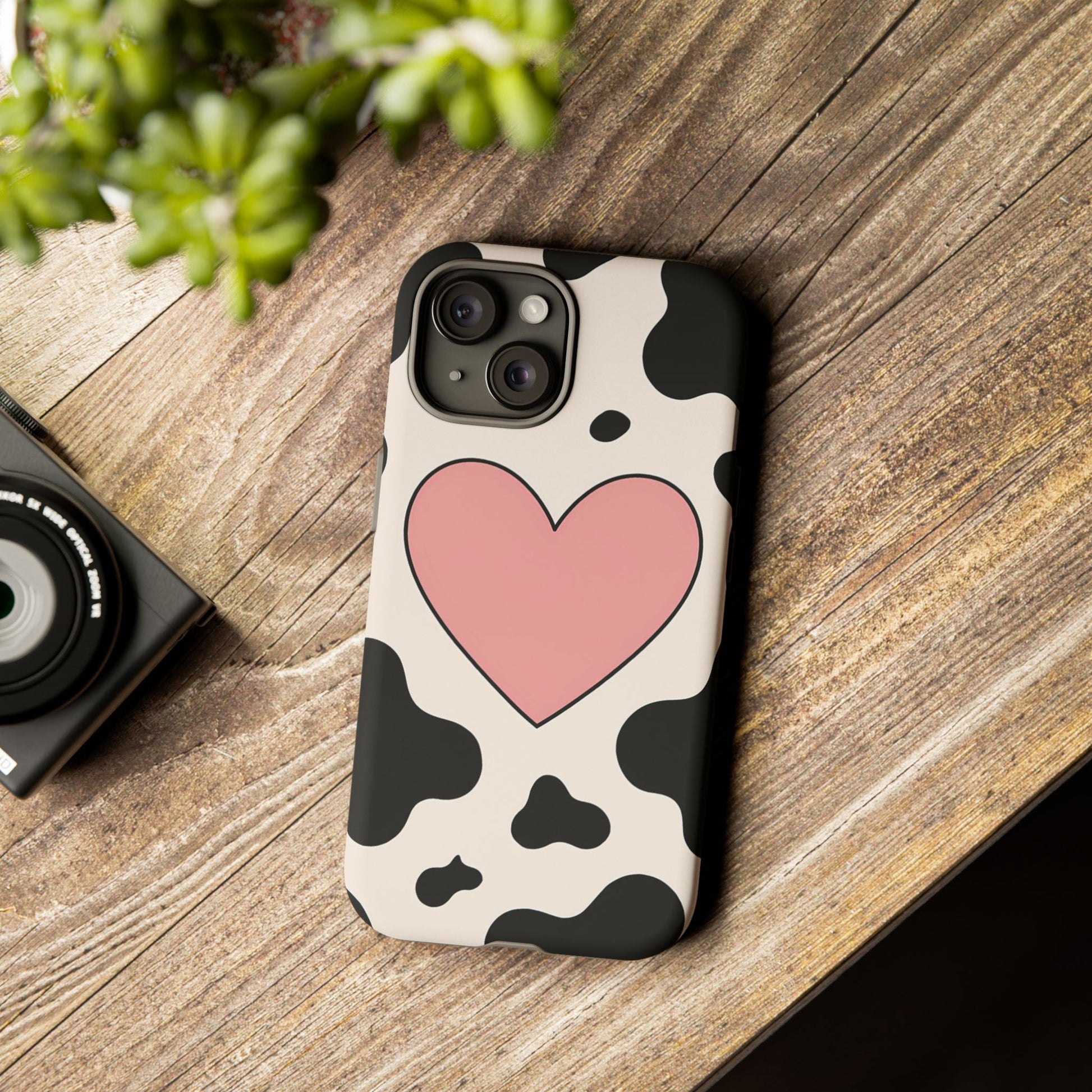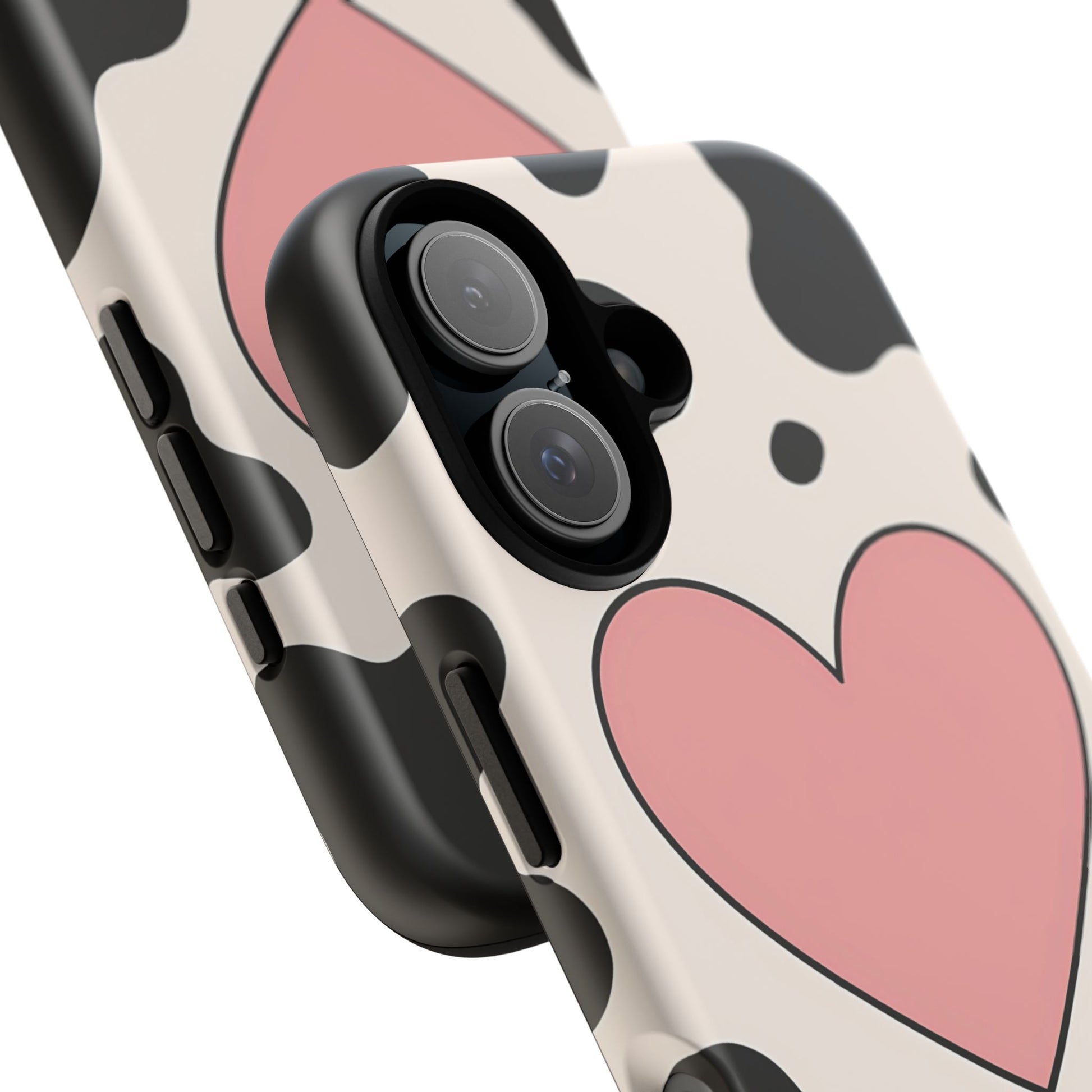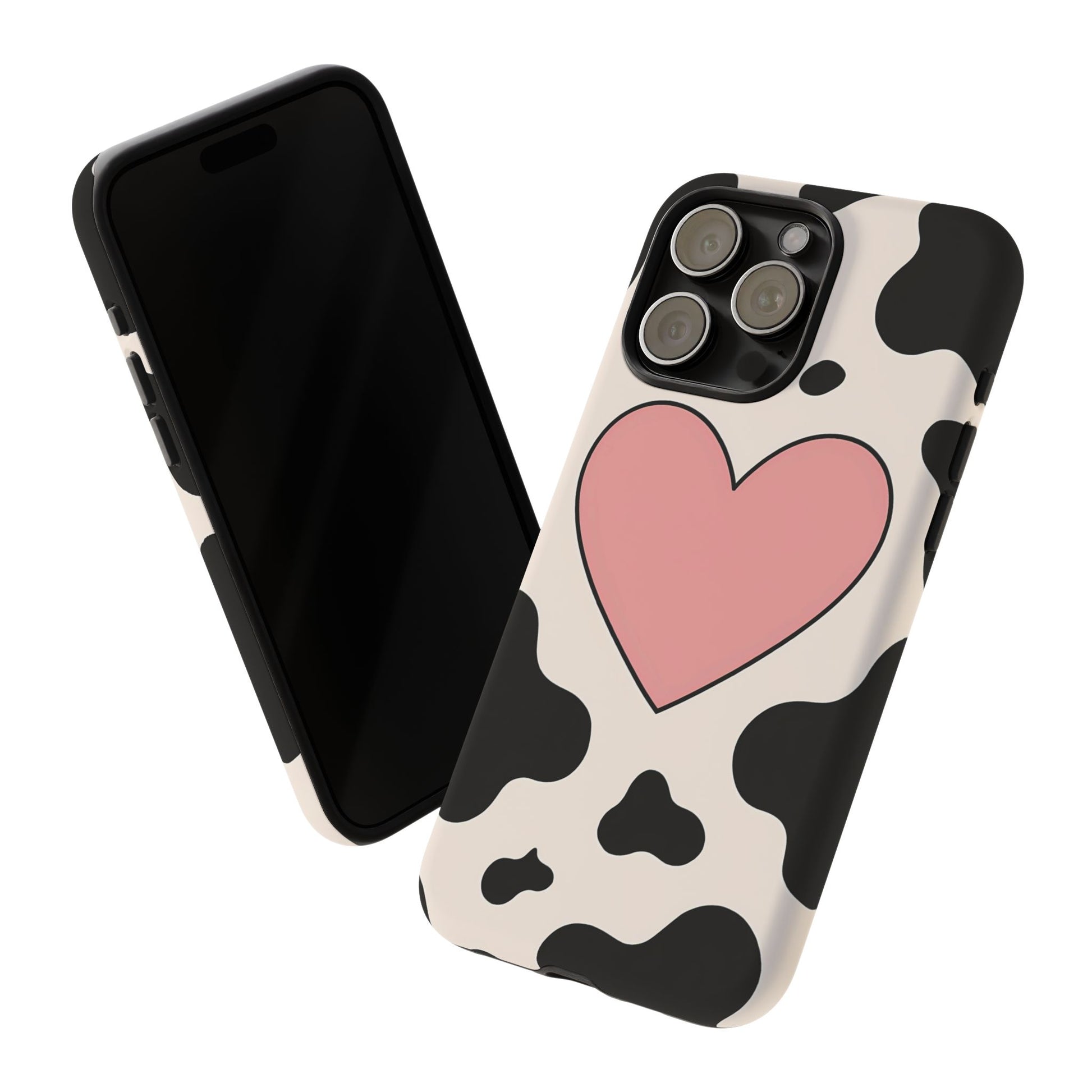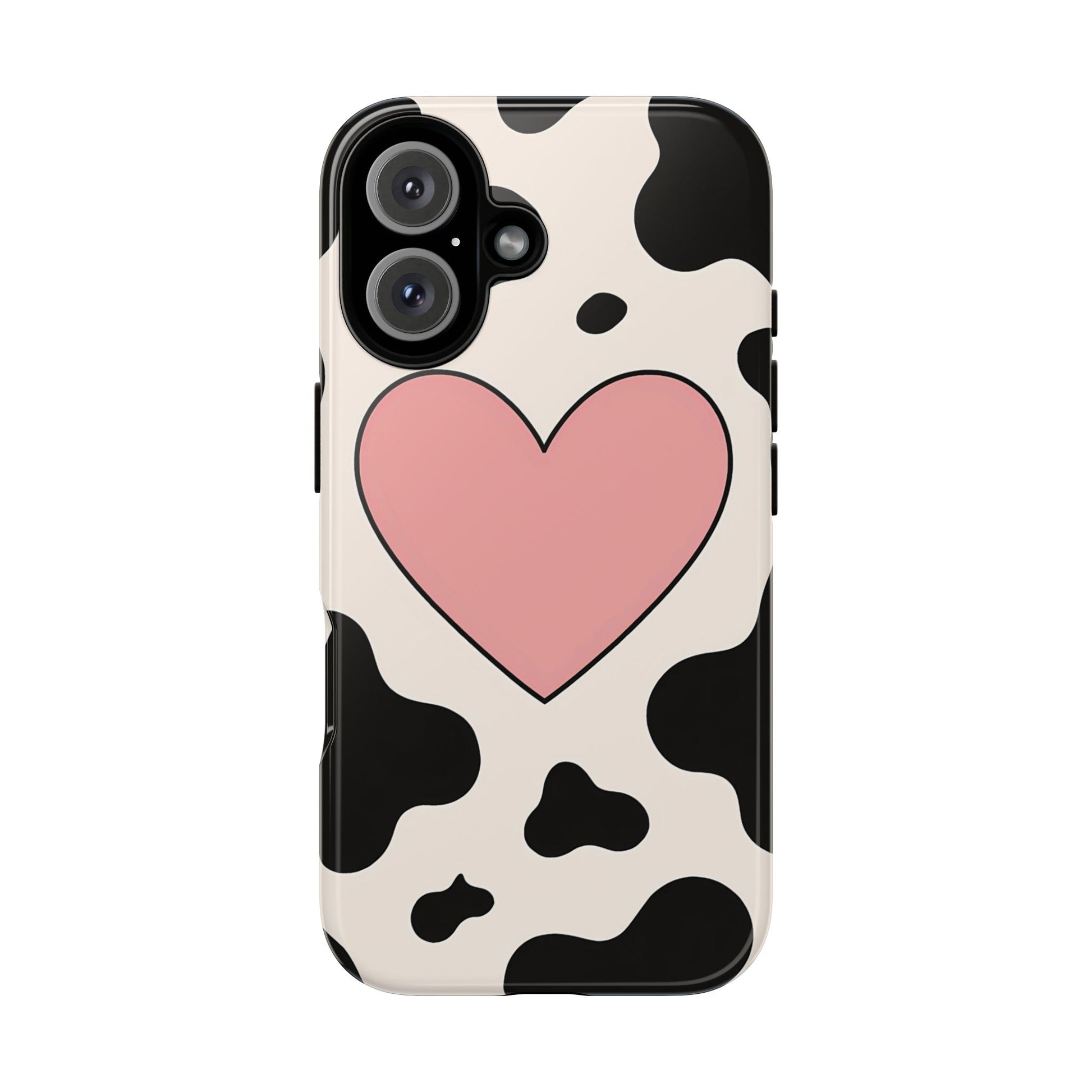 Cow Print Phone Case with Pink Heart – Bold & Cute Protective Cover