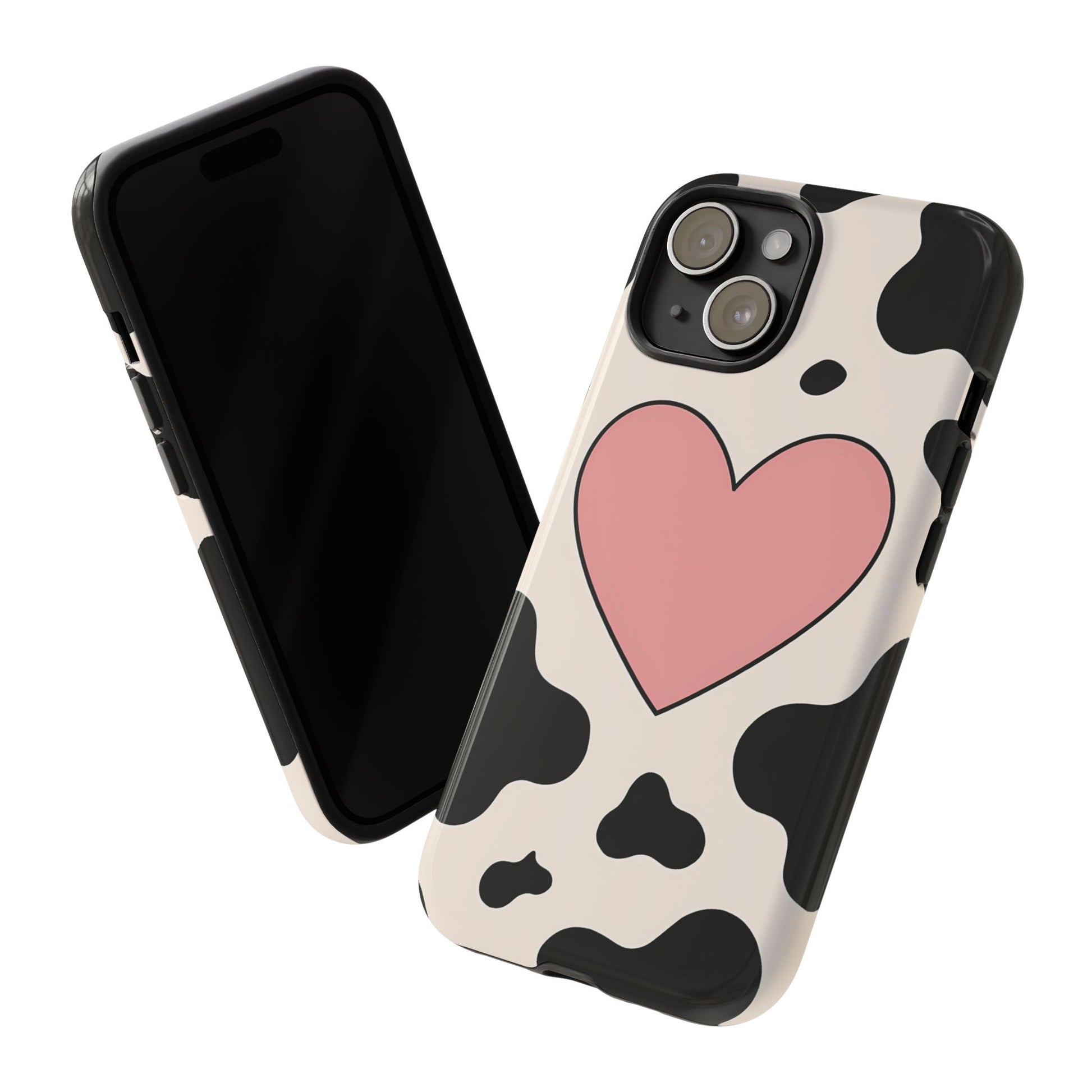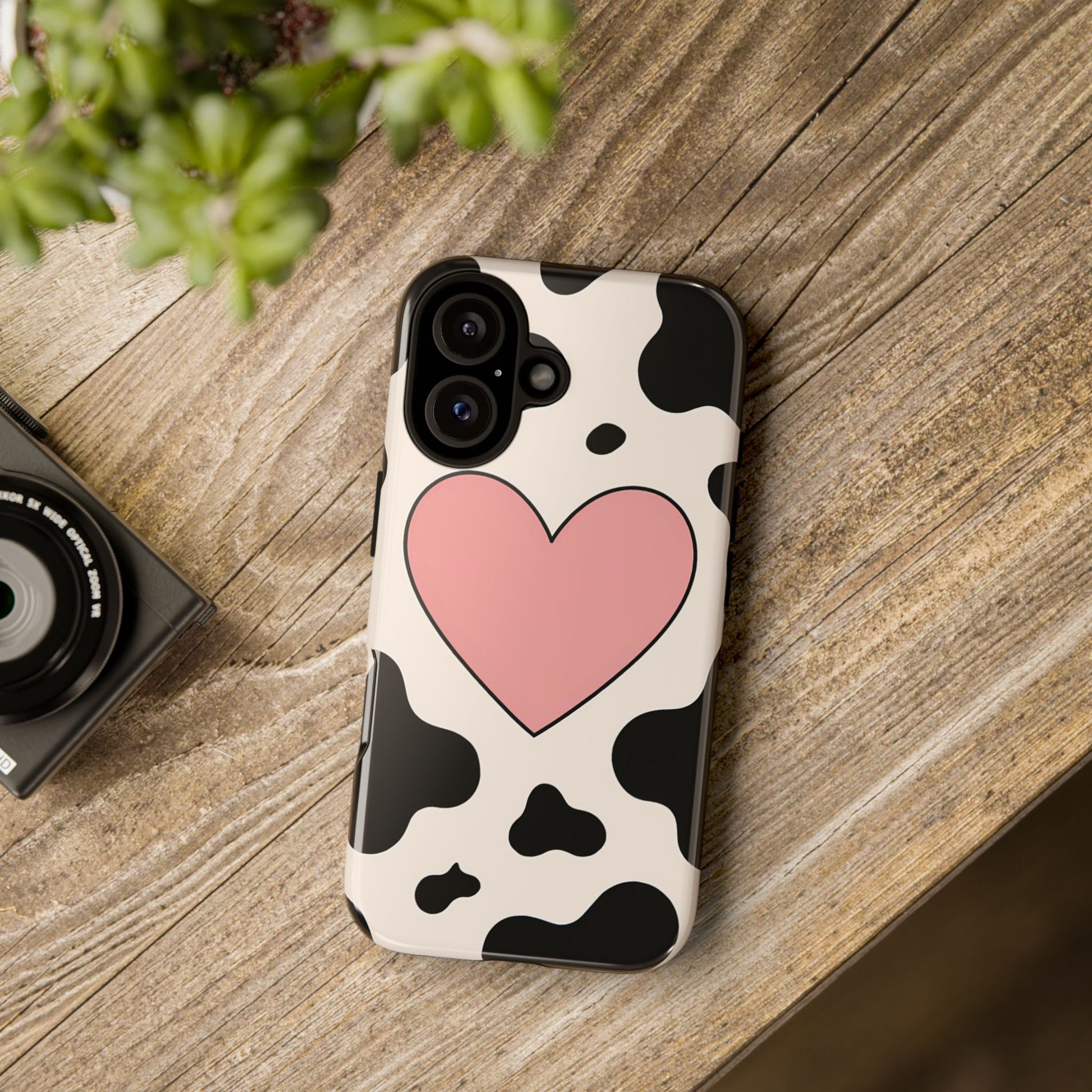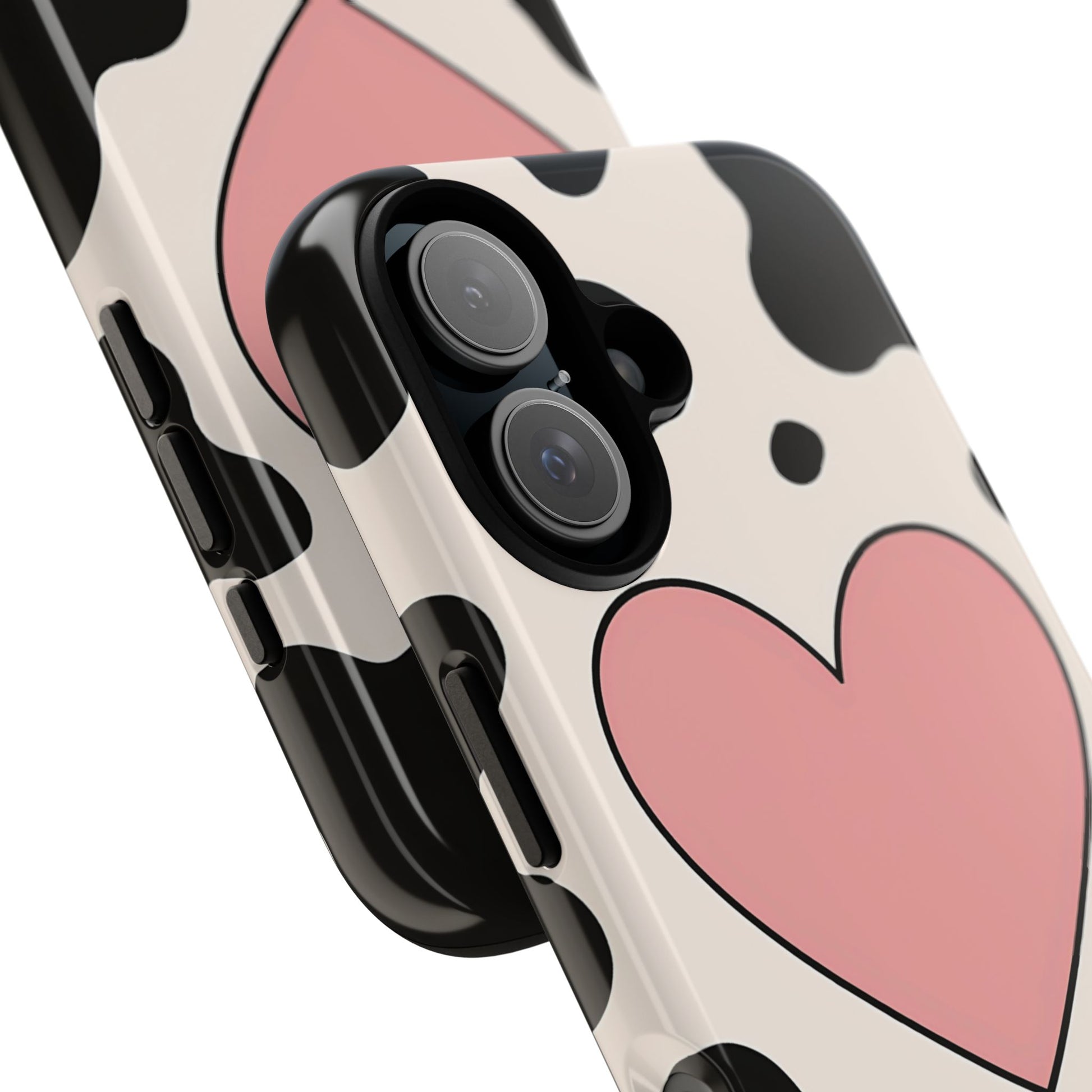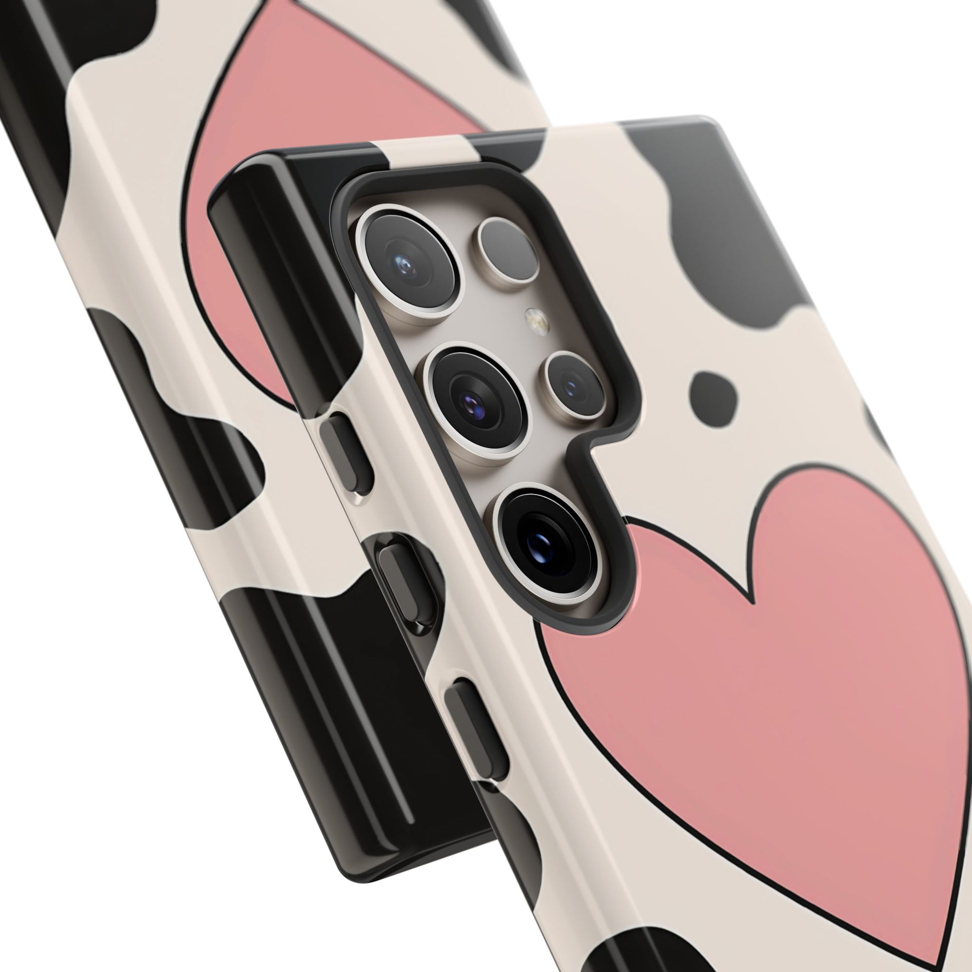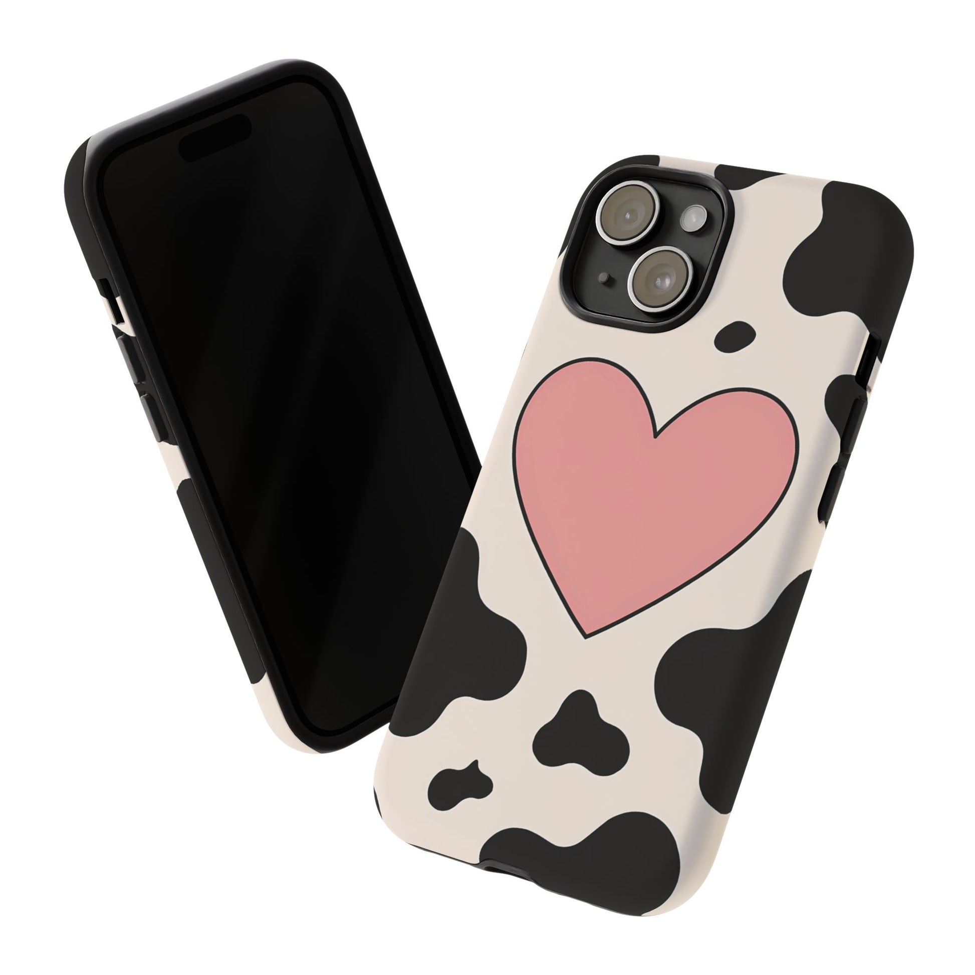 Cow Print Phone Case with Pink Heart – Bold & Cute Protective Cover