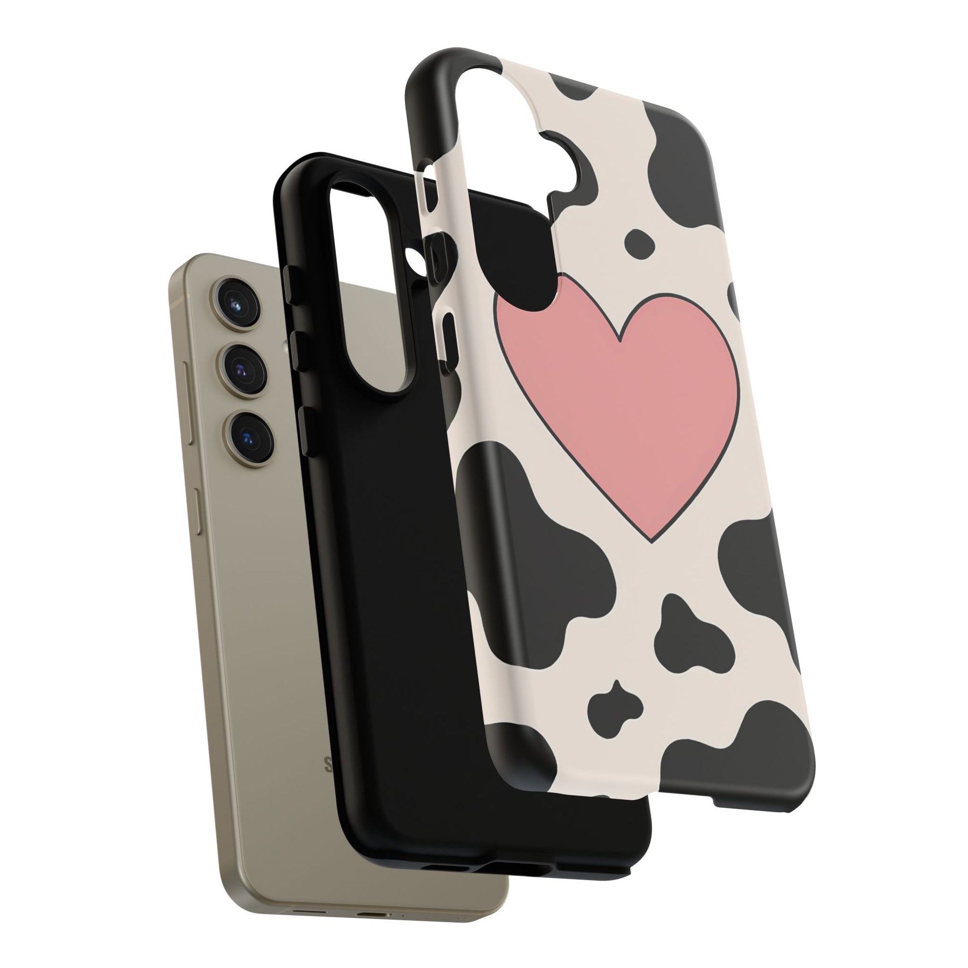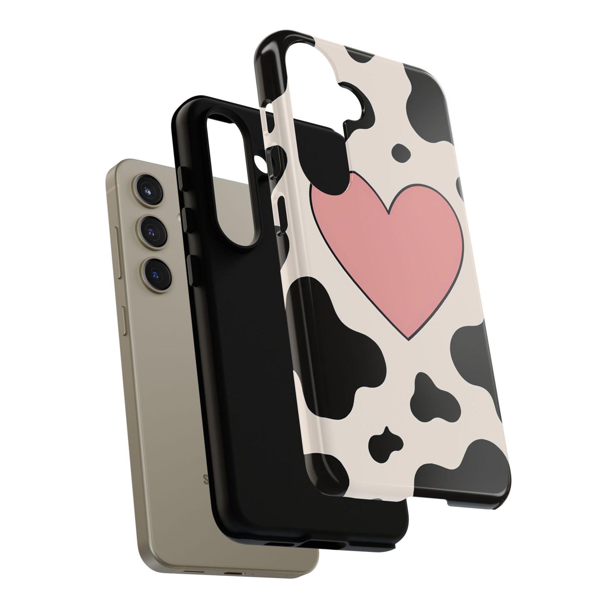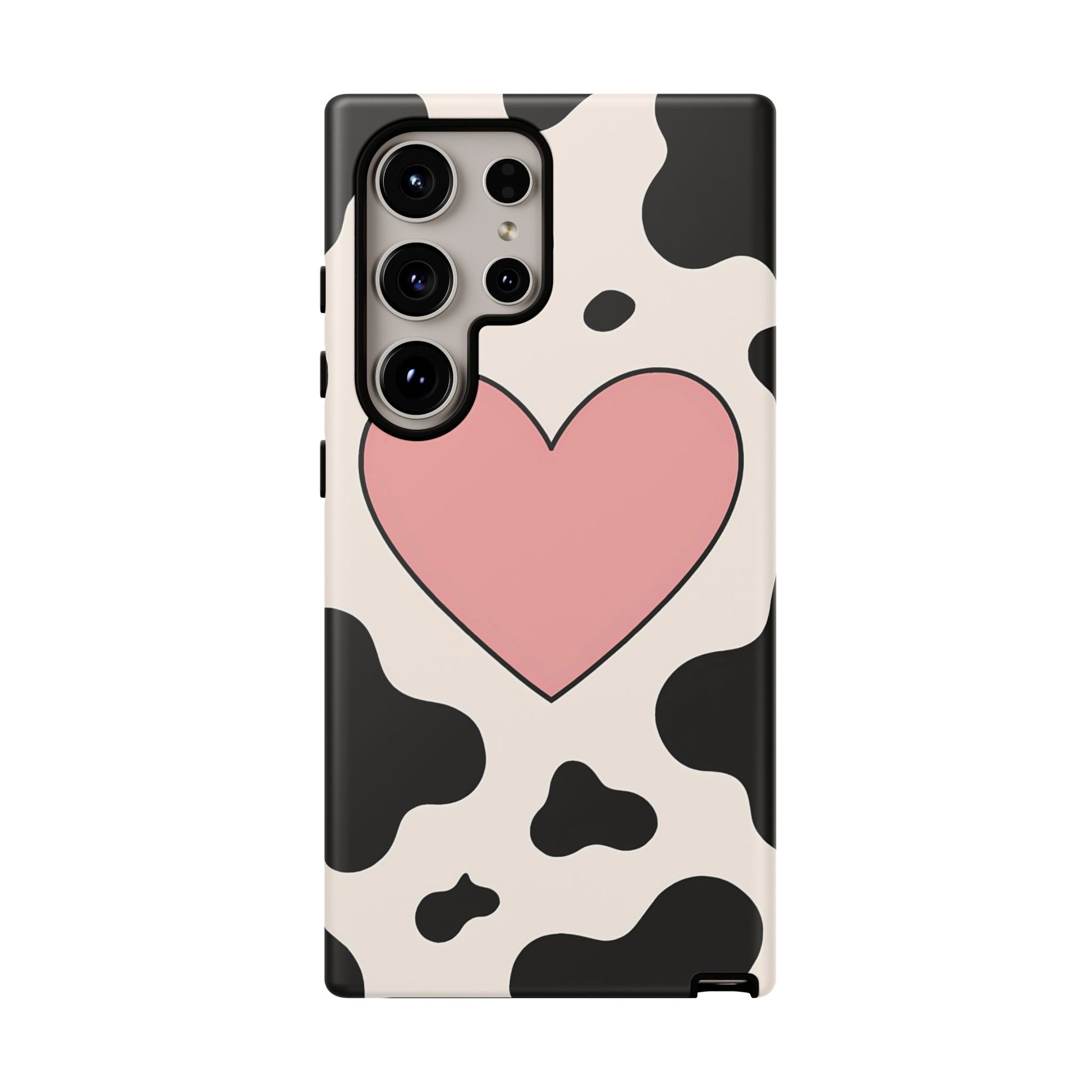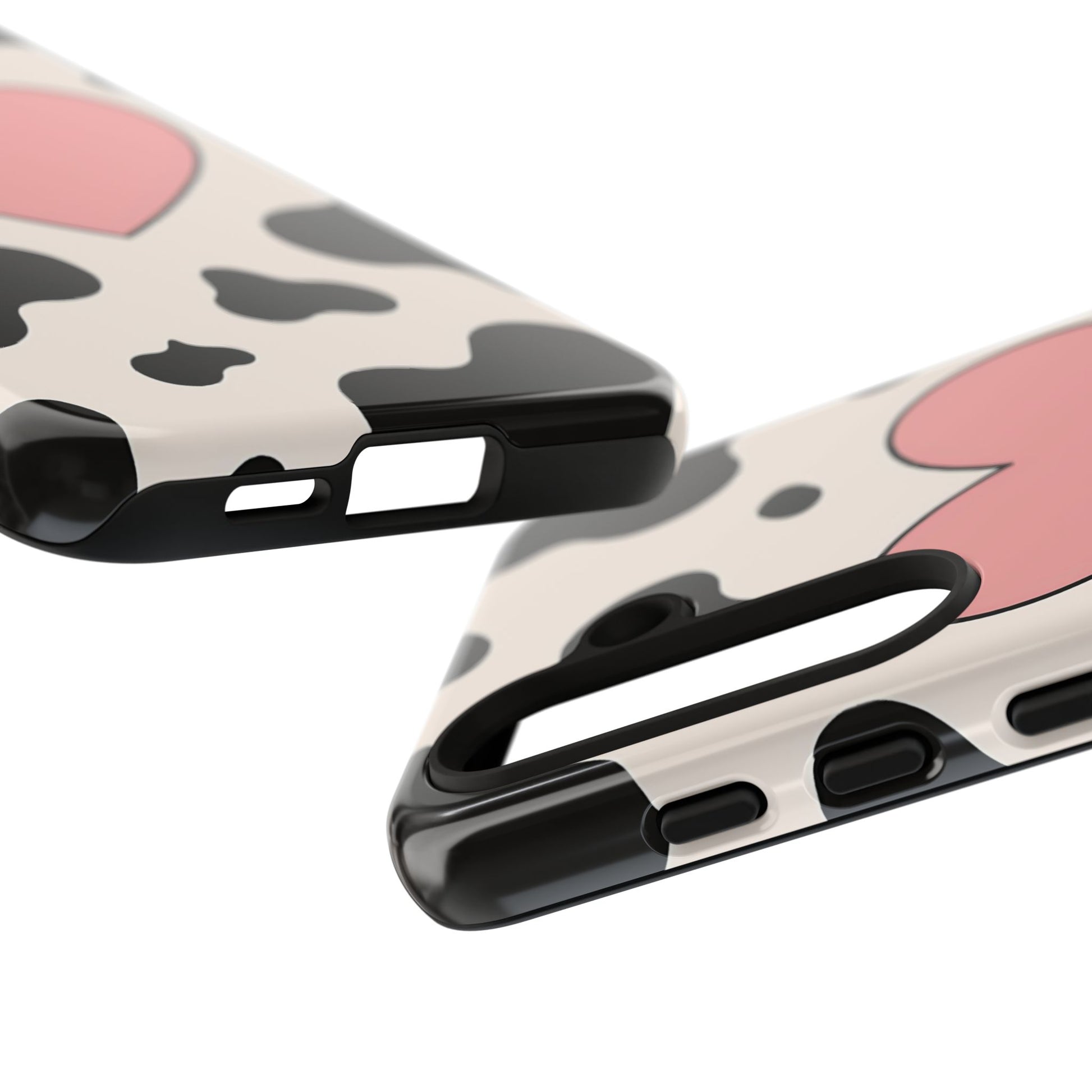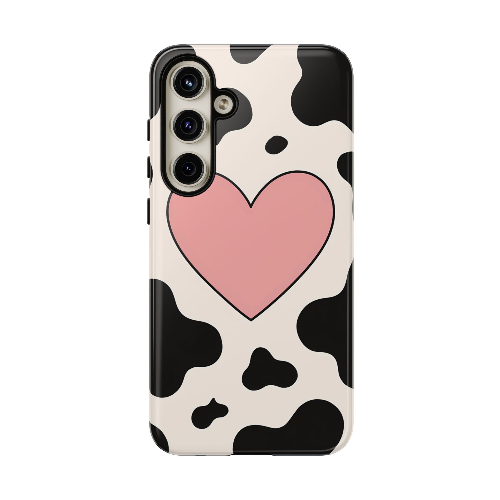 Cow Print Phone Case with Pink Heart – Bold & Cute Protective Cover