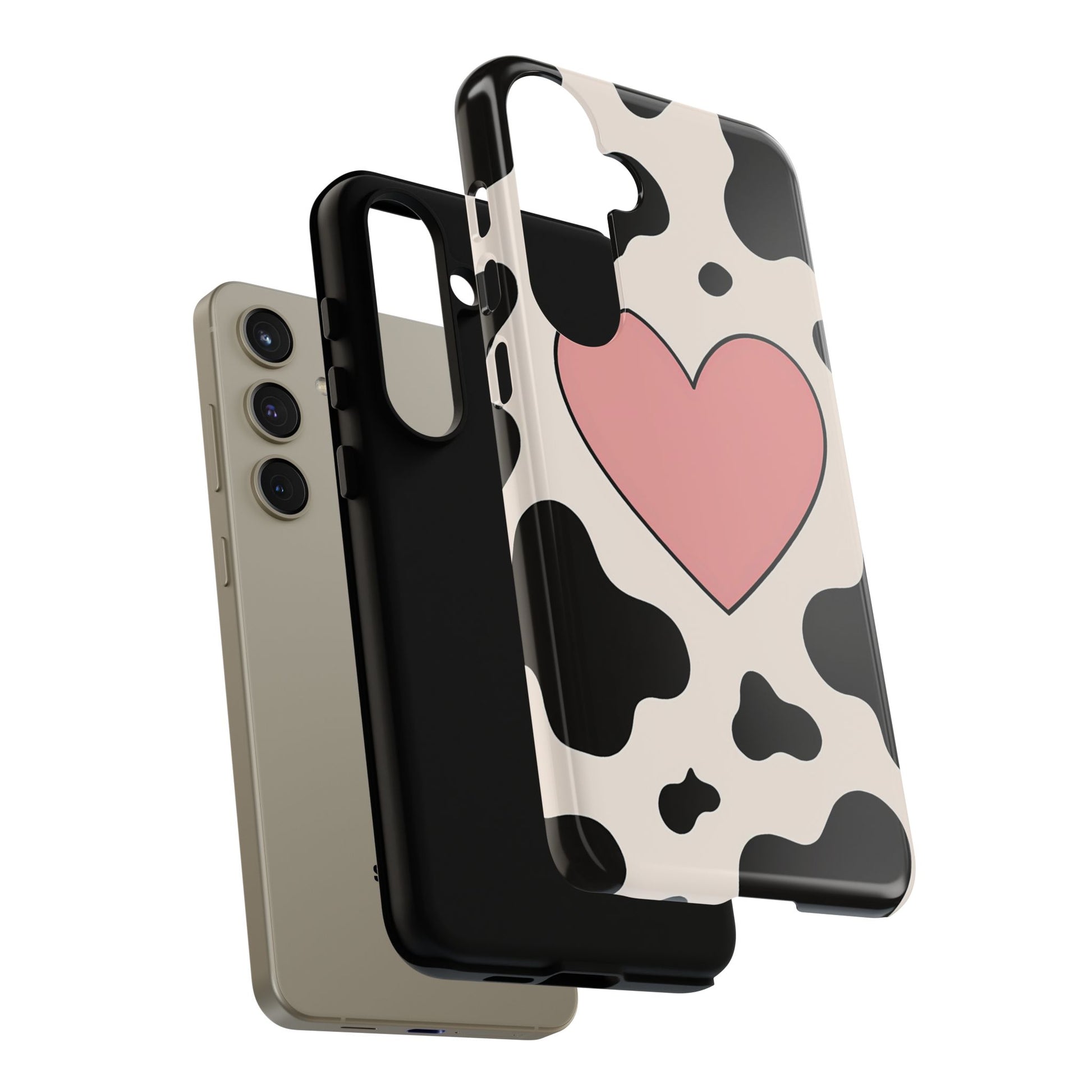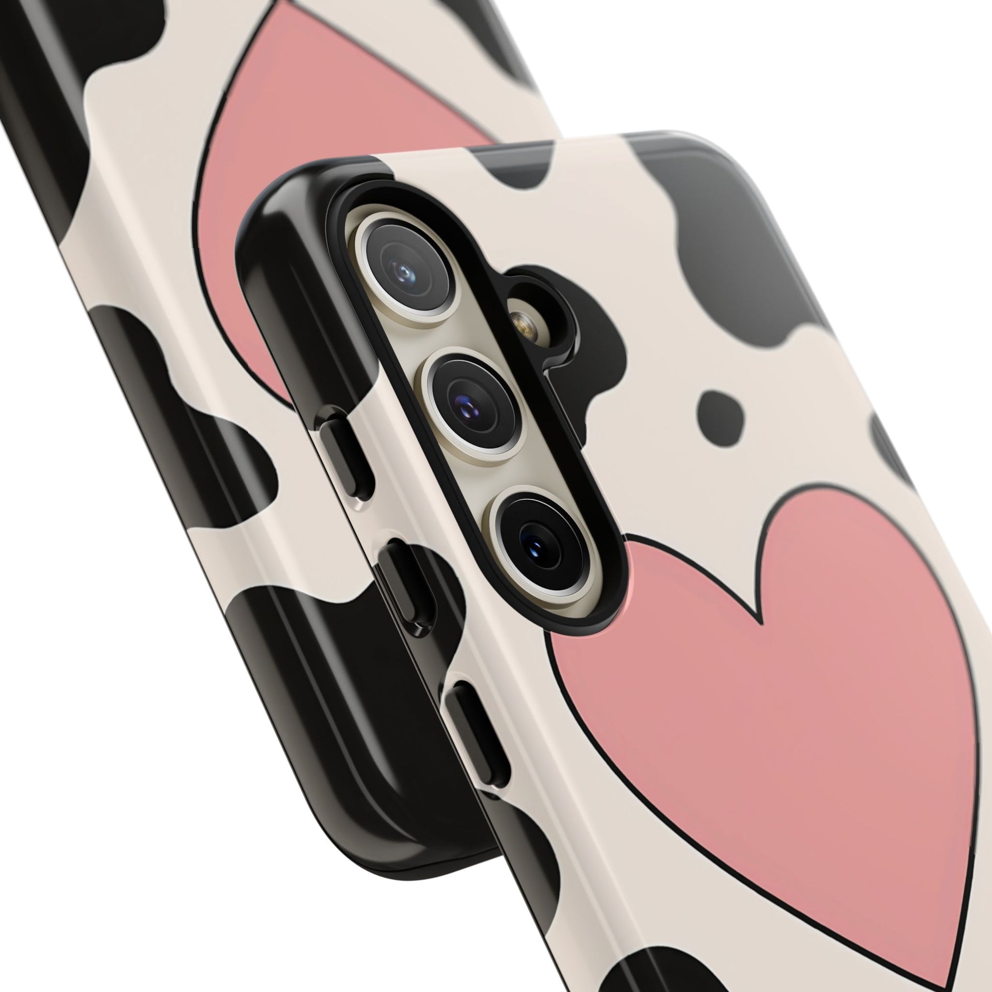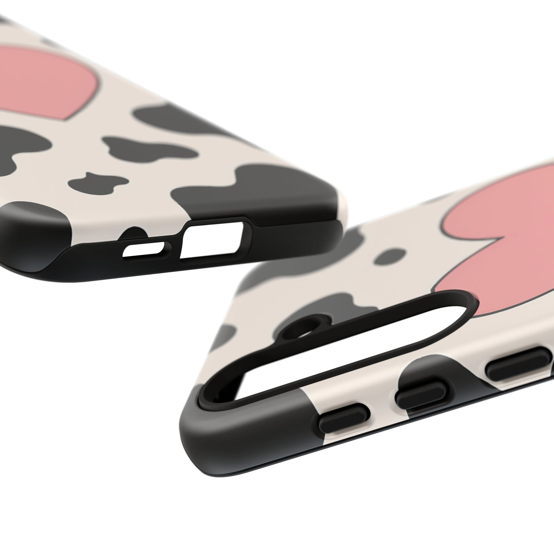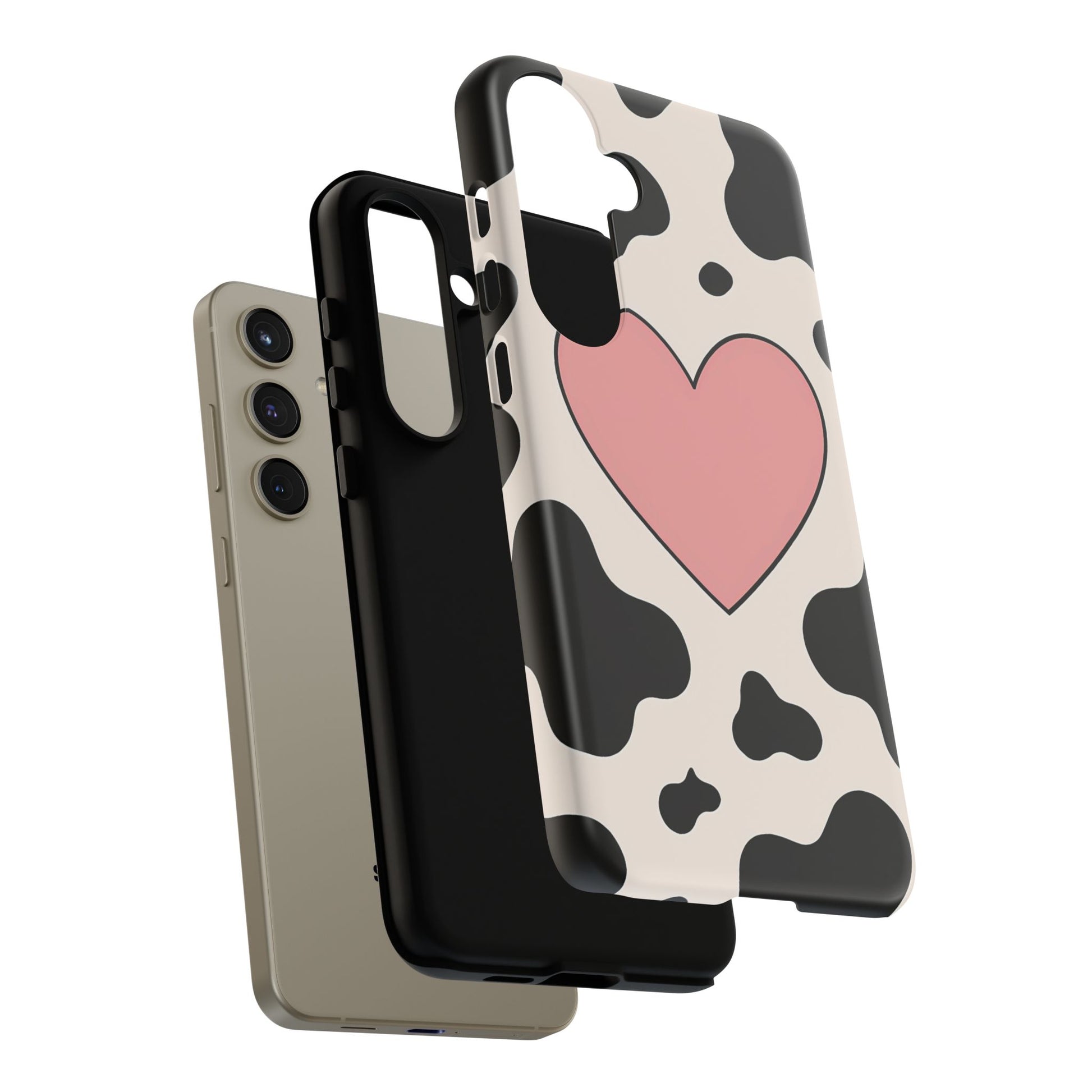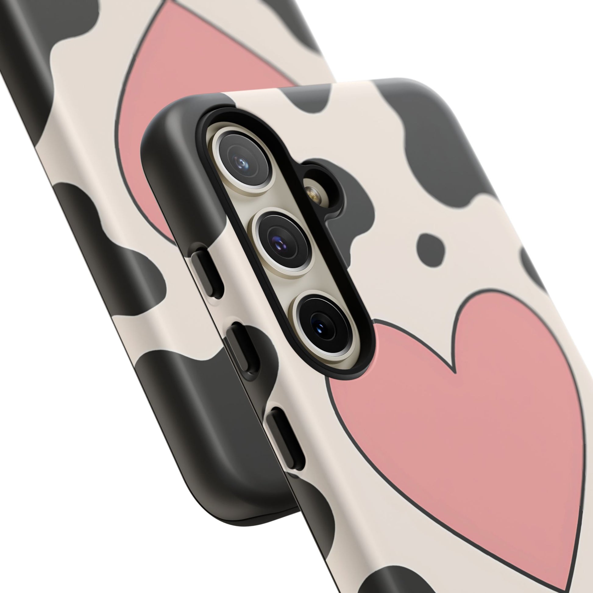 Cow Print Phone Case with Pink Heart – Bold & Cute Protective Cover