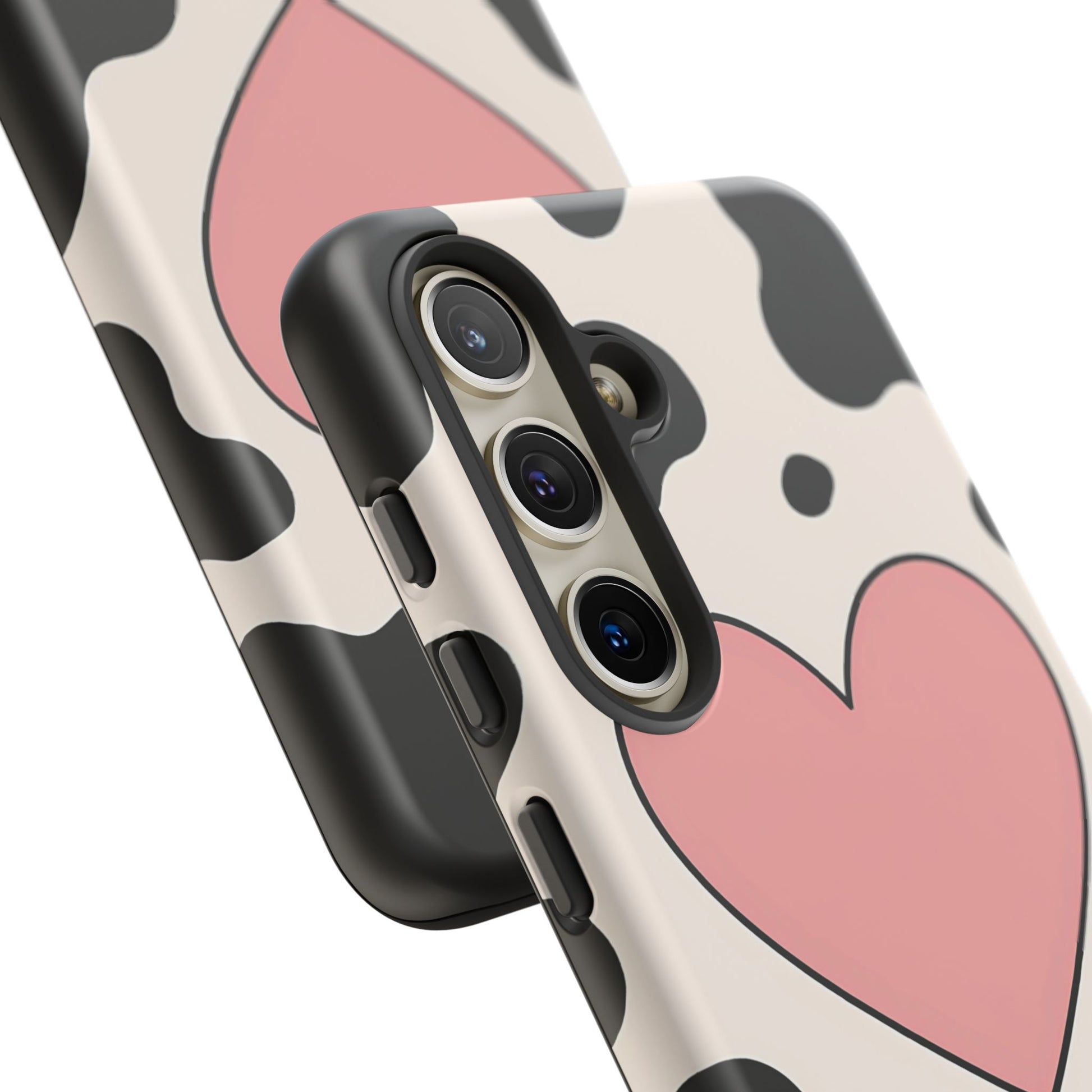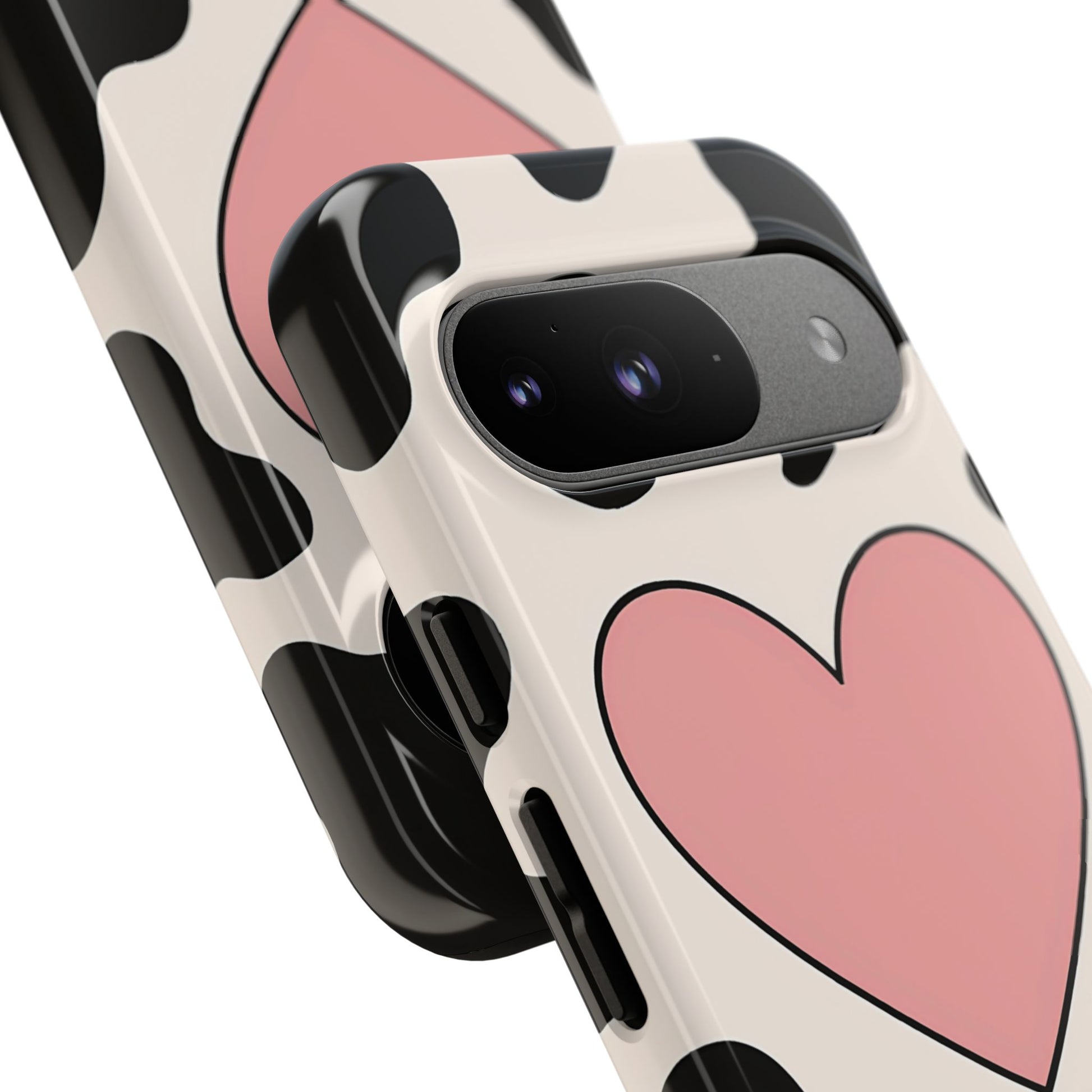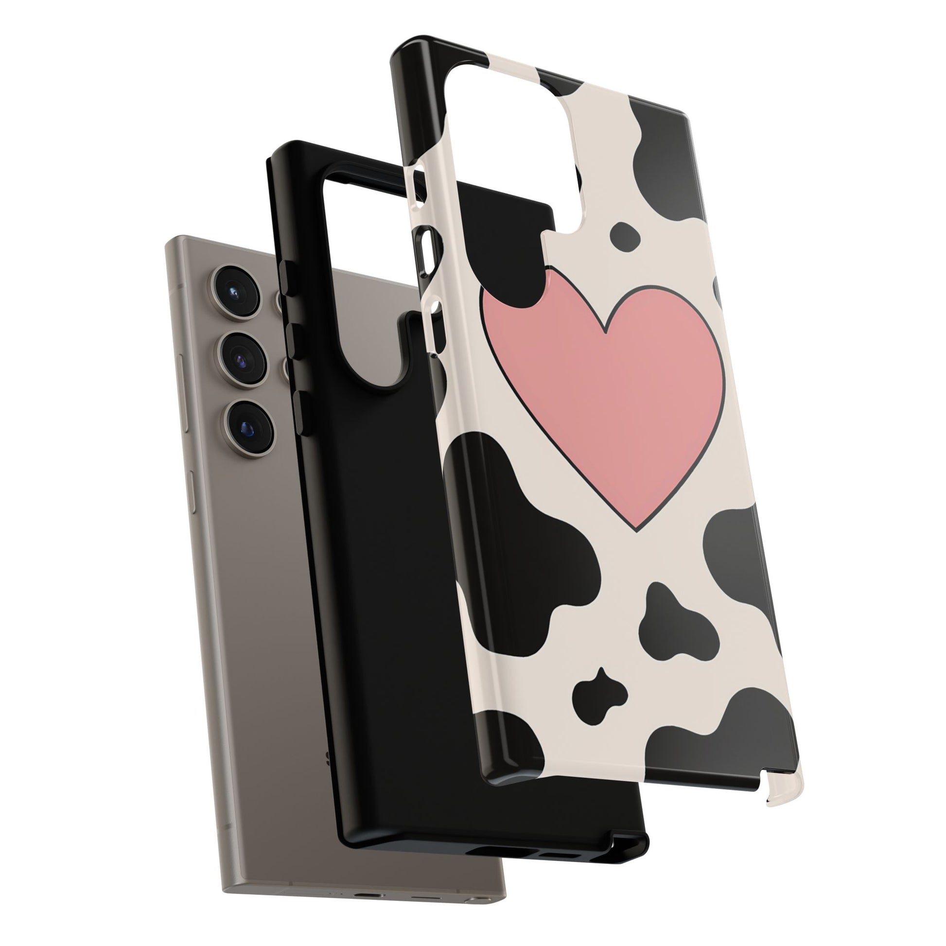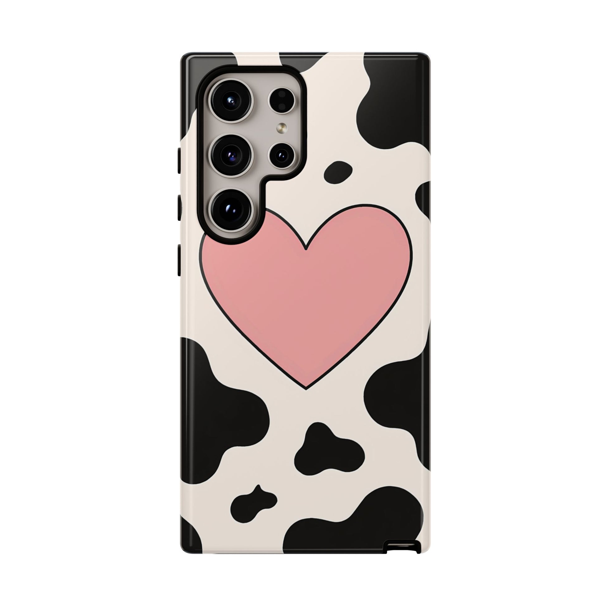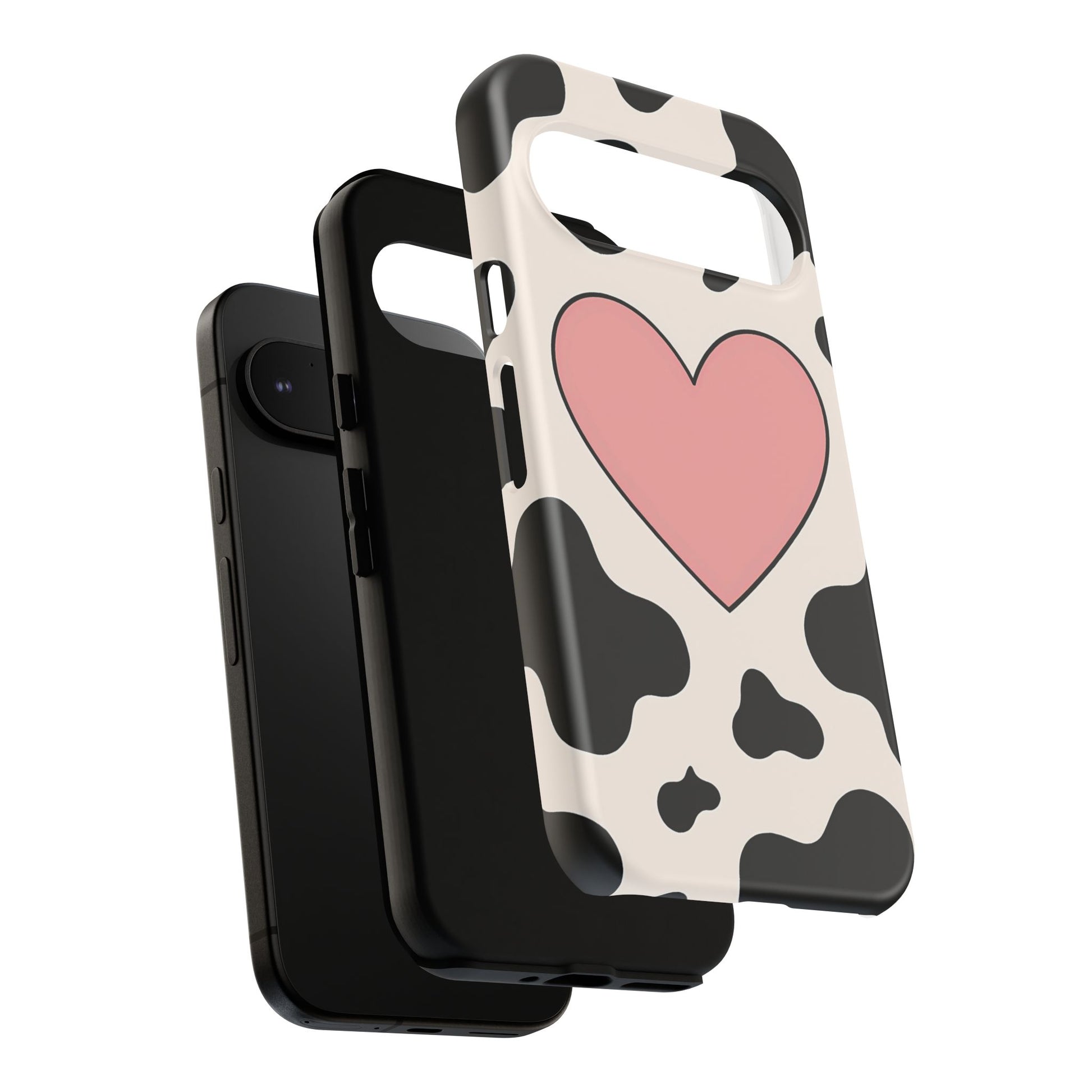 Cow Print Phone Case with Pink Heart – Bold & Cute Protective Cover