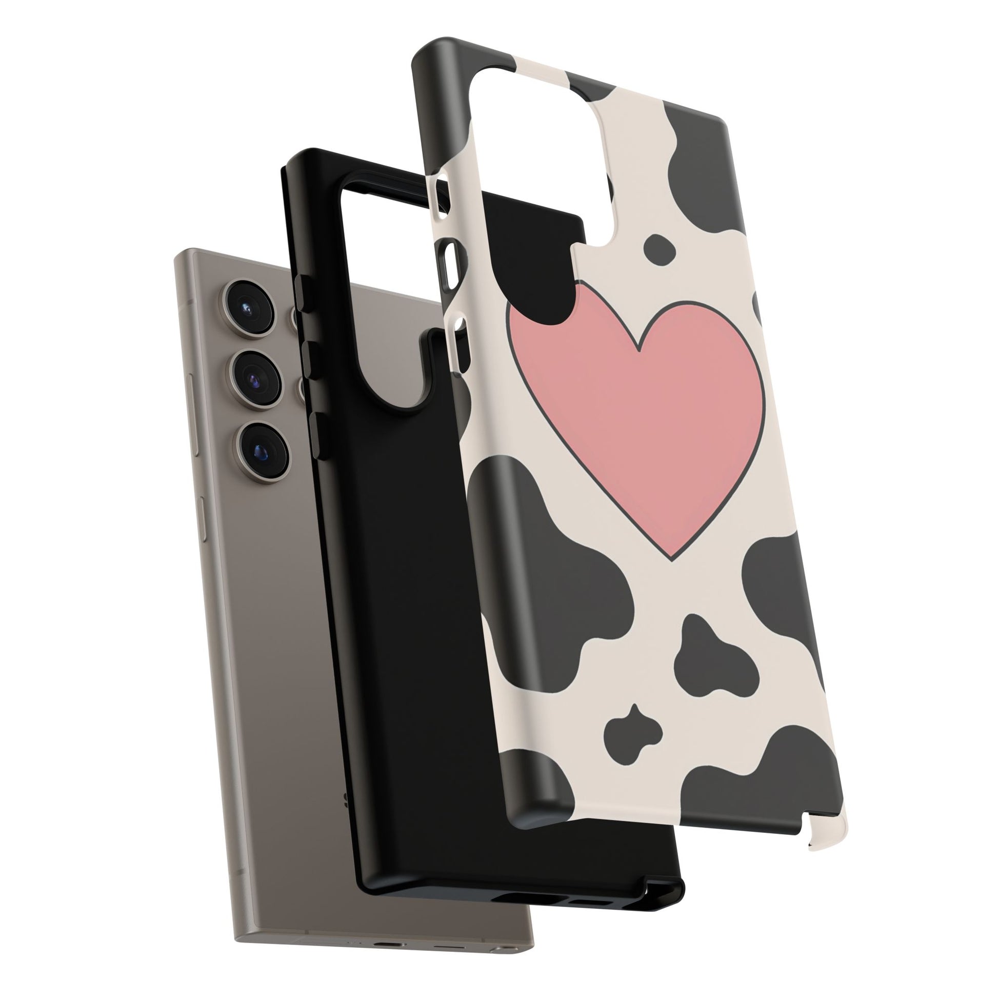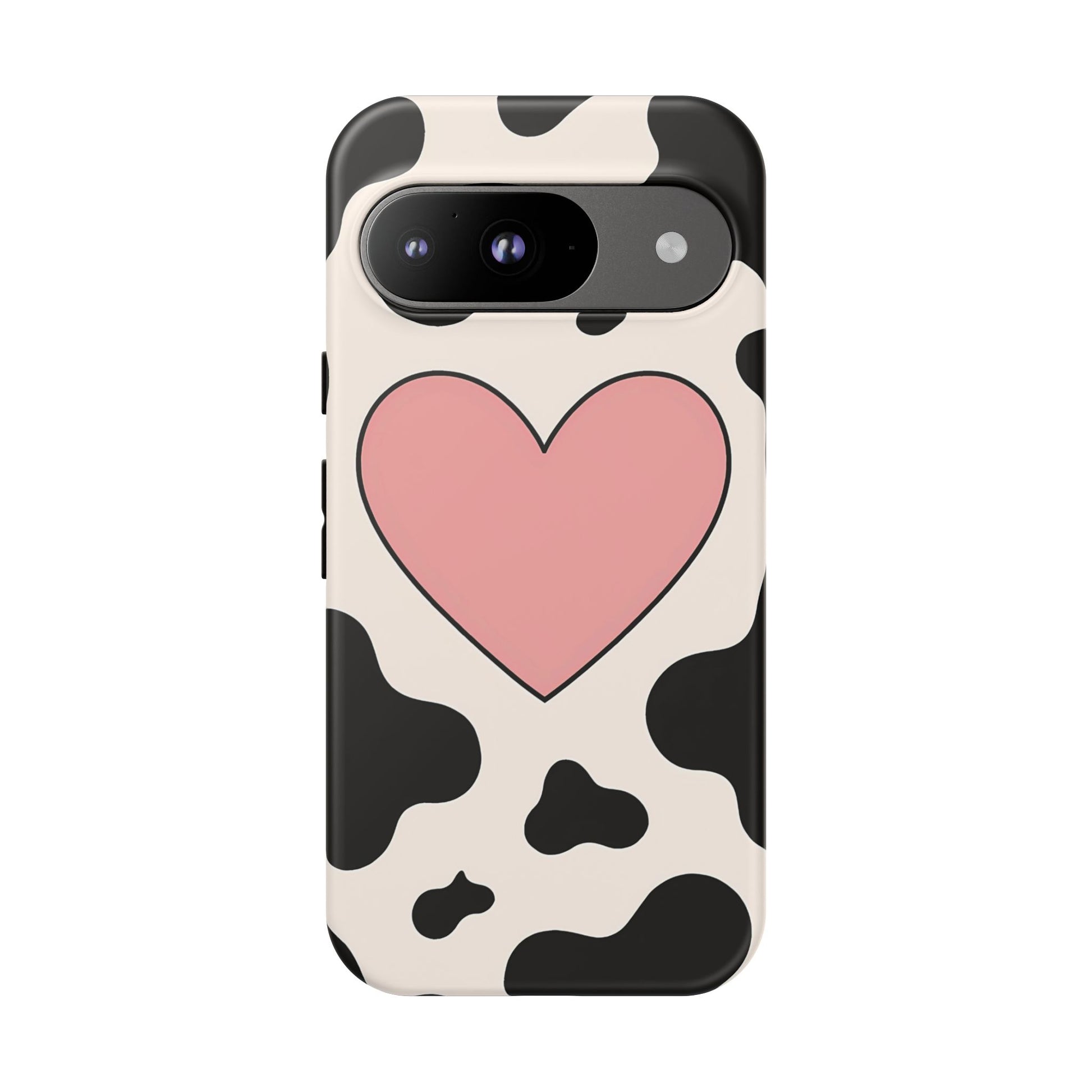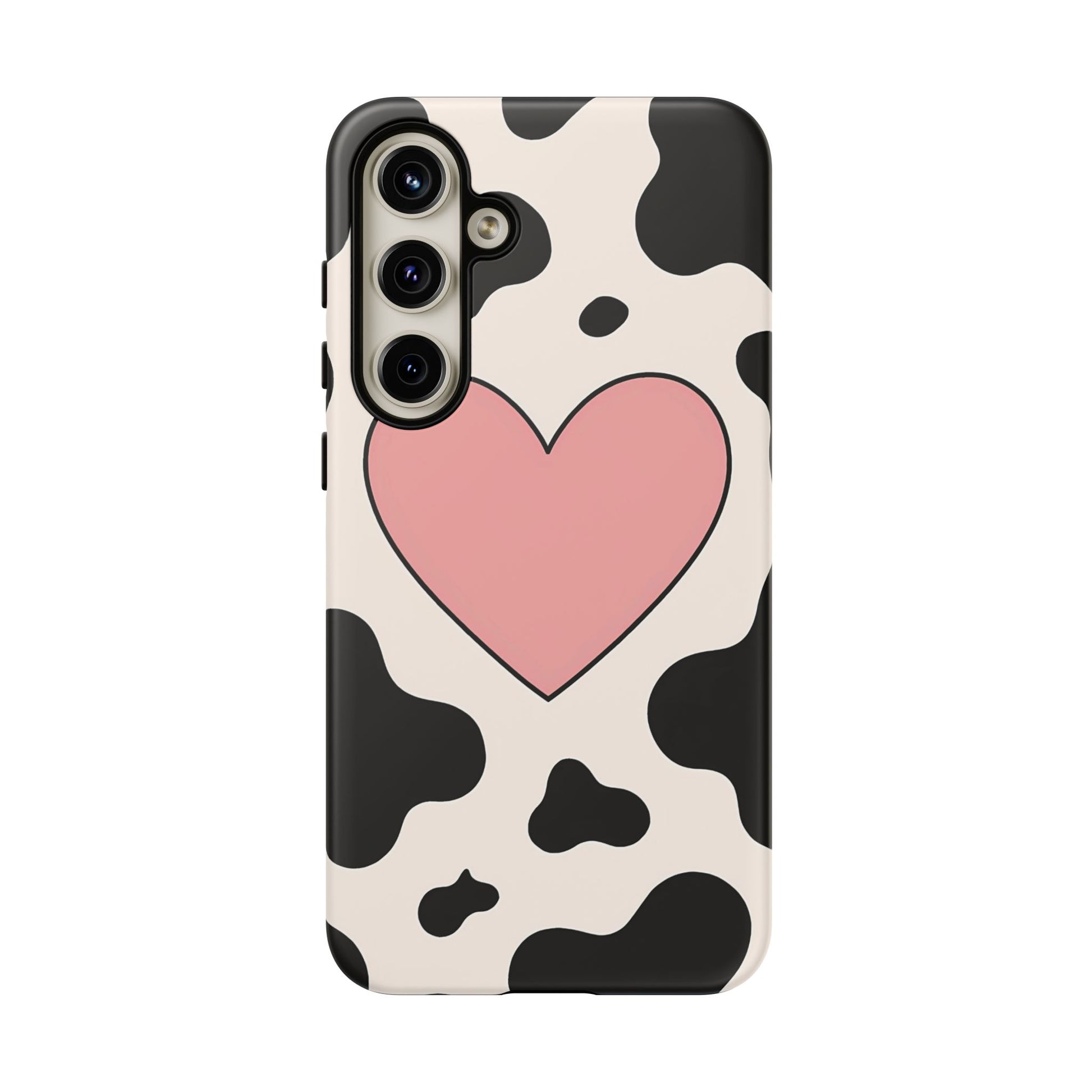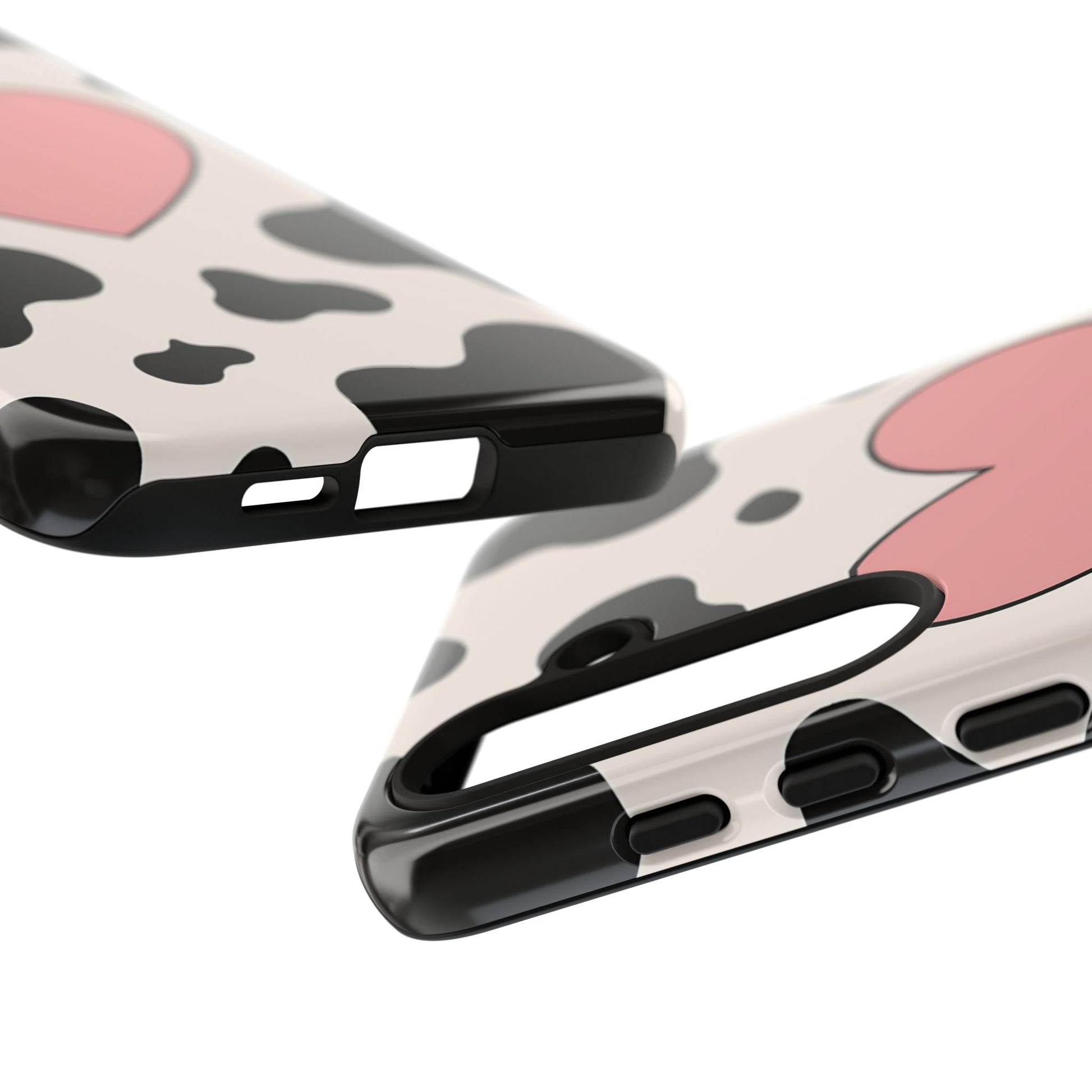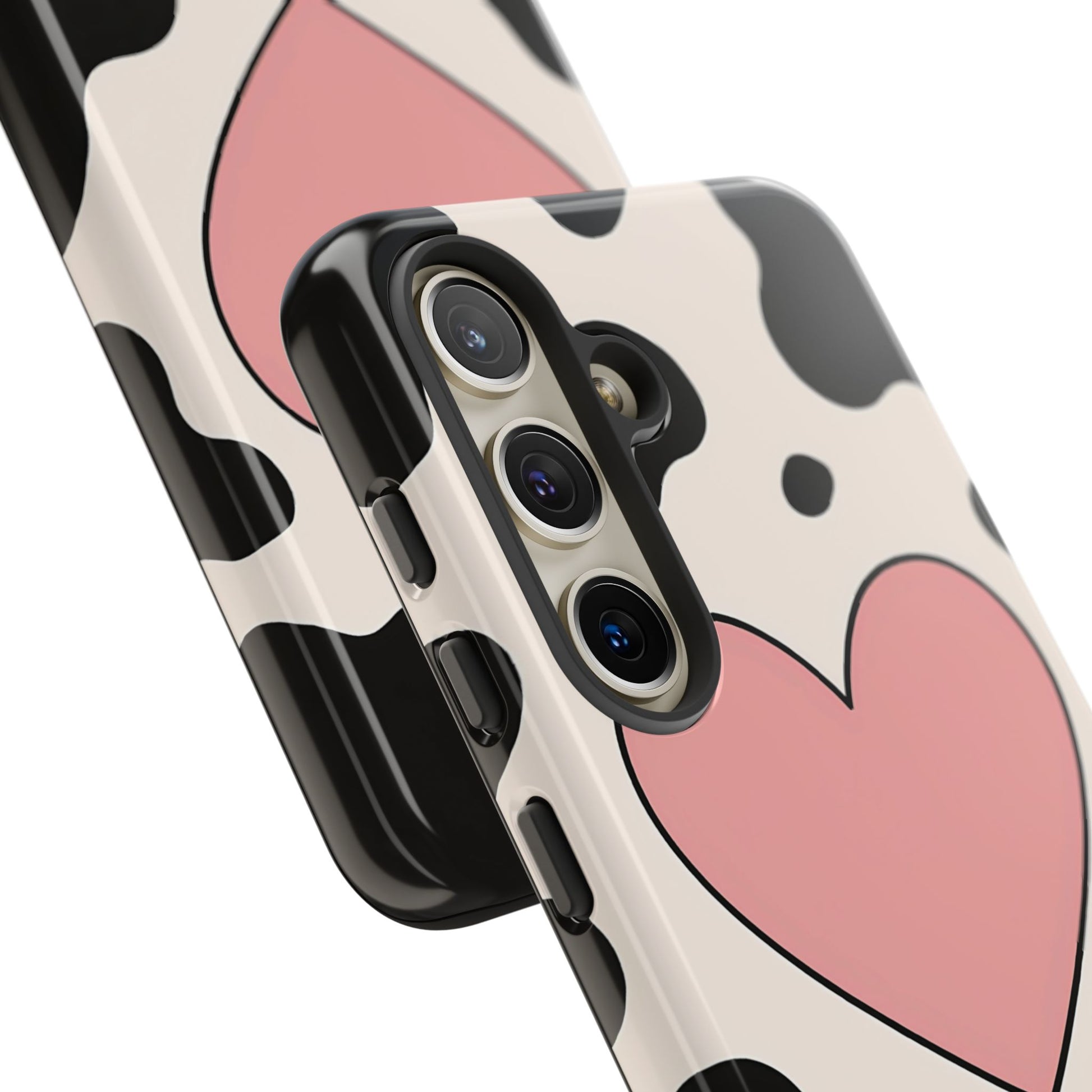 Cow Print Phone Case with Pink Heart – Bold & Cute Protective Cover