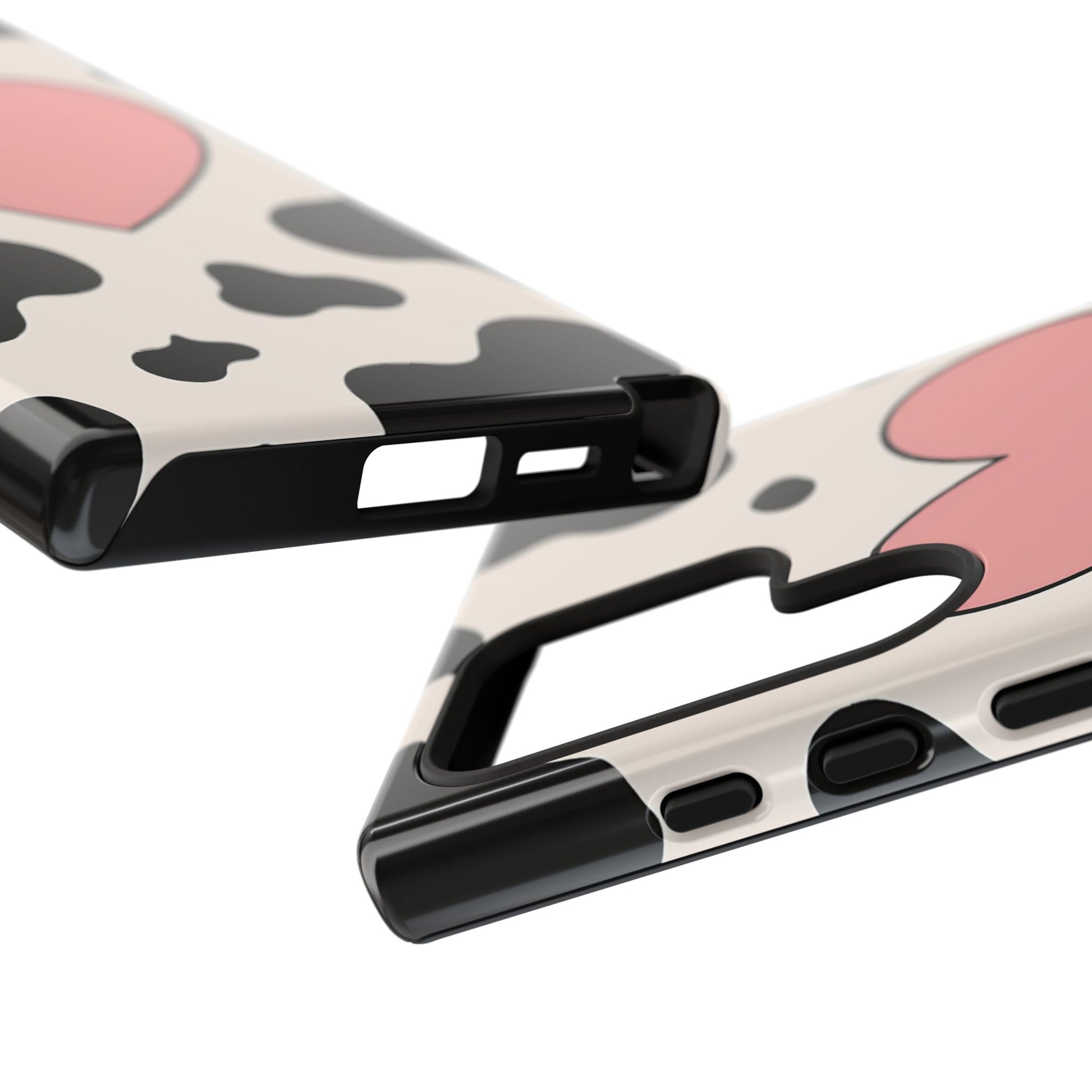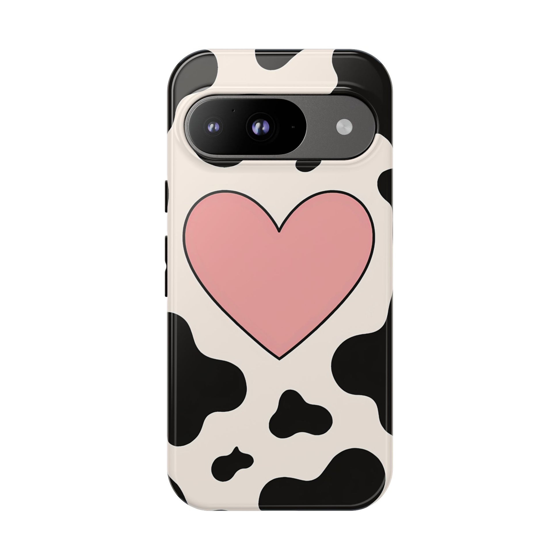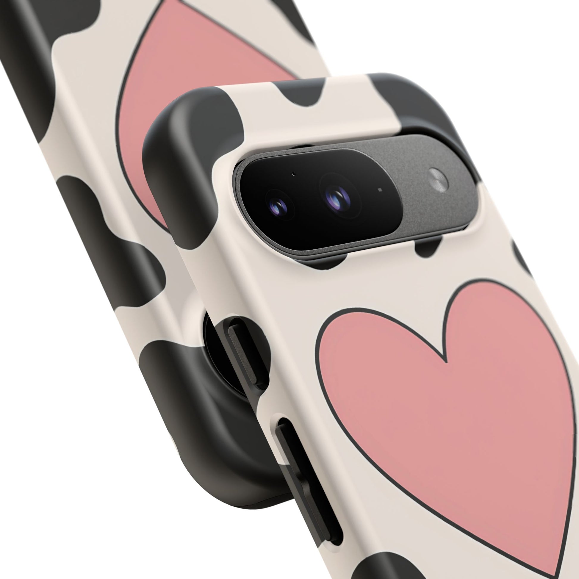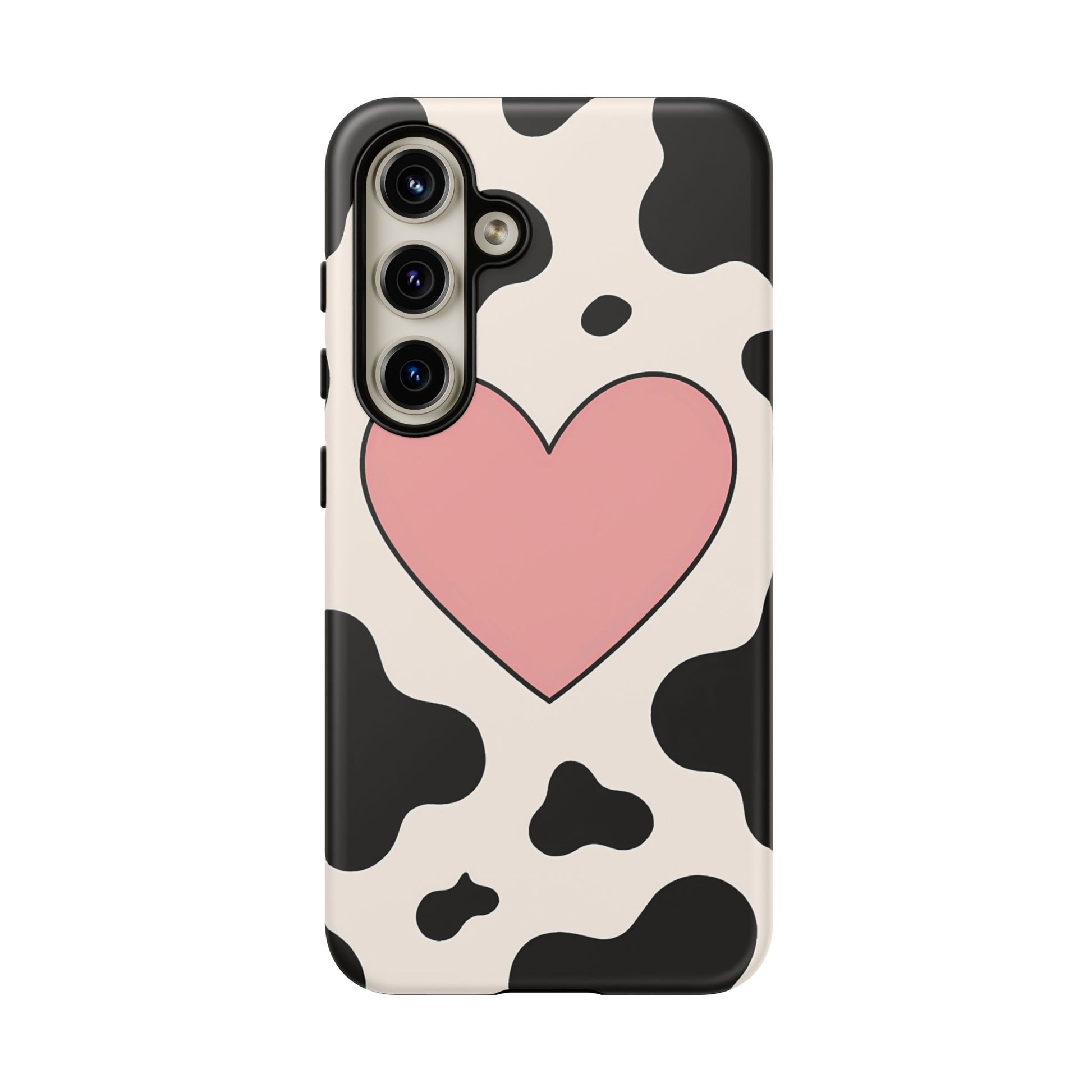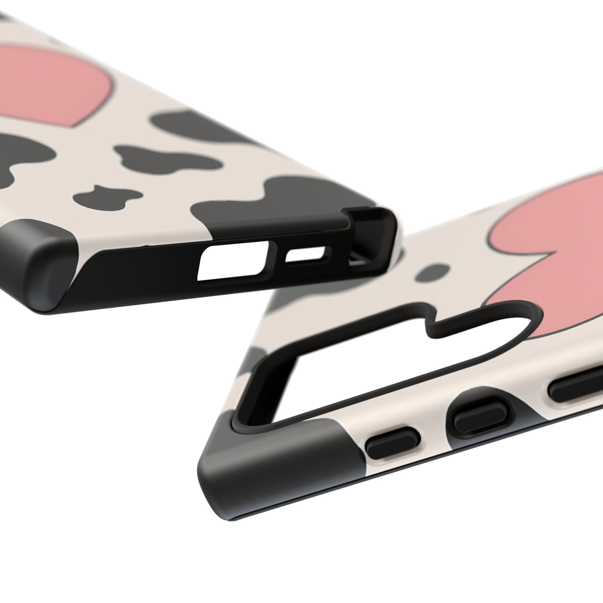 Cow Print Phone Case with Pink Heart – Bold & Cute Protective Cover