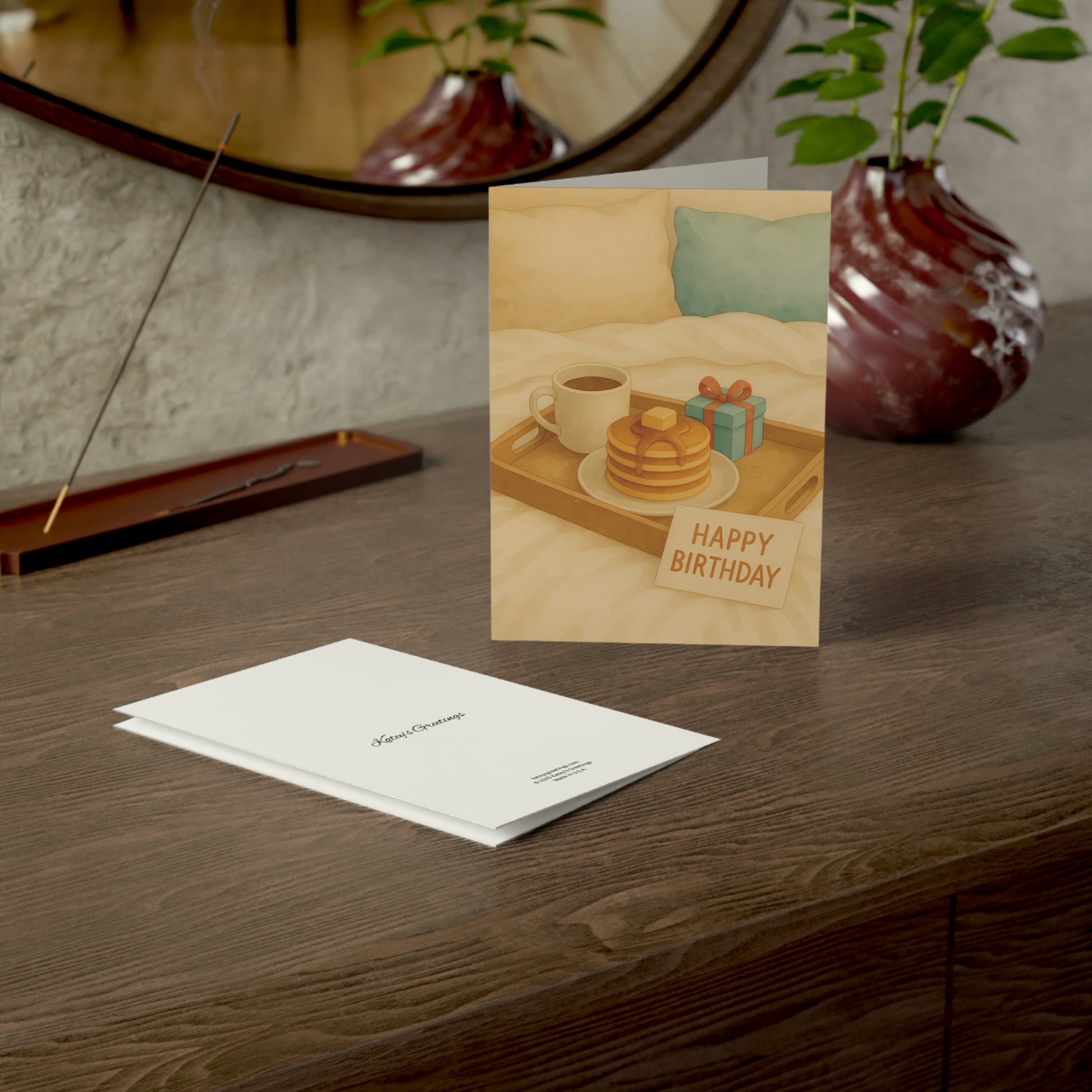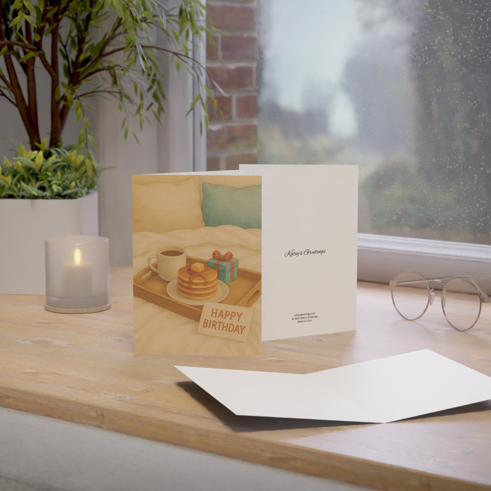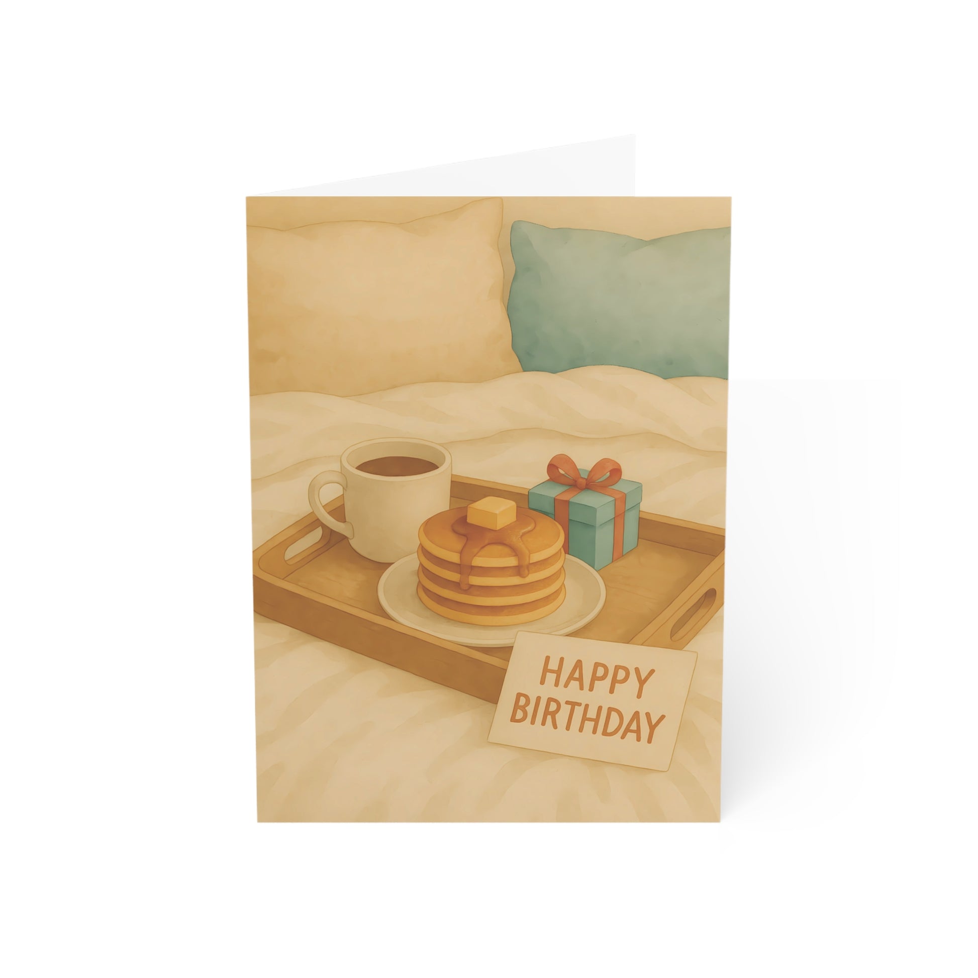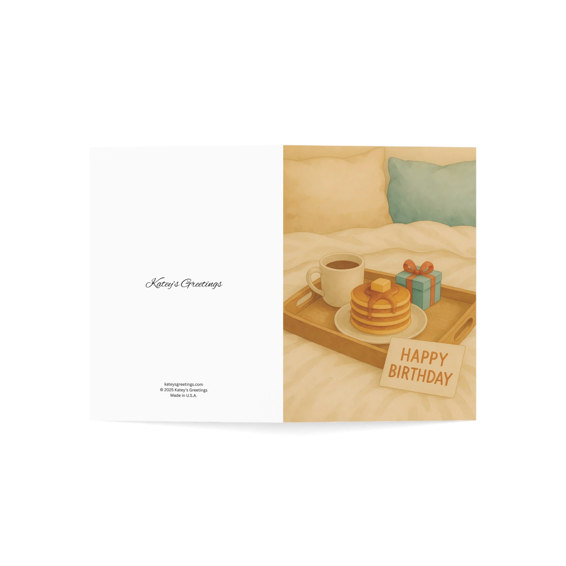 Cozy Breakfast in Bed Birthday Greeting Card – Premium 270gsm Paper, Includes Envelope