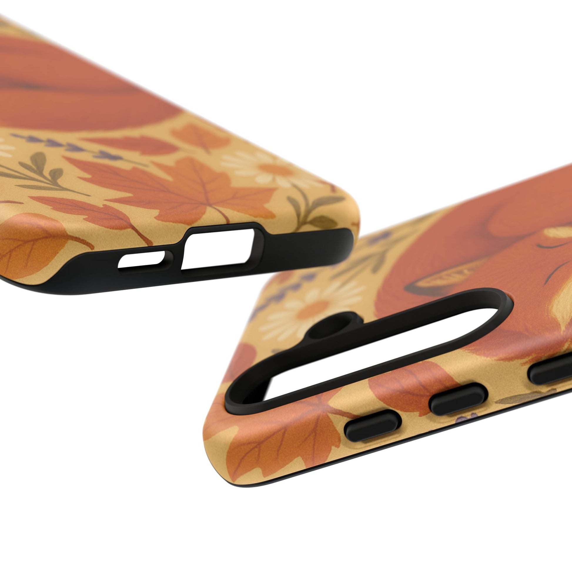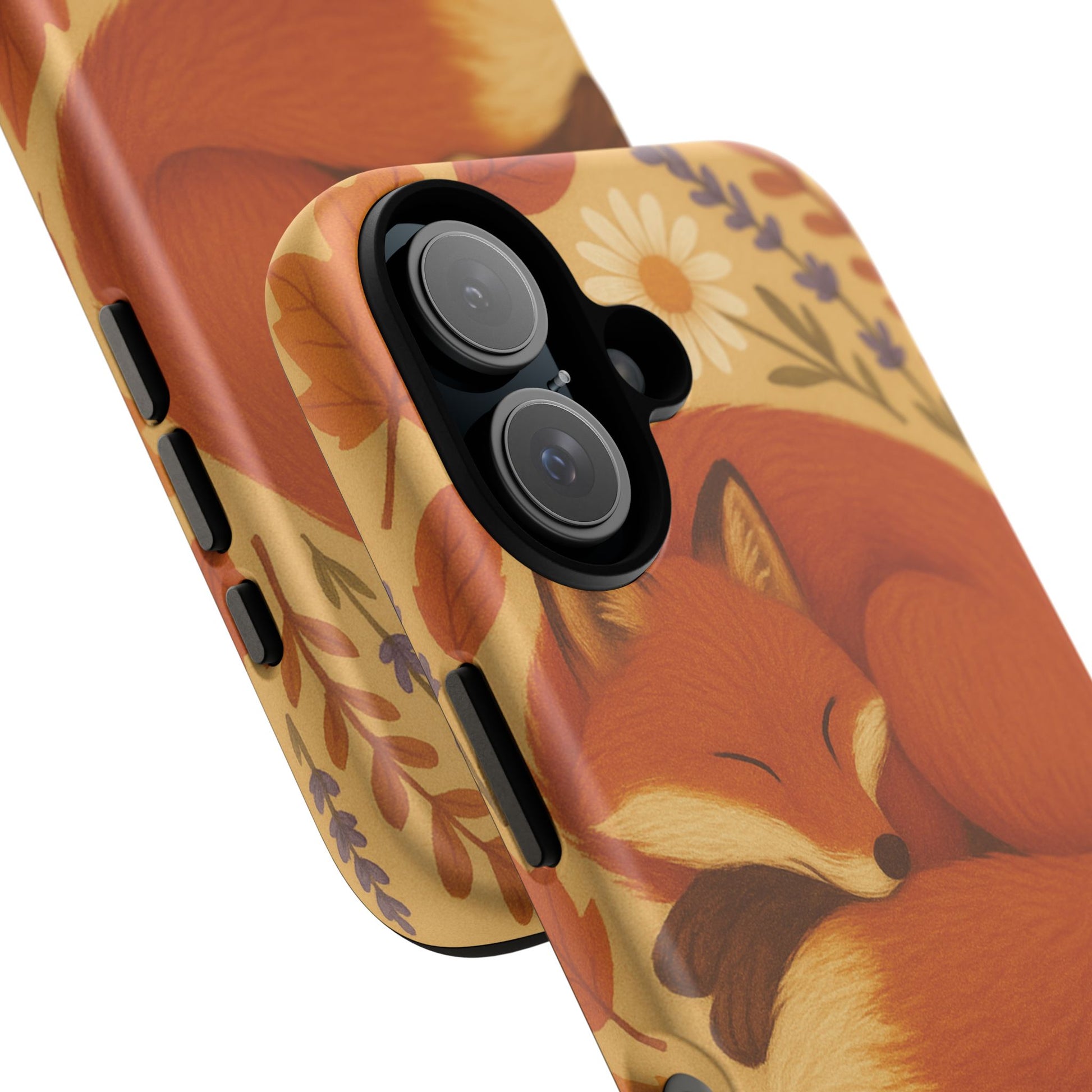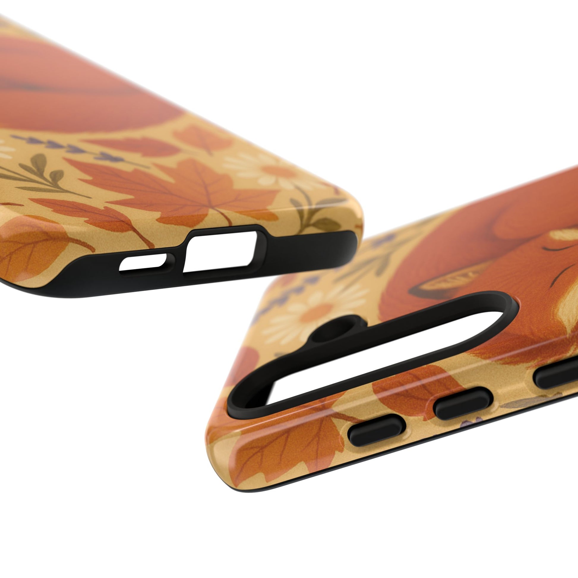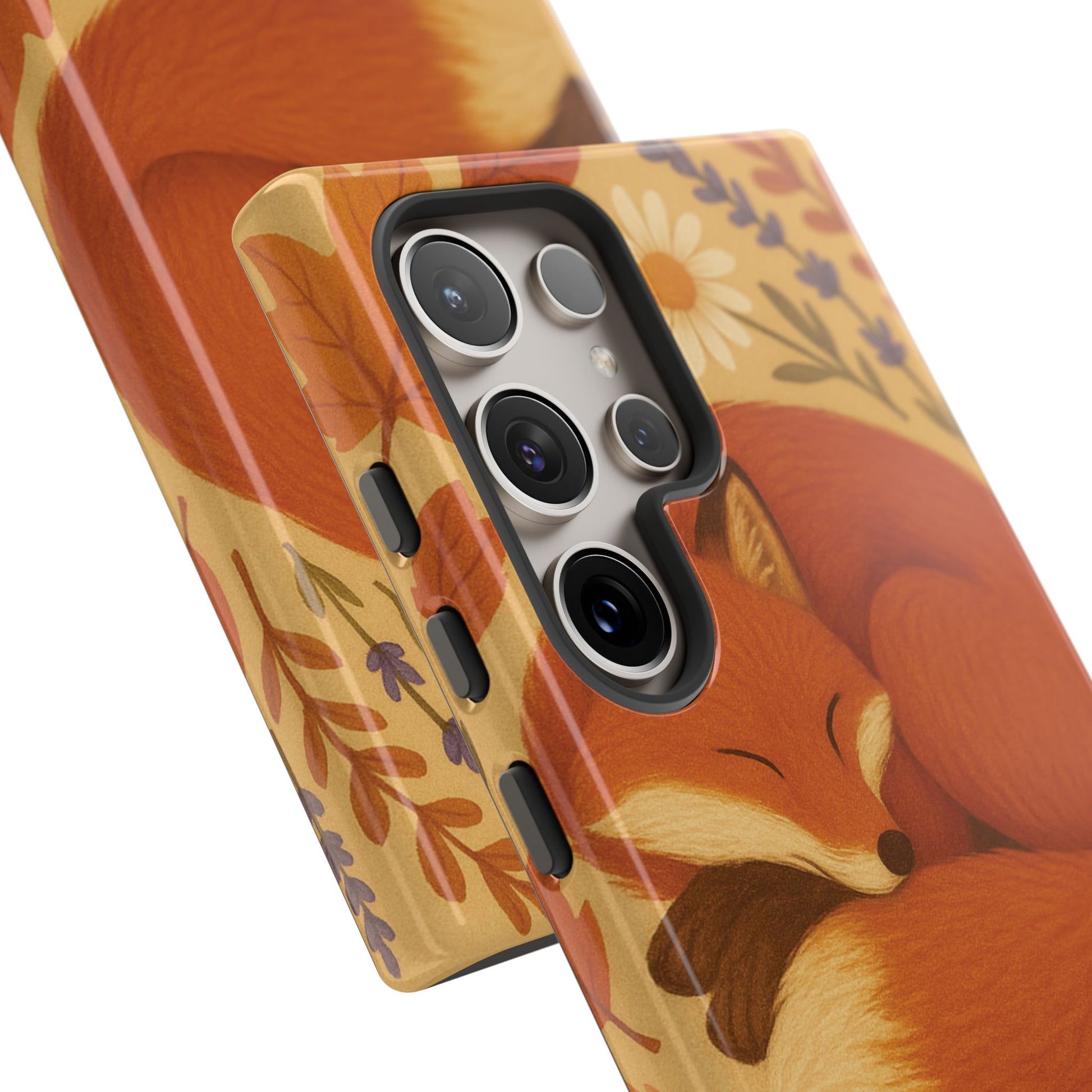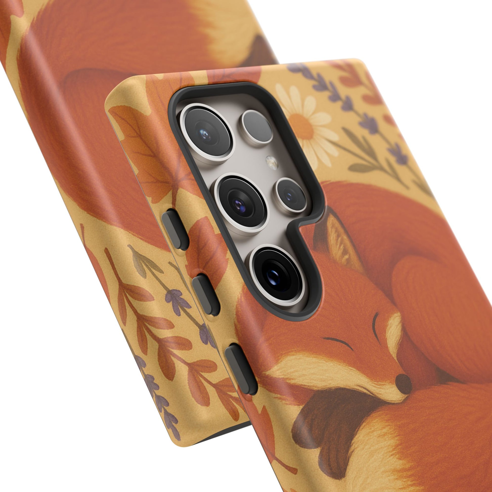 This durable phone case is adorned with a charming design featuring a serene fox nestled among fall leaves and daisies, inviting a warm and cozy vibe. It’s ideal for those who value both aesthetics and functionality in their accessories.
