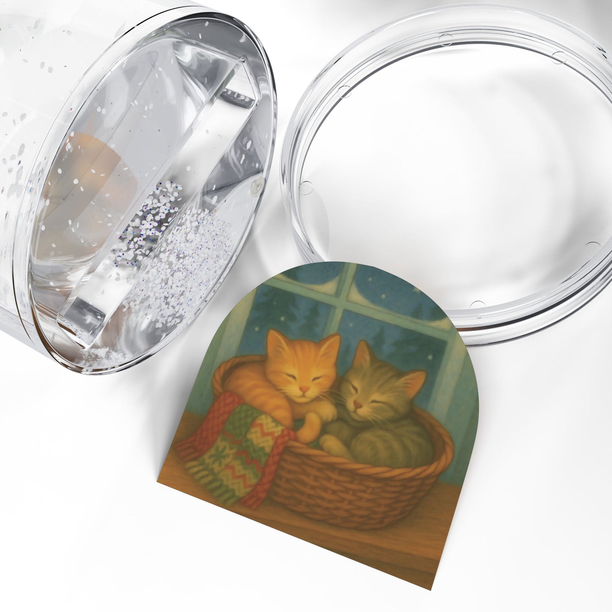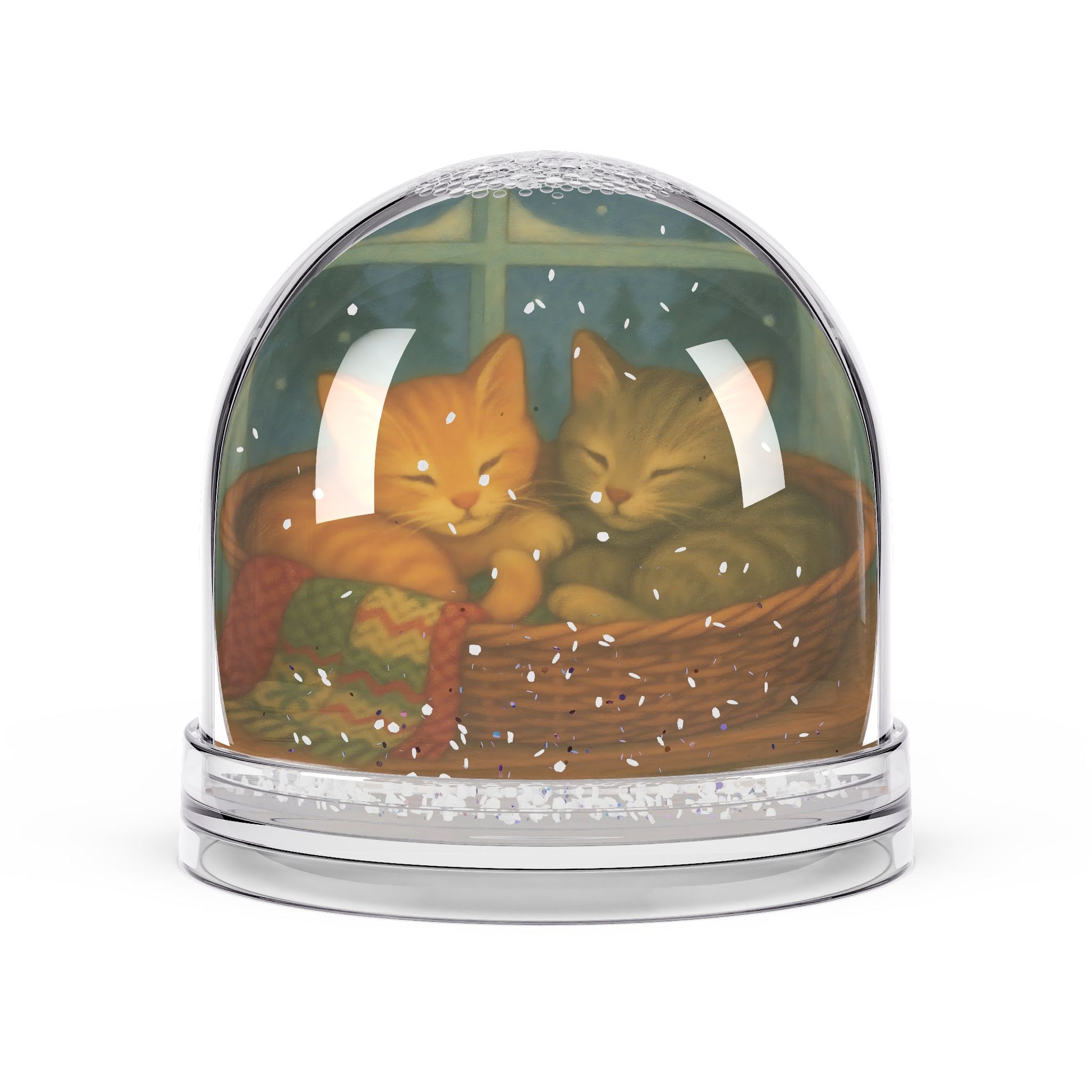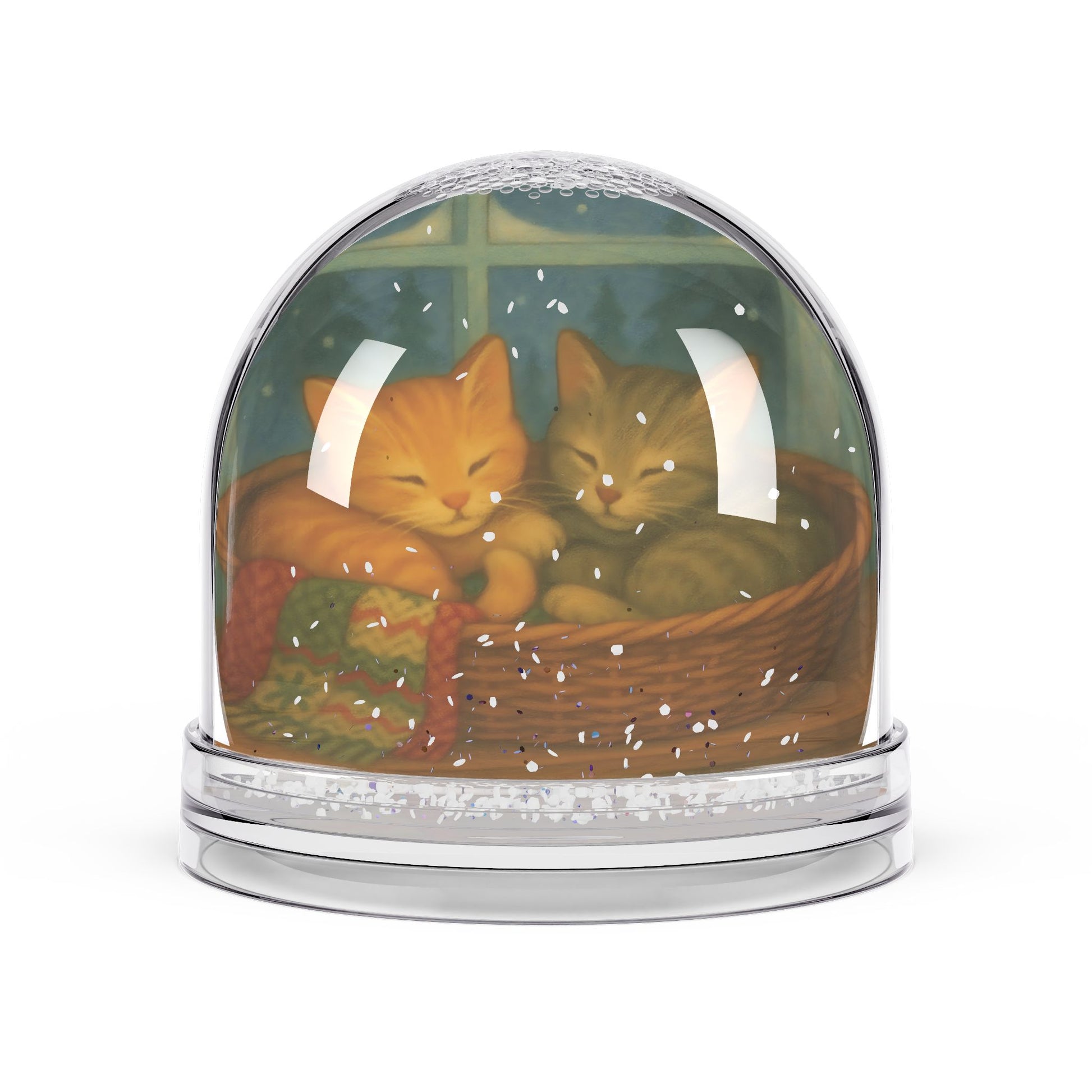 Cozy Kittens in Basket Snow Globe – Winter Cat Lovers Holiday Decor.