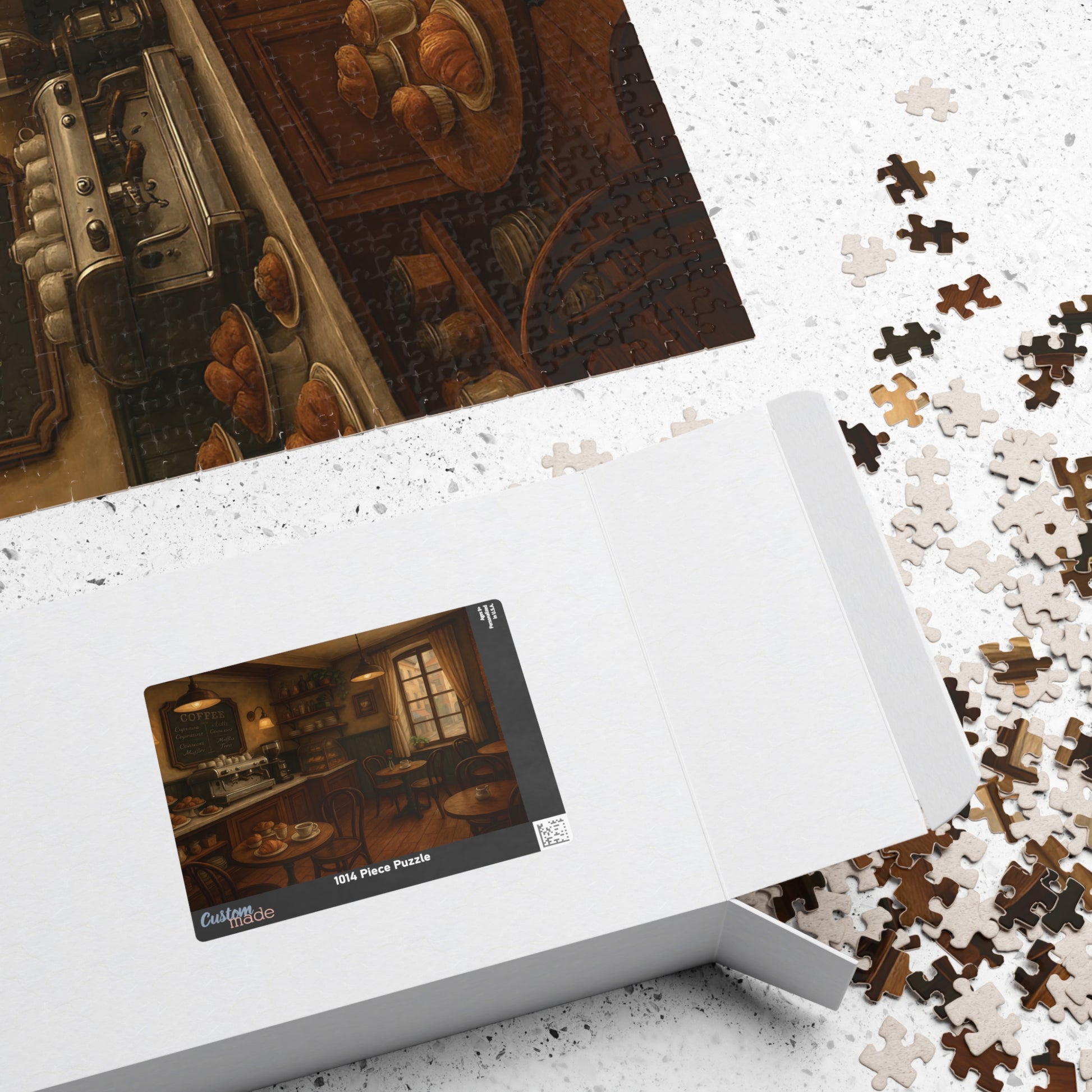 Featuring rich, inviting details like fresh croissants, steaming coffee, and vintage décor, this puzzle captures the timeless atmosphere of a cozy morning in the city.
