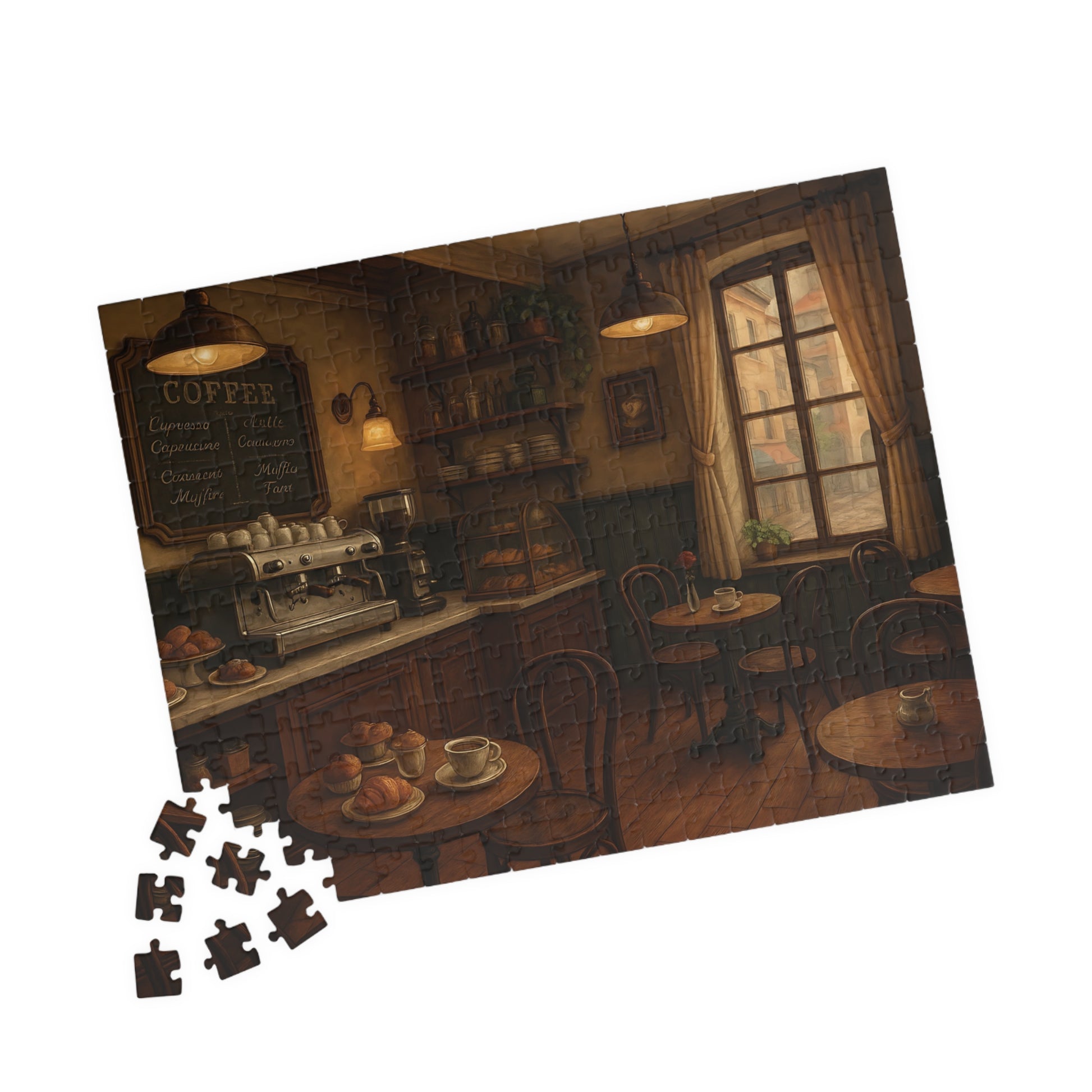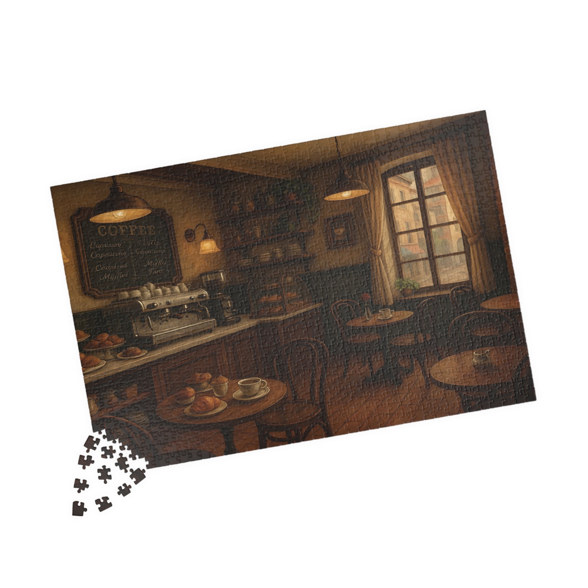 Perfect for coffee lovers, travel enthusiasts, or anyone who enjoys a relaxing puzzle night, this design transports you straight to a dreamy café corner.