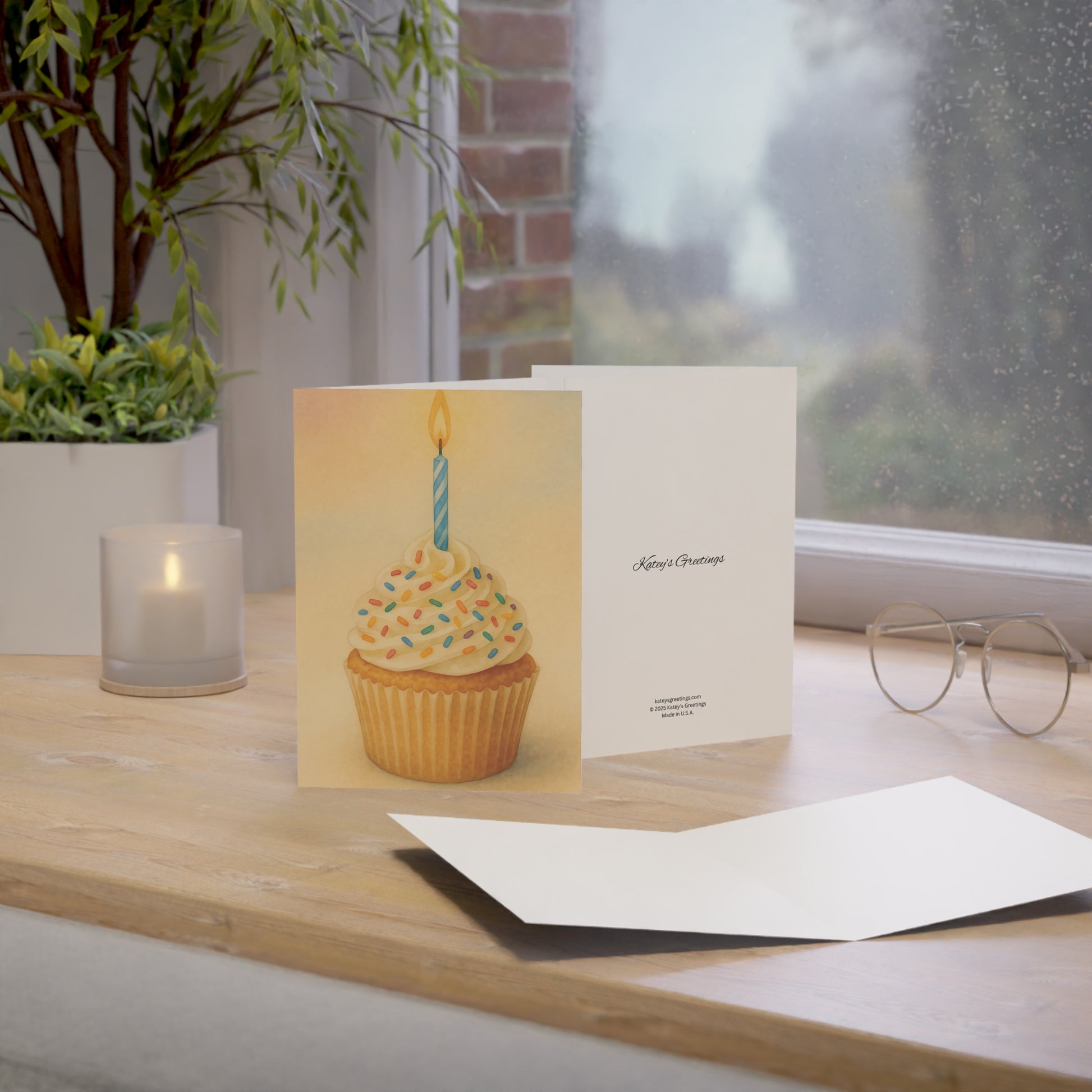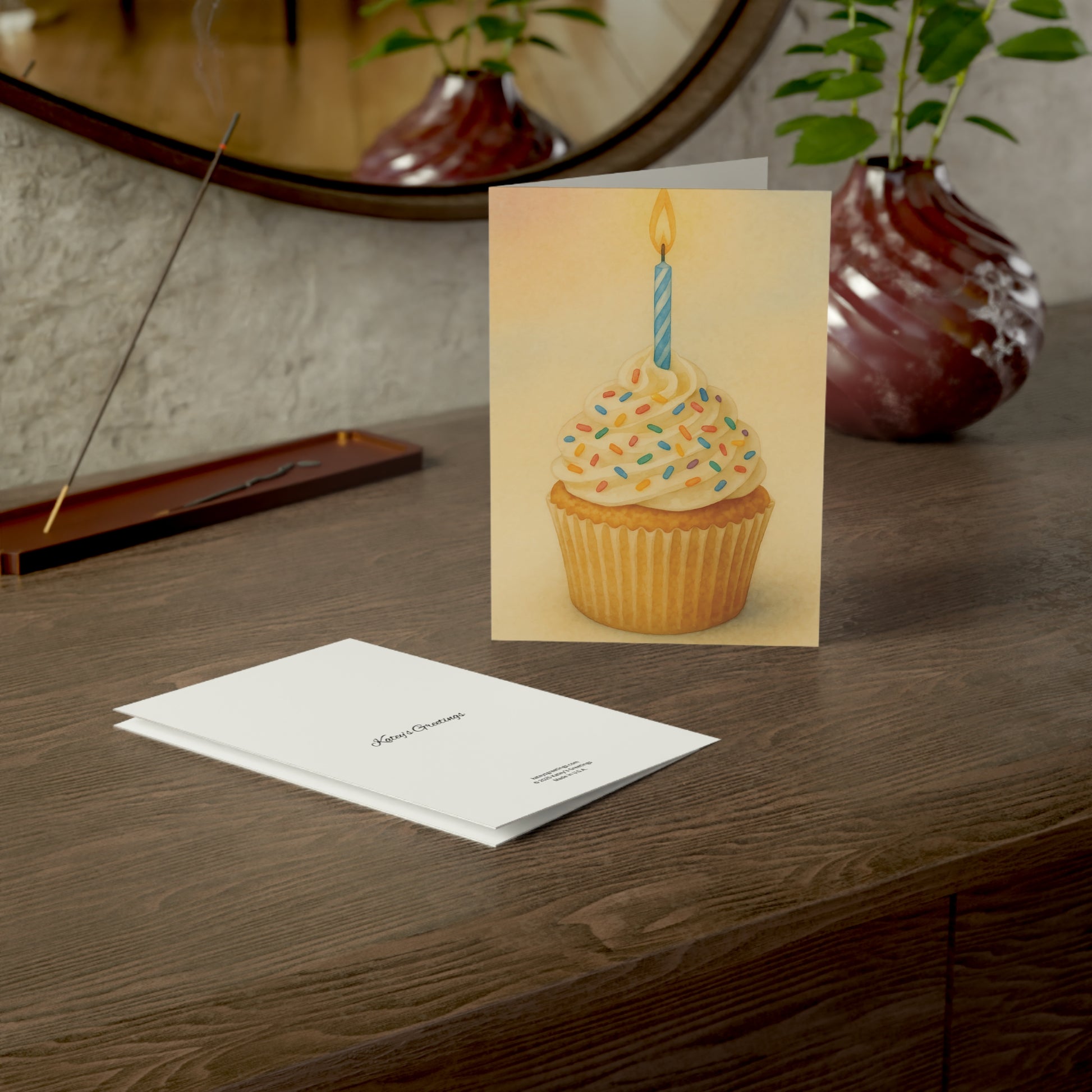 Cupcake Celebration Birthday Greeting Card – Premium 270gsm Paper, Includes Envelope.