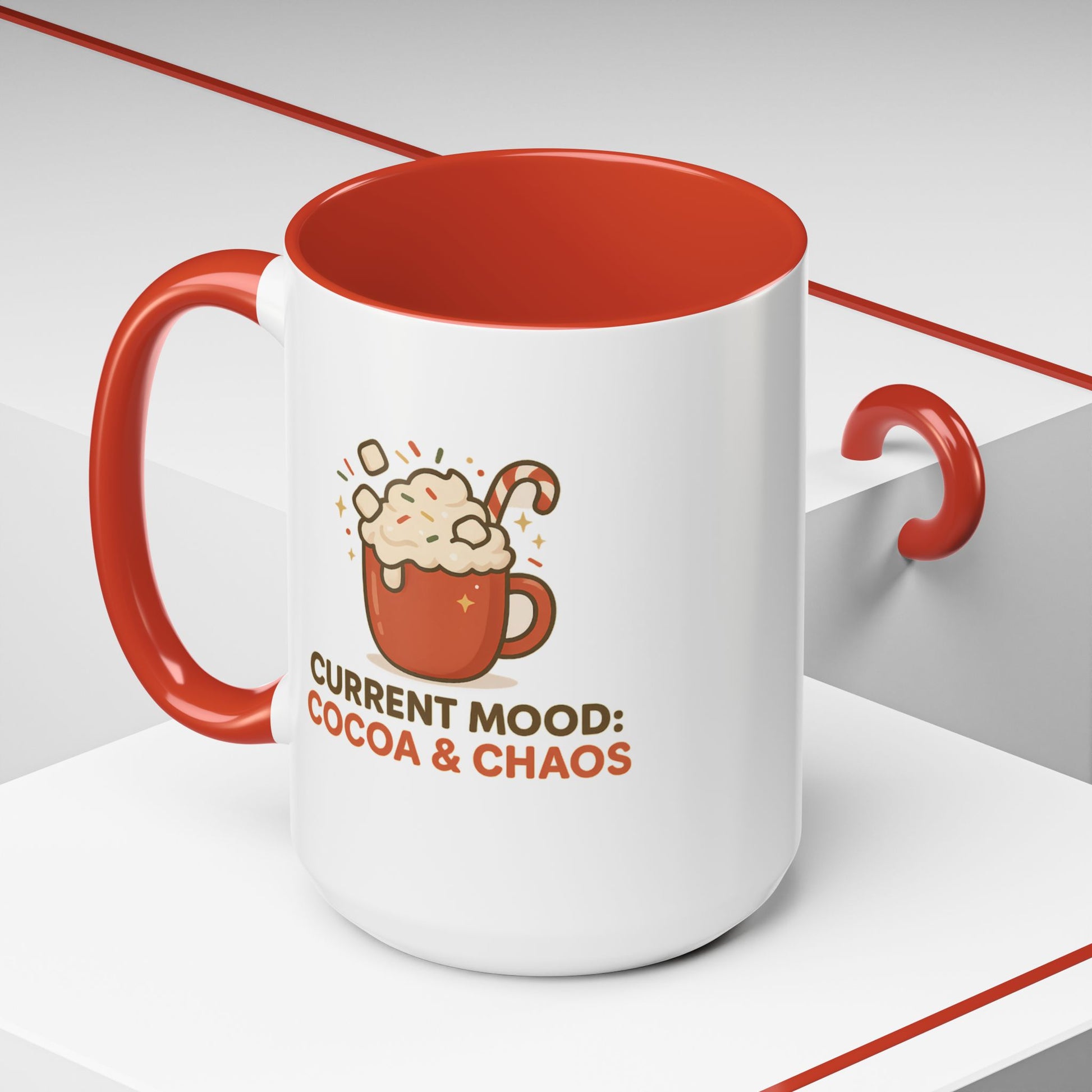 Current Mood: Cocoa & Chaos Holiday Mug – Festive Hot Cocoa Coffee Cup, 11oz & 15oz Ceramic