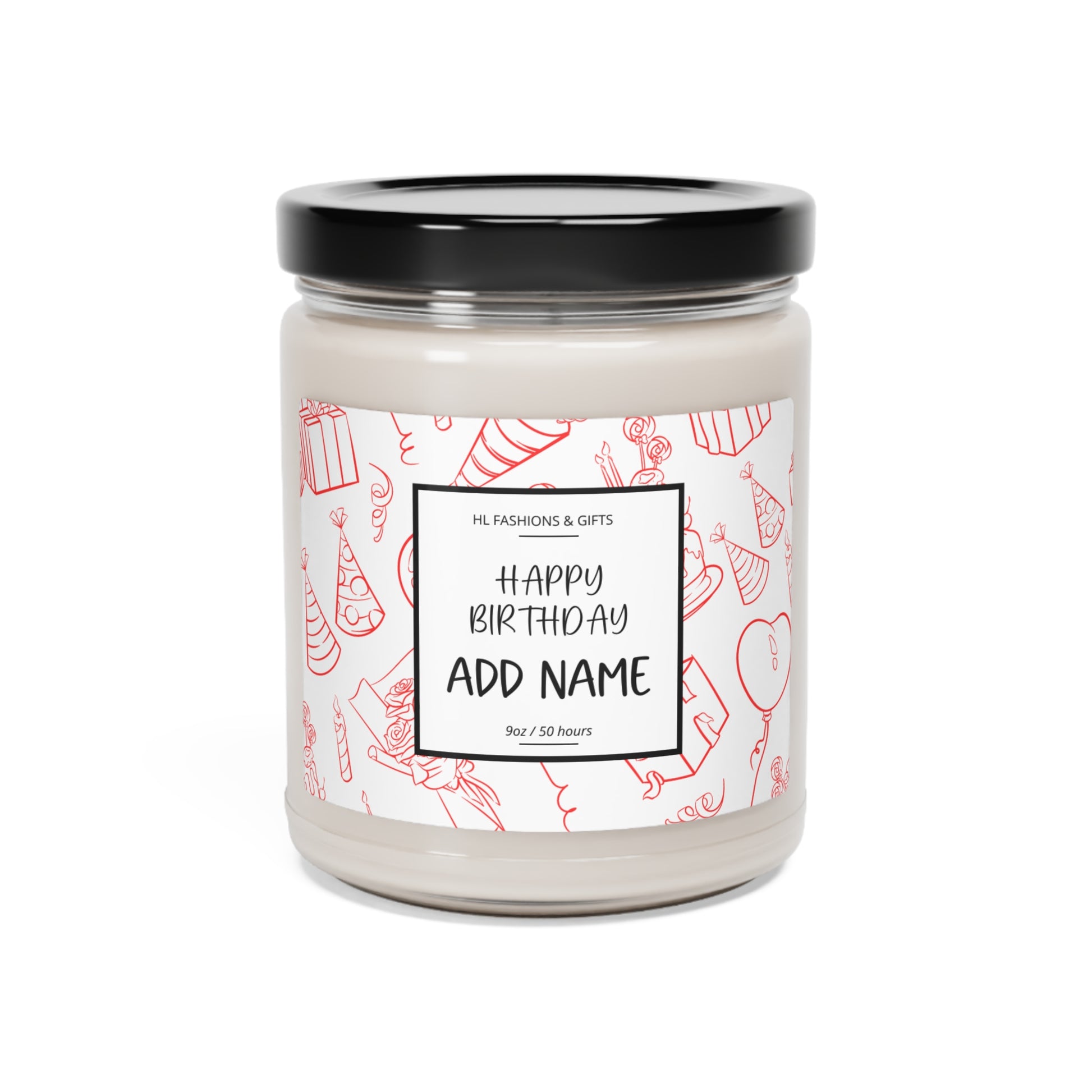 Custom Happy Birthday Soy Candle - Bright Red Label