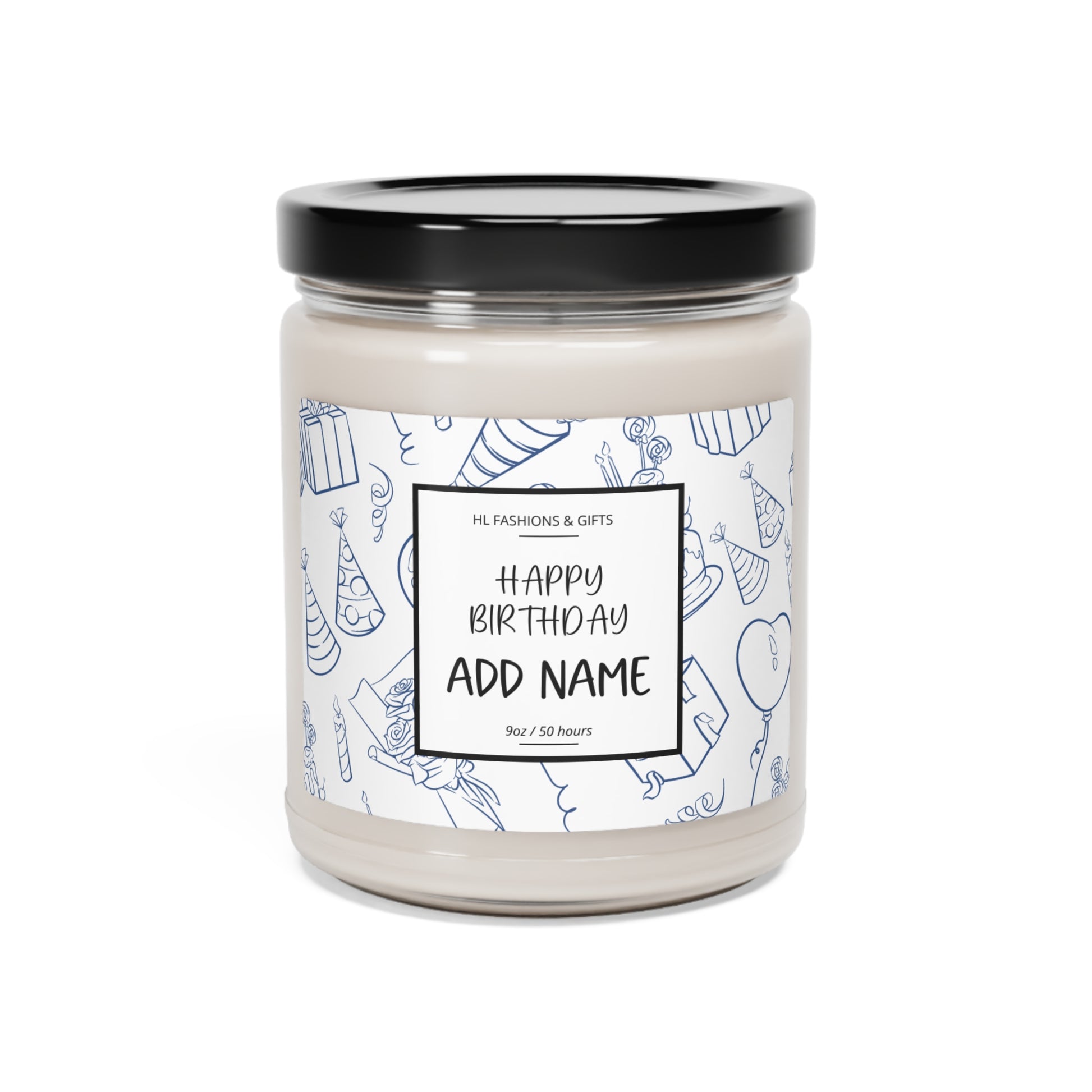 Custom Happy Birthday Soy Candle - Classic Blue Label.