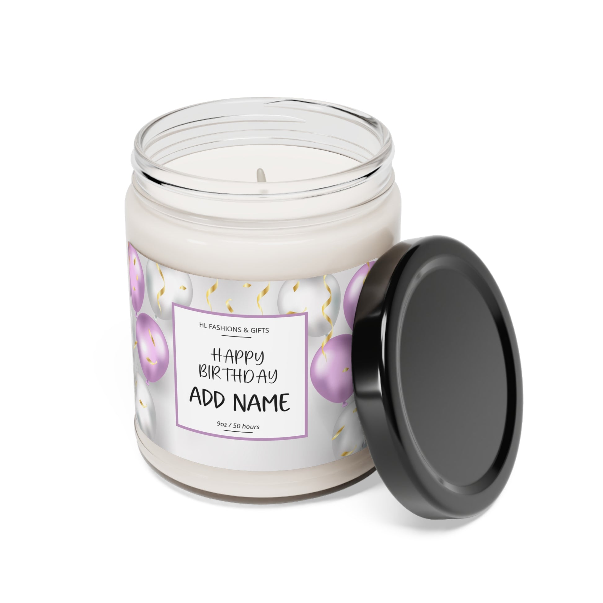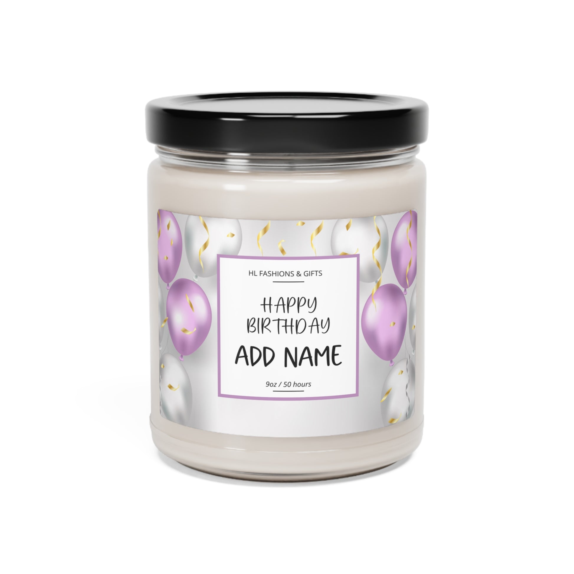 Custom Happy Birthday Soy Candle - Purple Balloons.