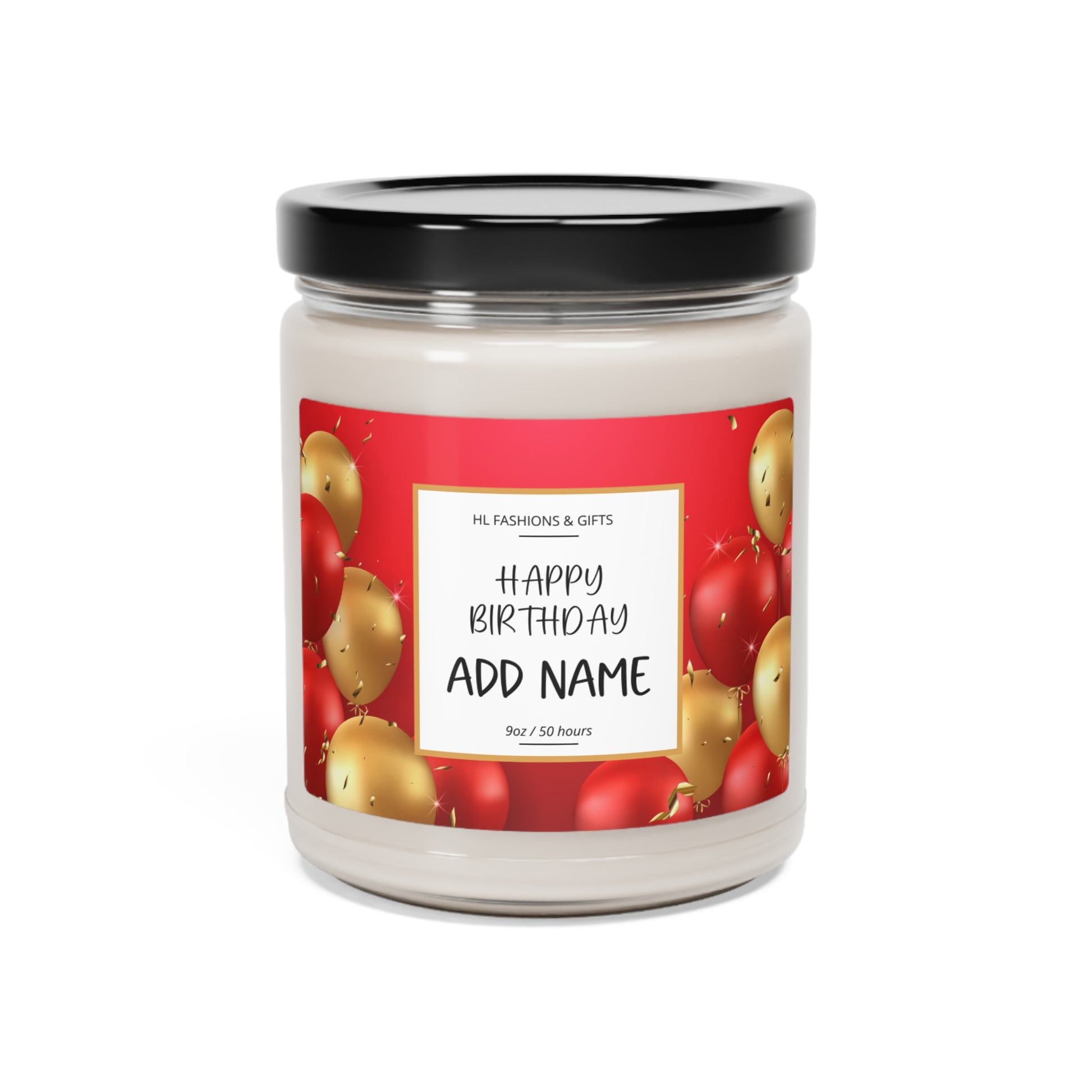 Custom Happy Birthday Soy Candle - Red Balloons.