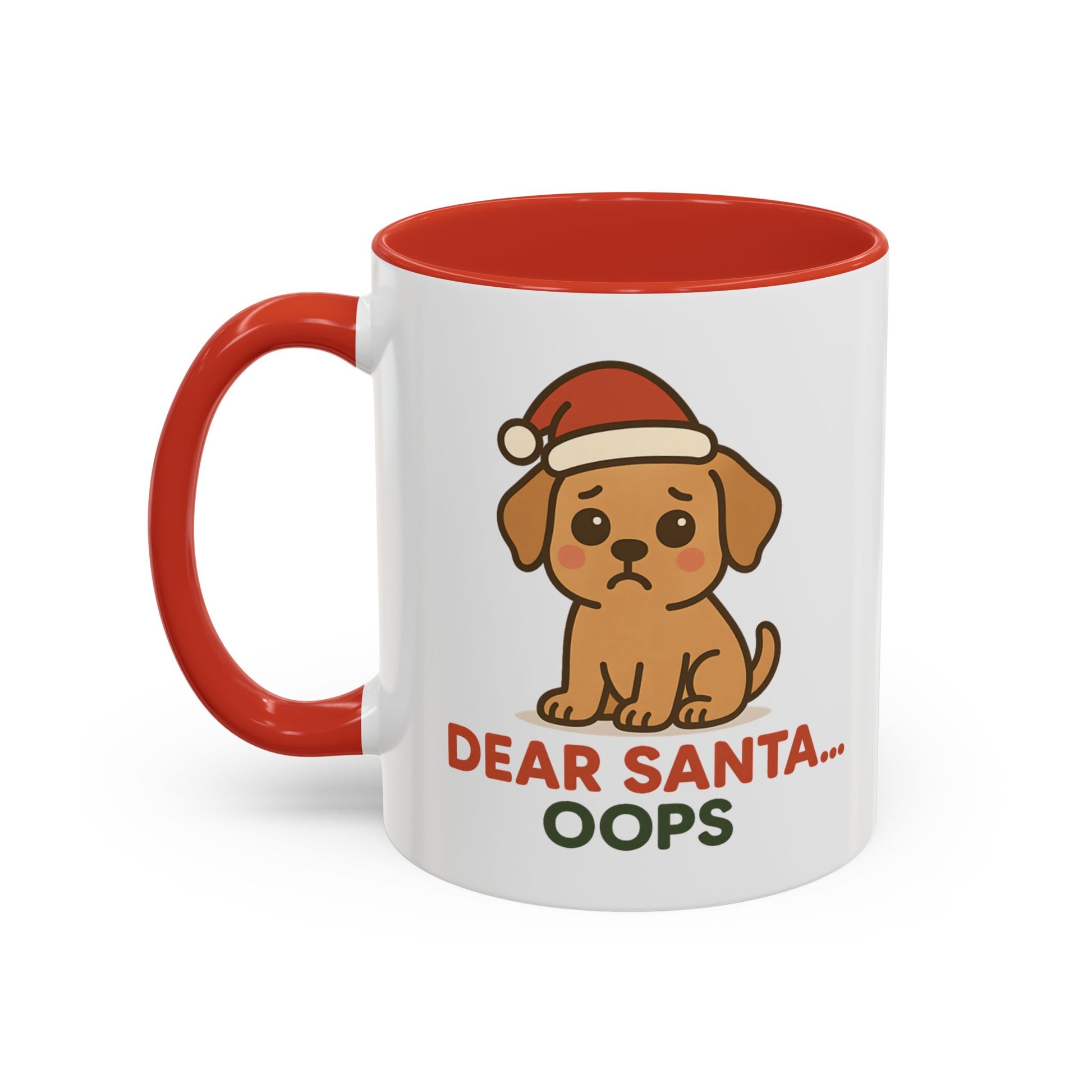 Cute Puppy “Dear Santa… Oops” Christmas Mug – Festive Holiday Dog Design, 11oz & 15oz Ceramic Coffee Cup.