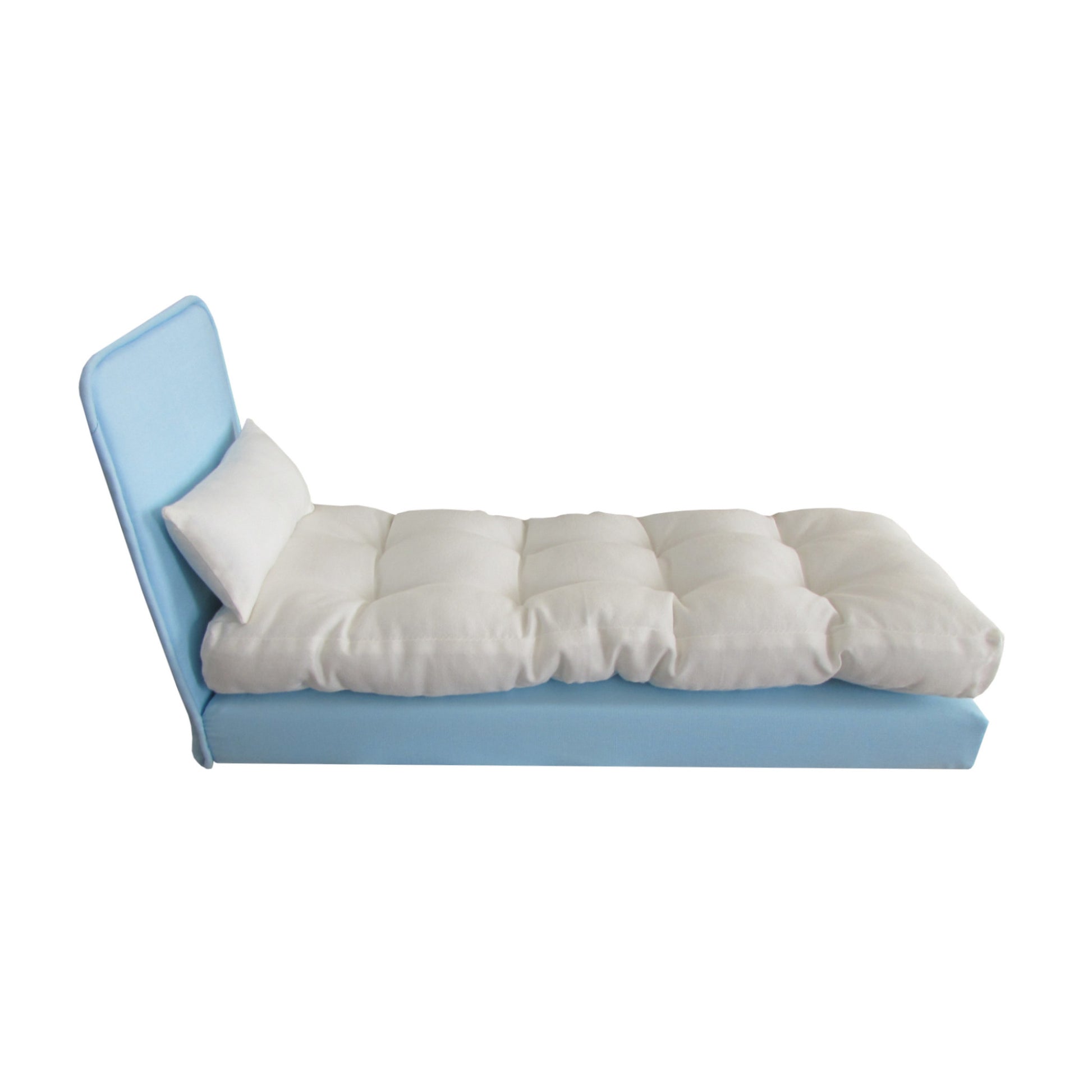 Upholstered Light Blue Doll Bed for 11 1/2-inch and 12-inch dolls.