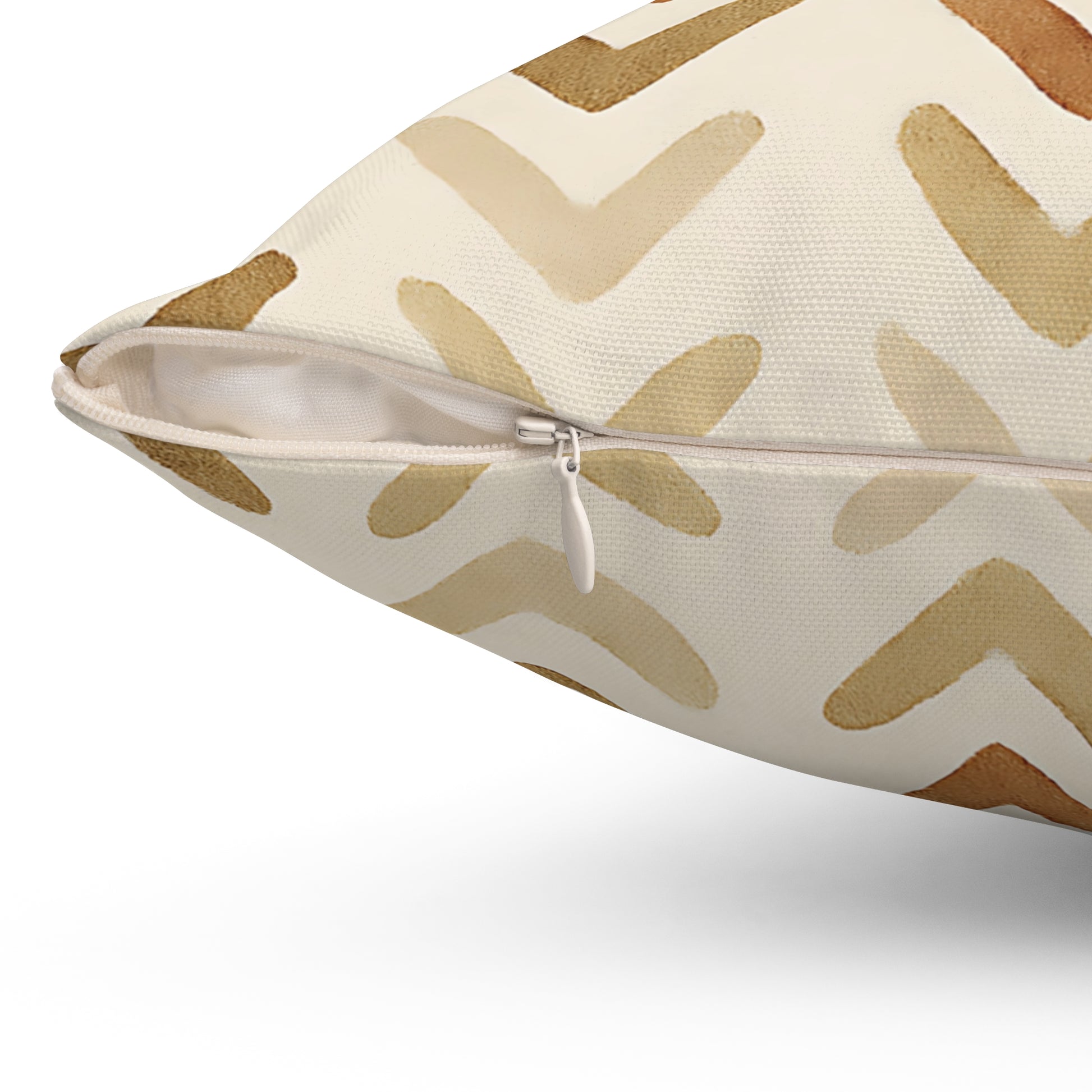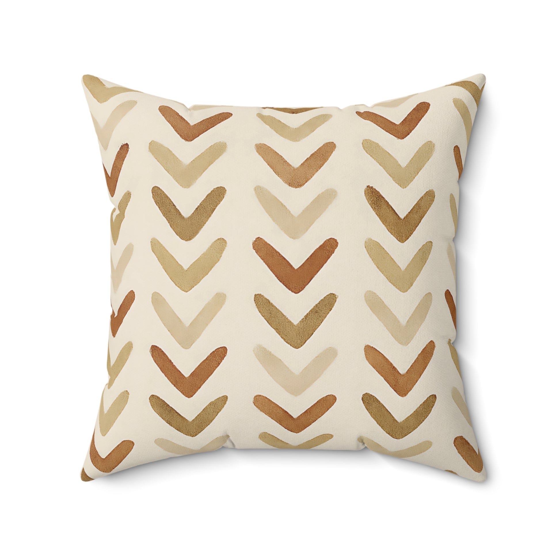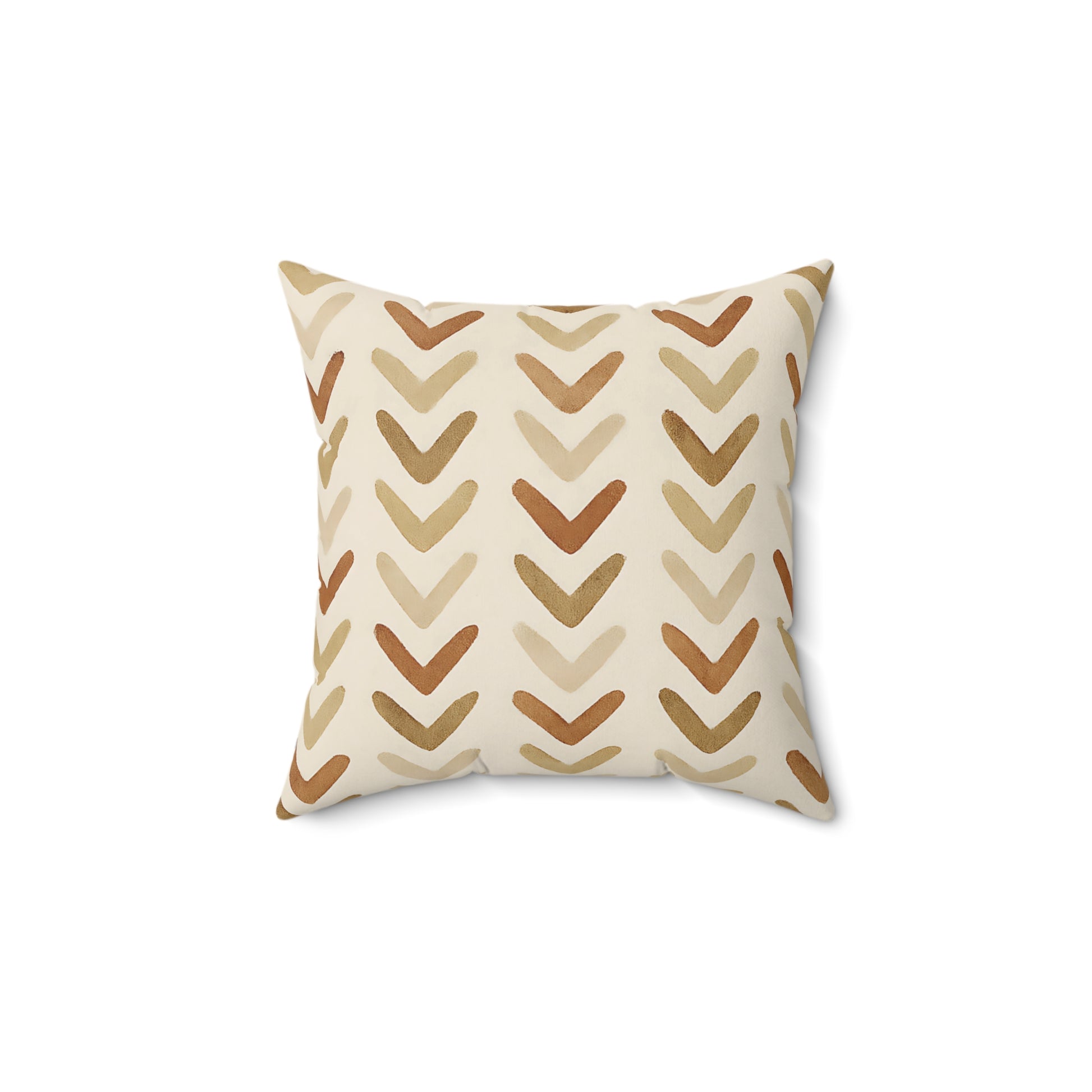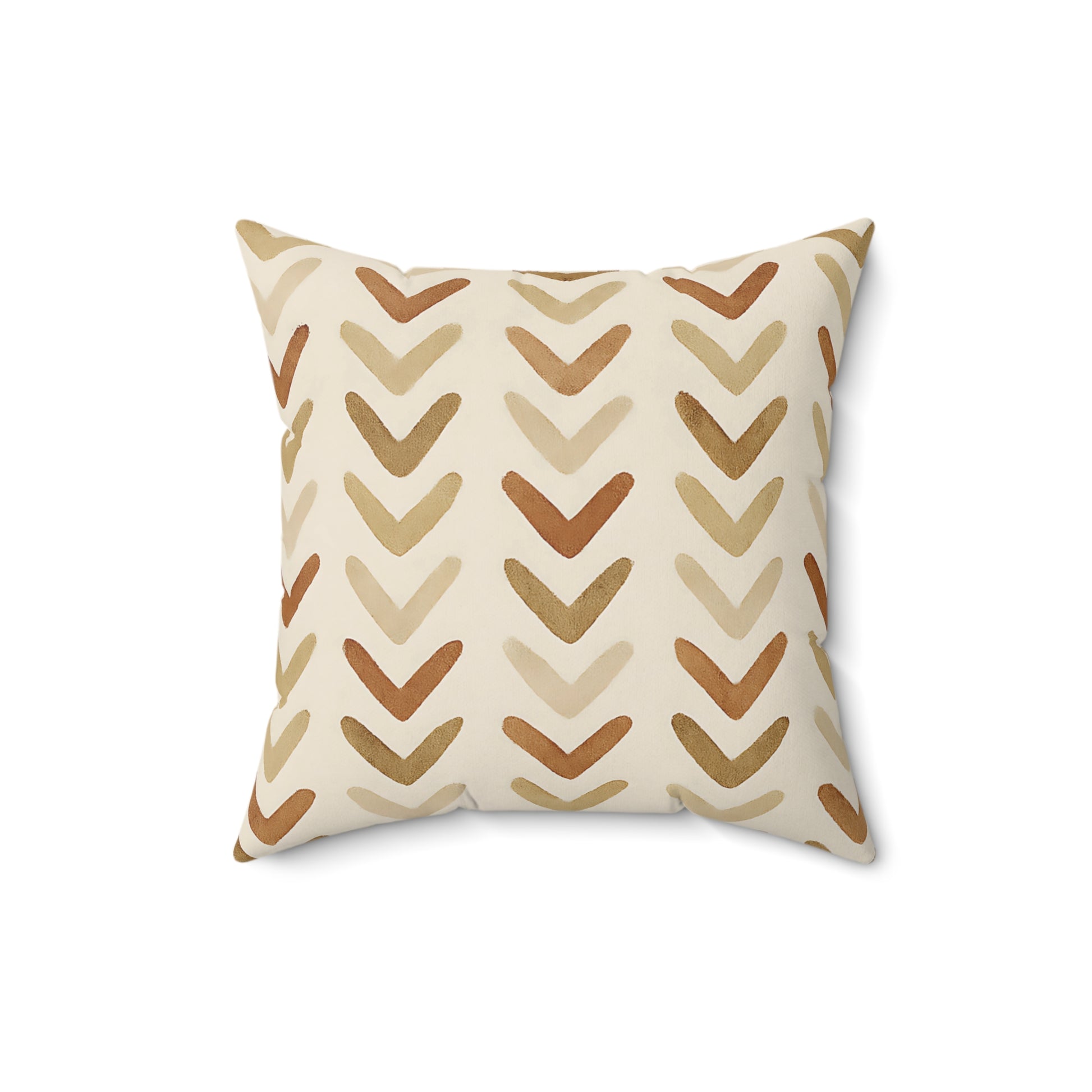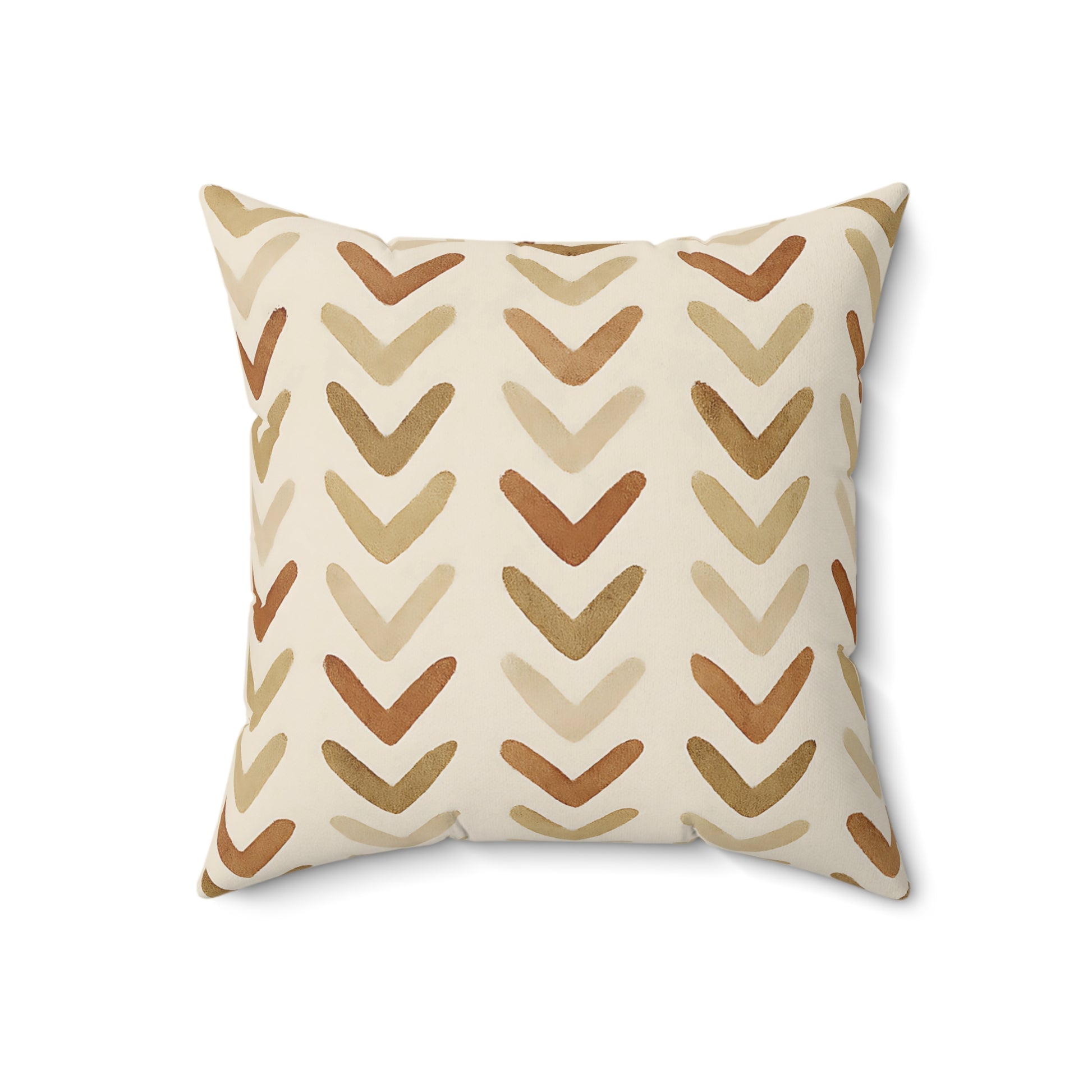 Add warmth and style to your space with this Earth Tone Chevron Throw Pillow, featuring a hand-painted V-pattern in a range of soft tan, terracotta, and clay hues.