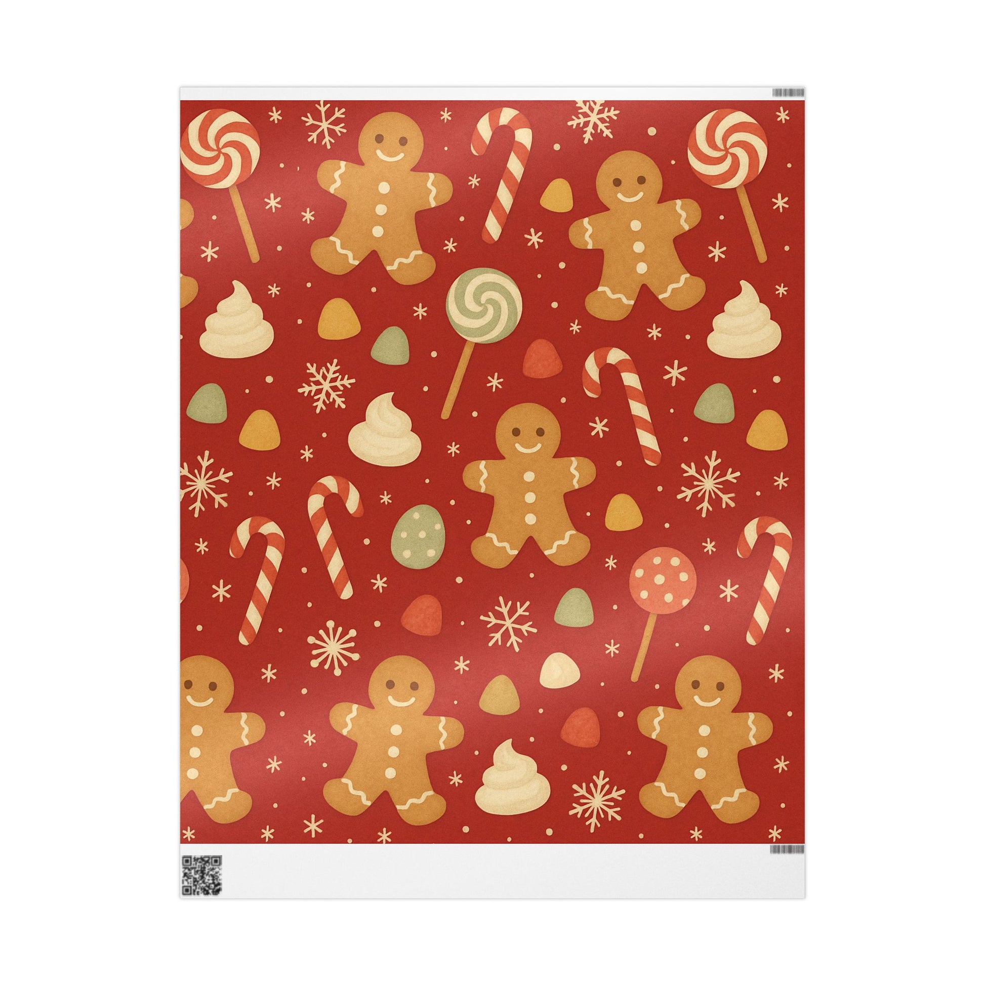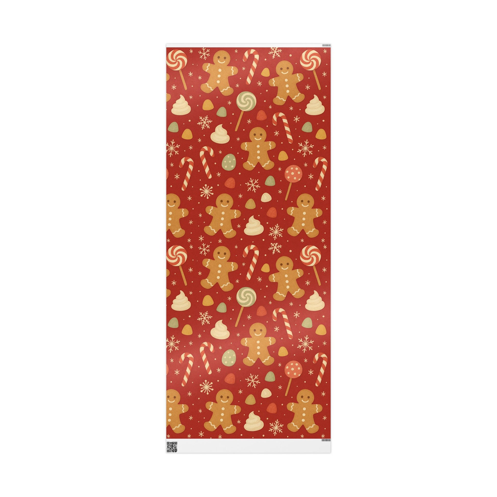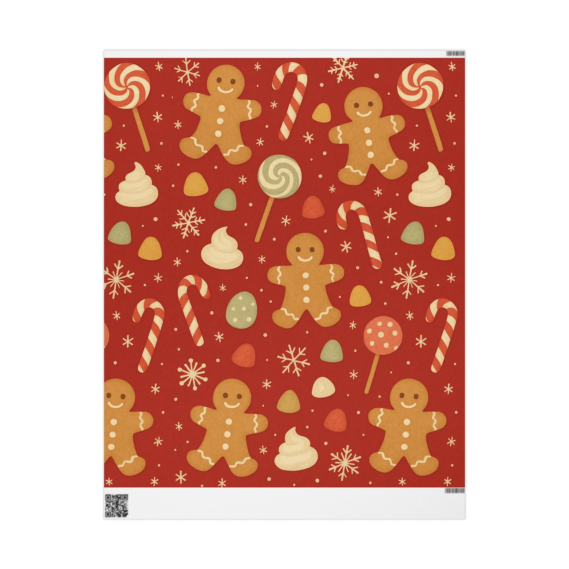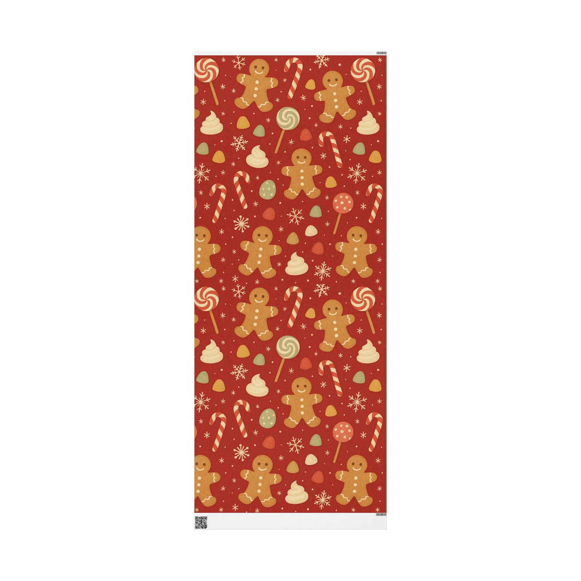 Gingerbread Christmas Wrapping Paper – Candy Canes, Gumdrops & Snowflakes on Red
