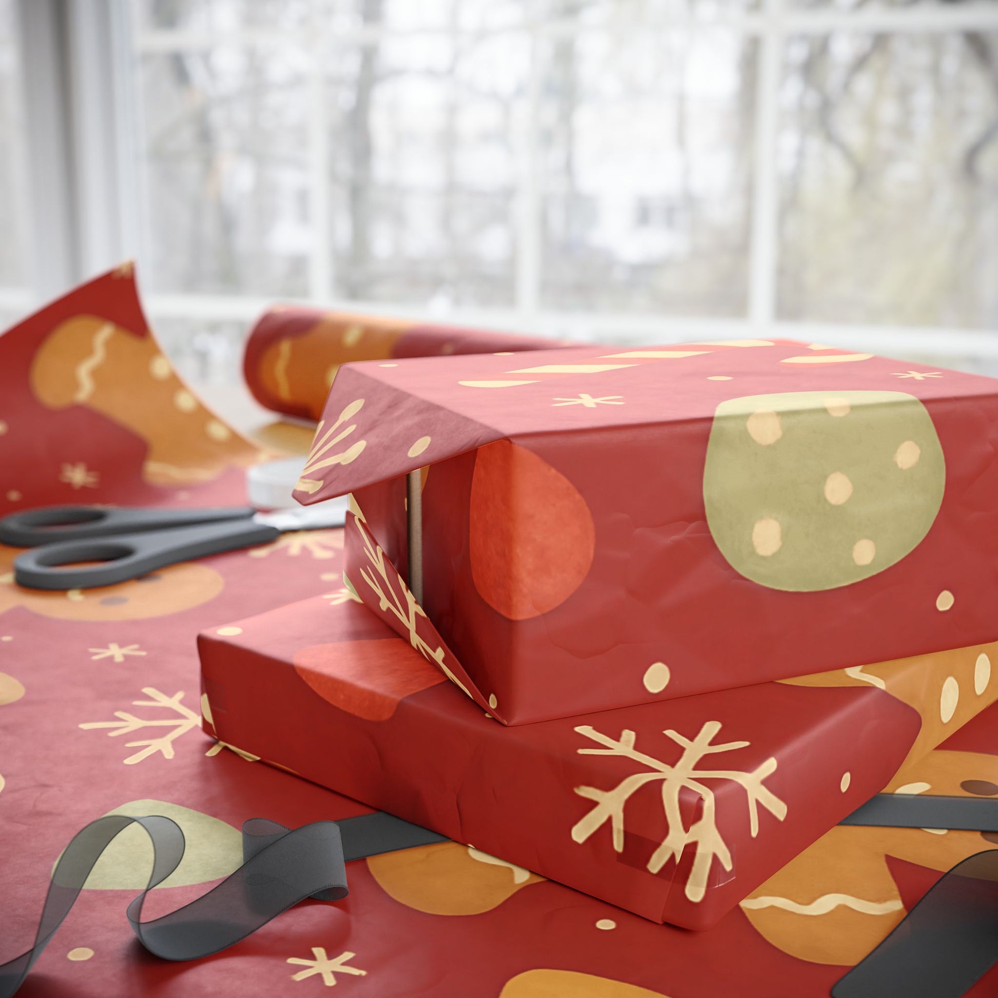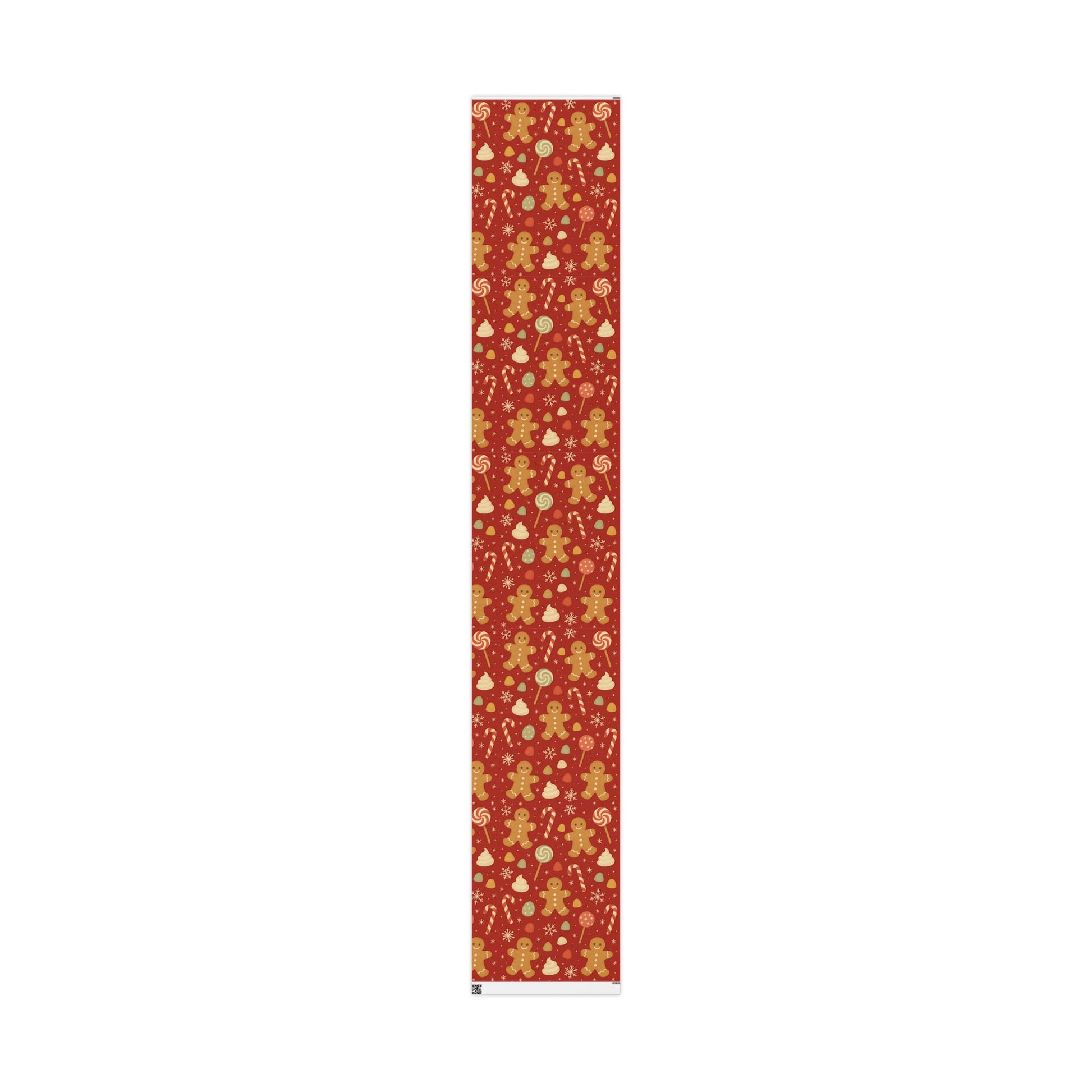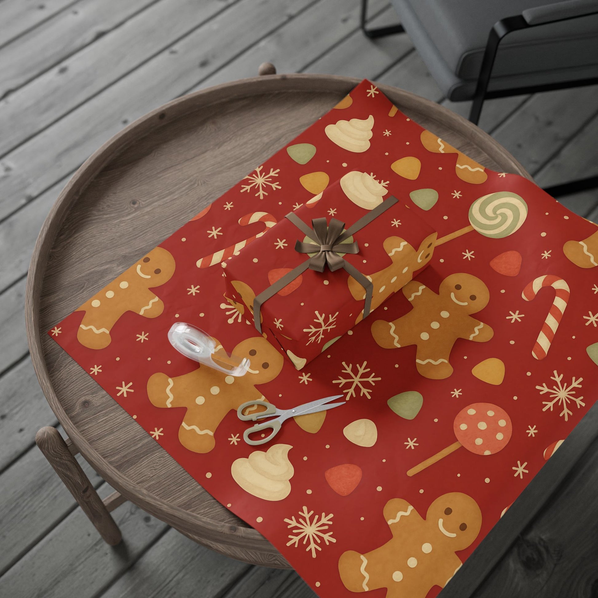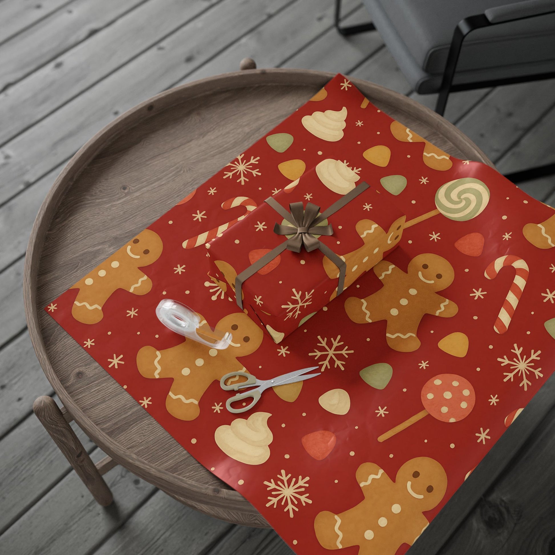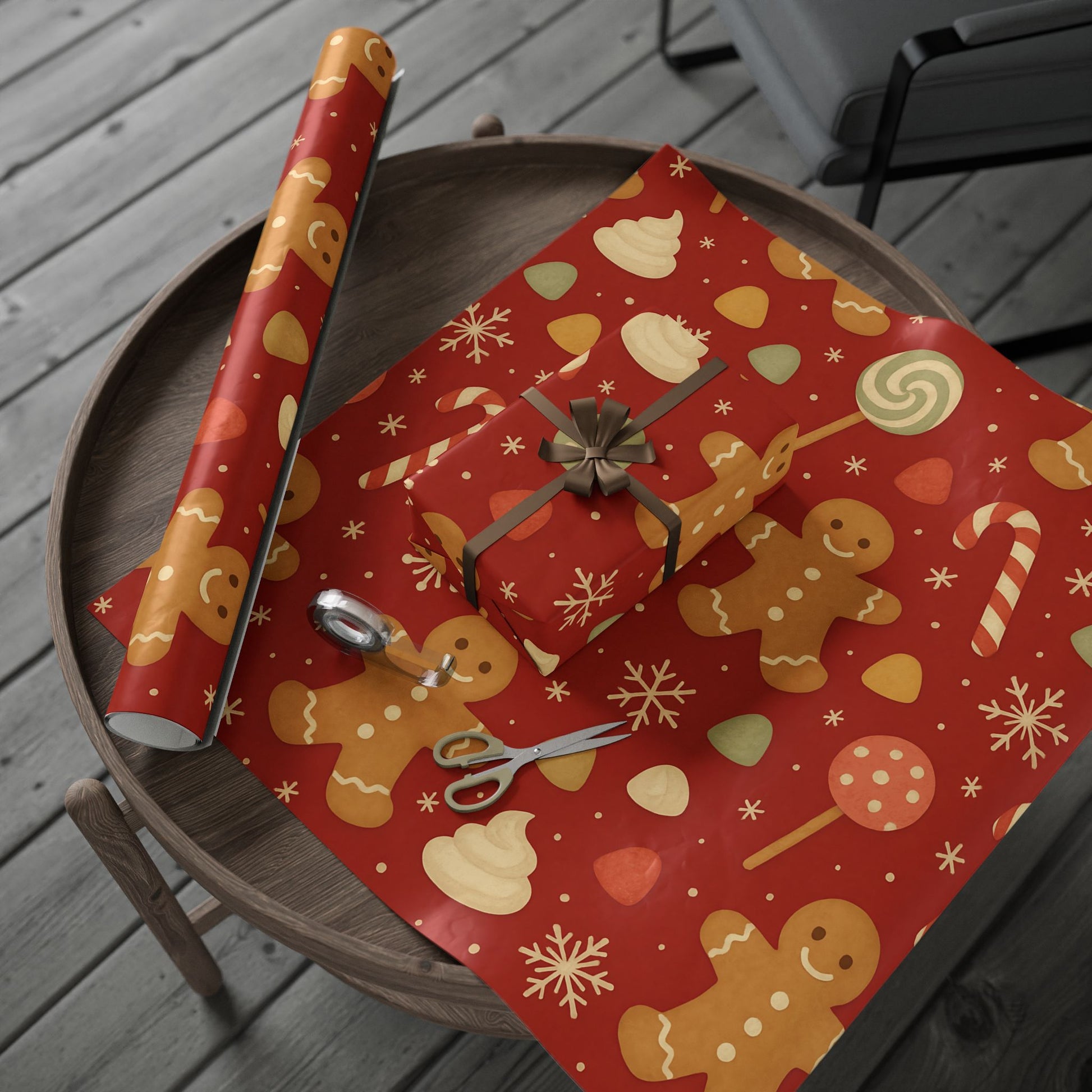 Gingerbread Christmas Wrapping Paper – Candy Canes, Gumdrops & Snowflakes on Red