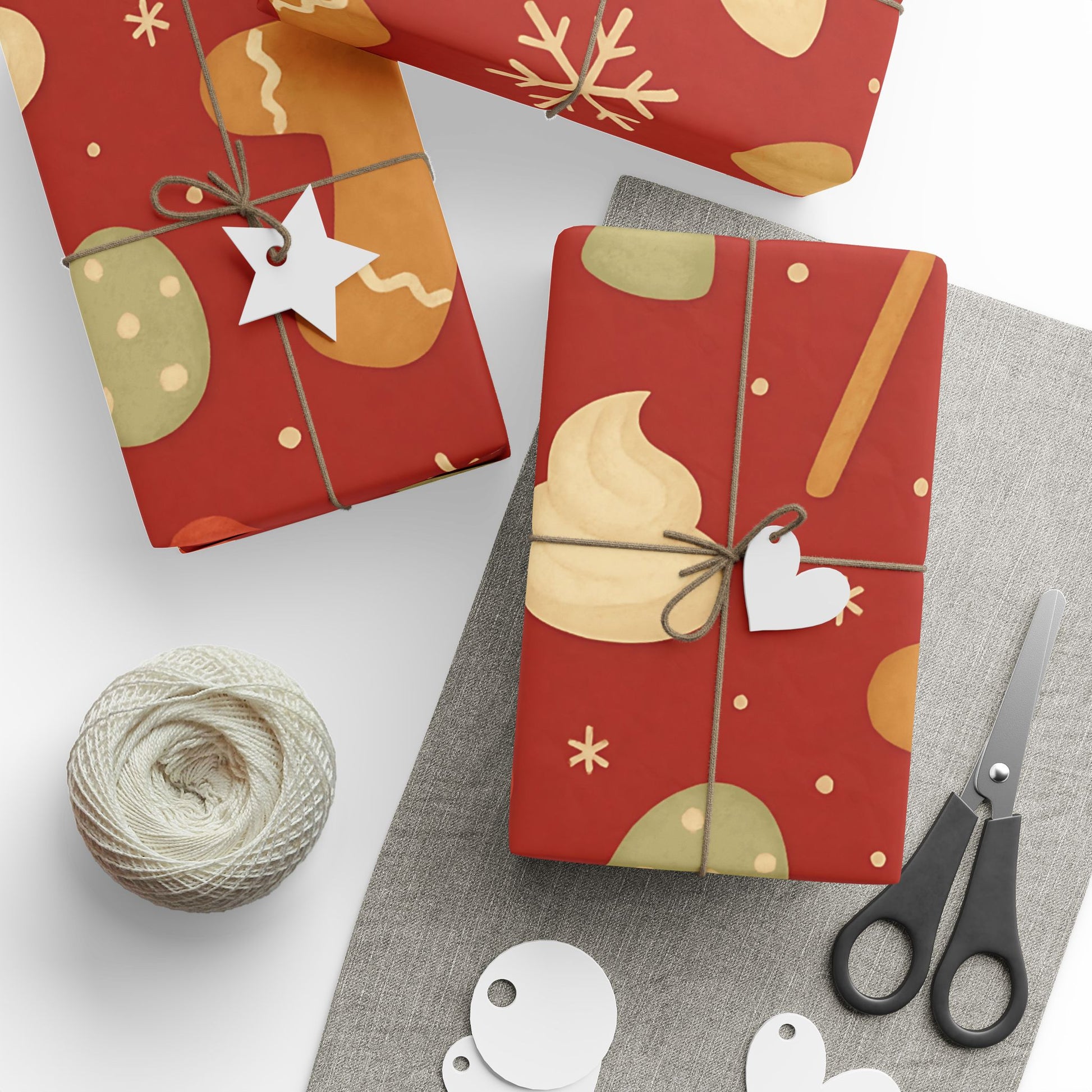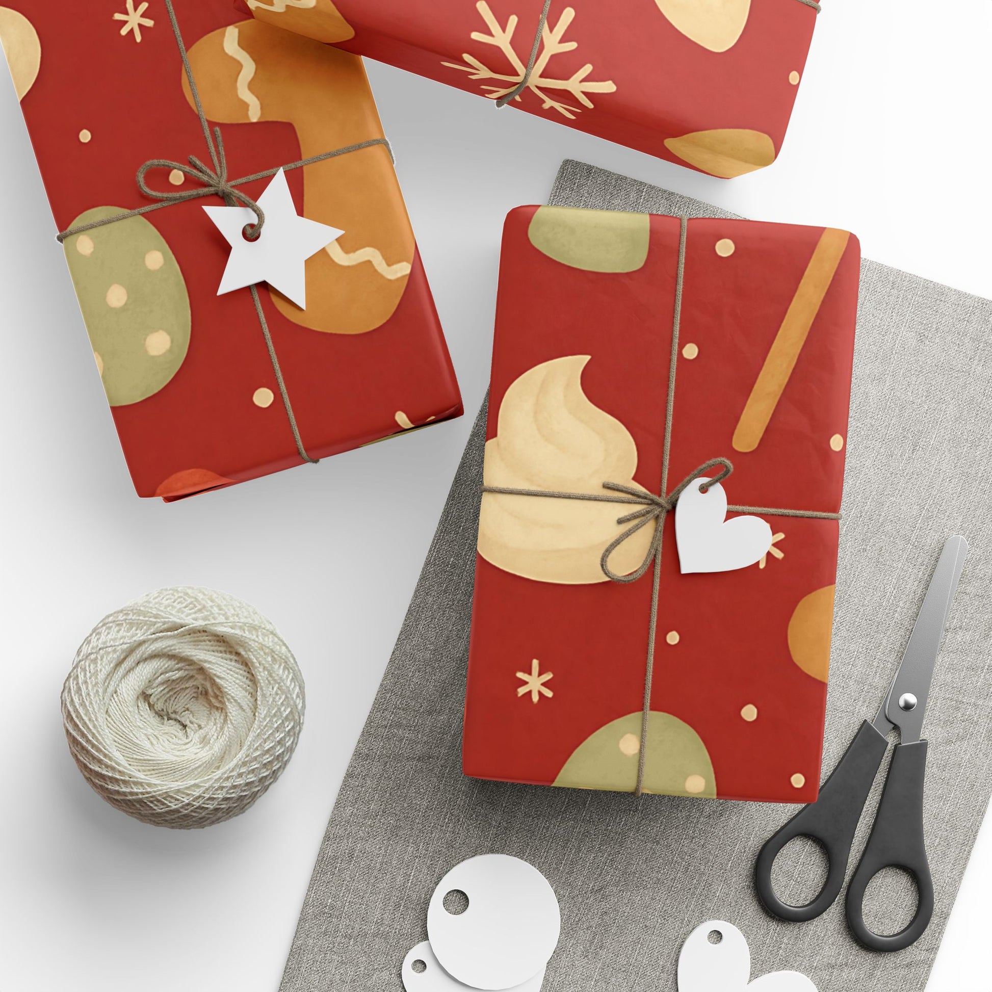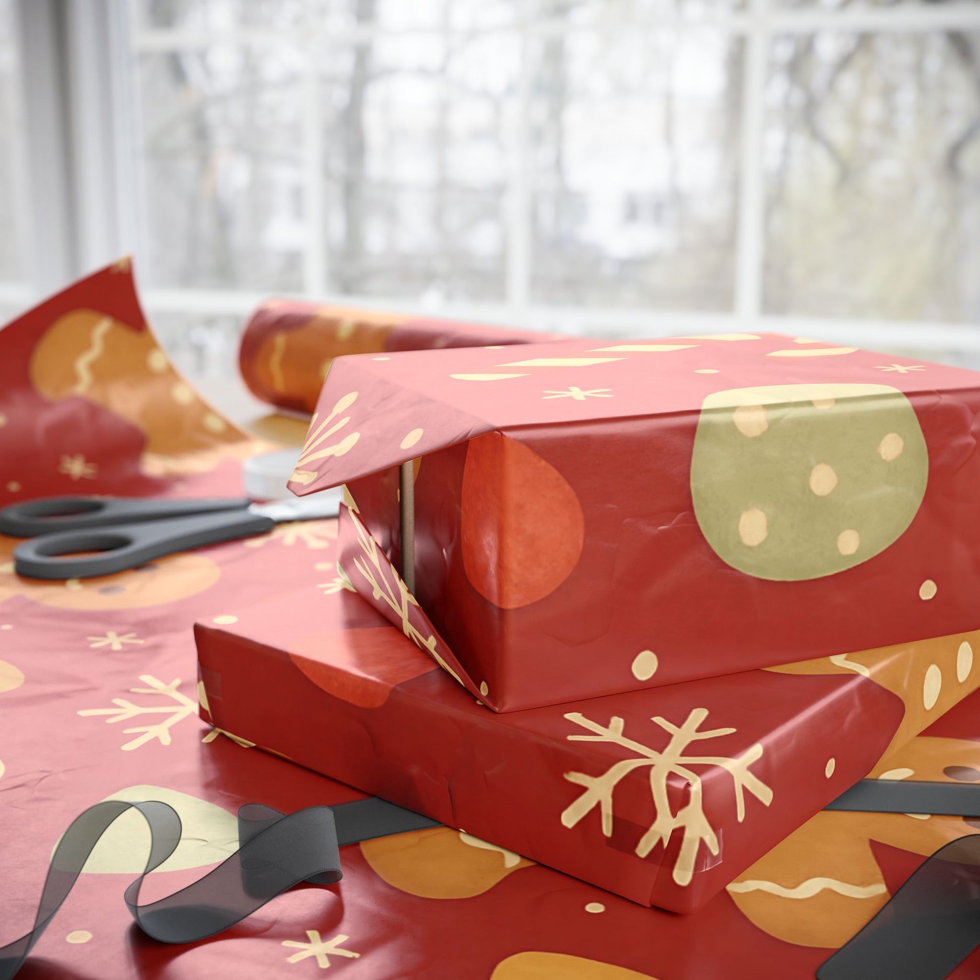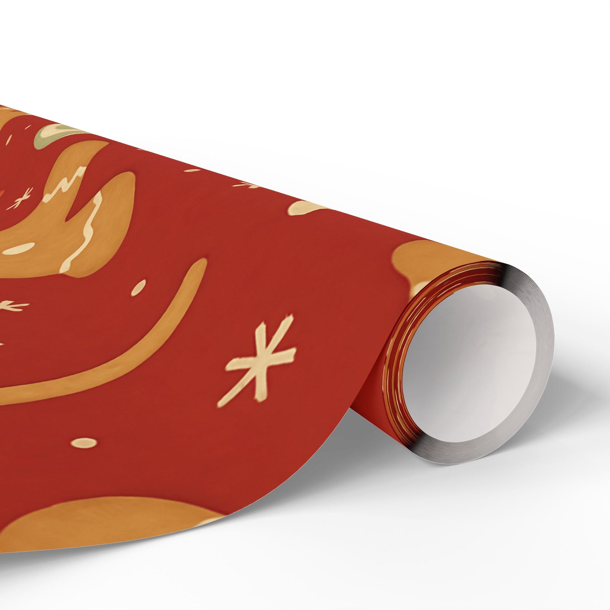 Gingerbread Christmas Wrapping Paper – Candy Canes, Gumdrops & Snowflakes on Red