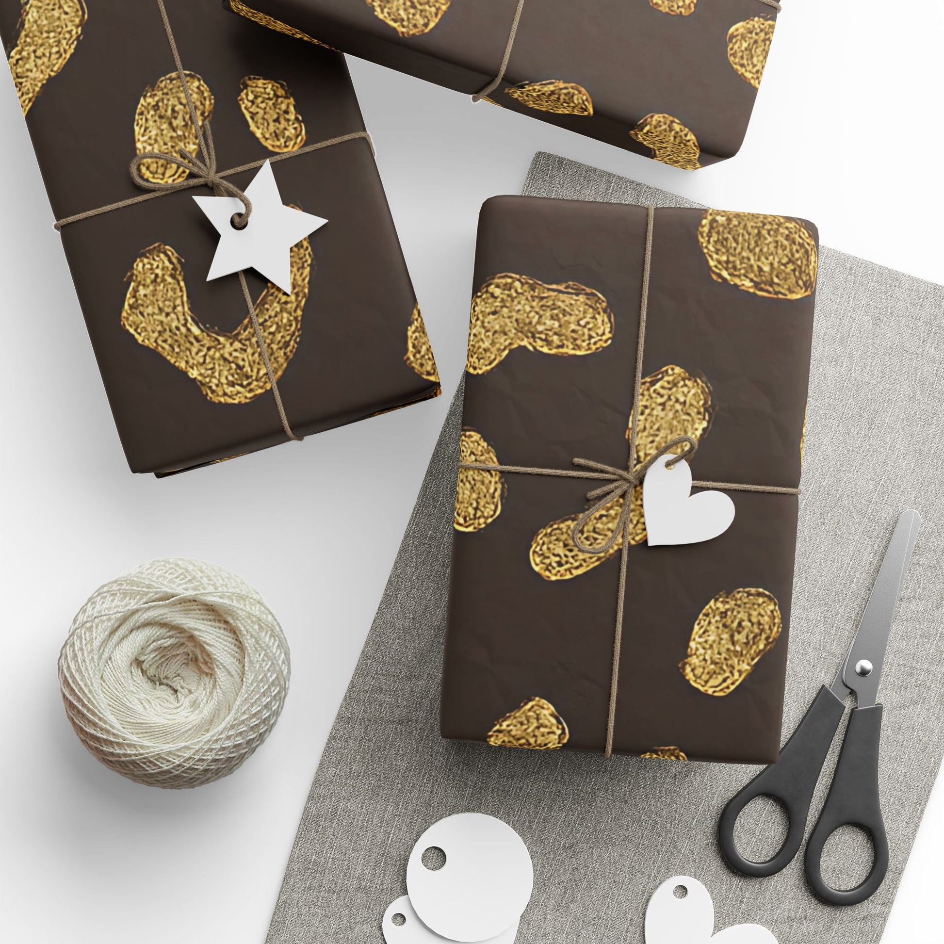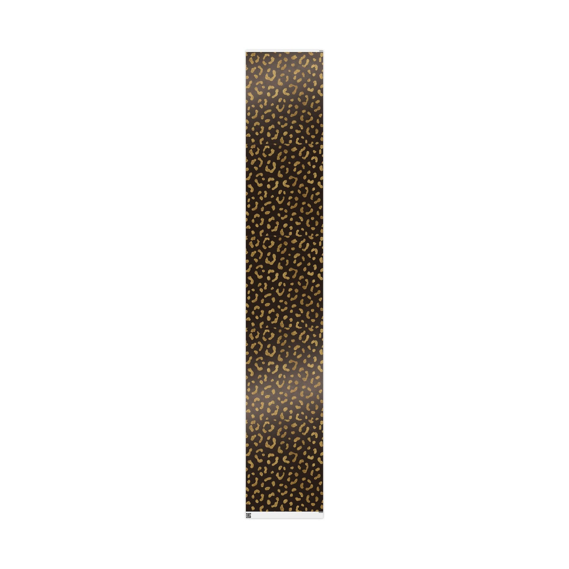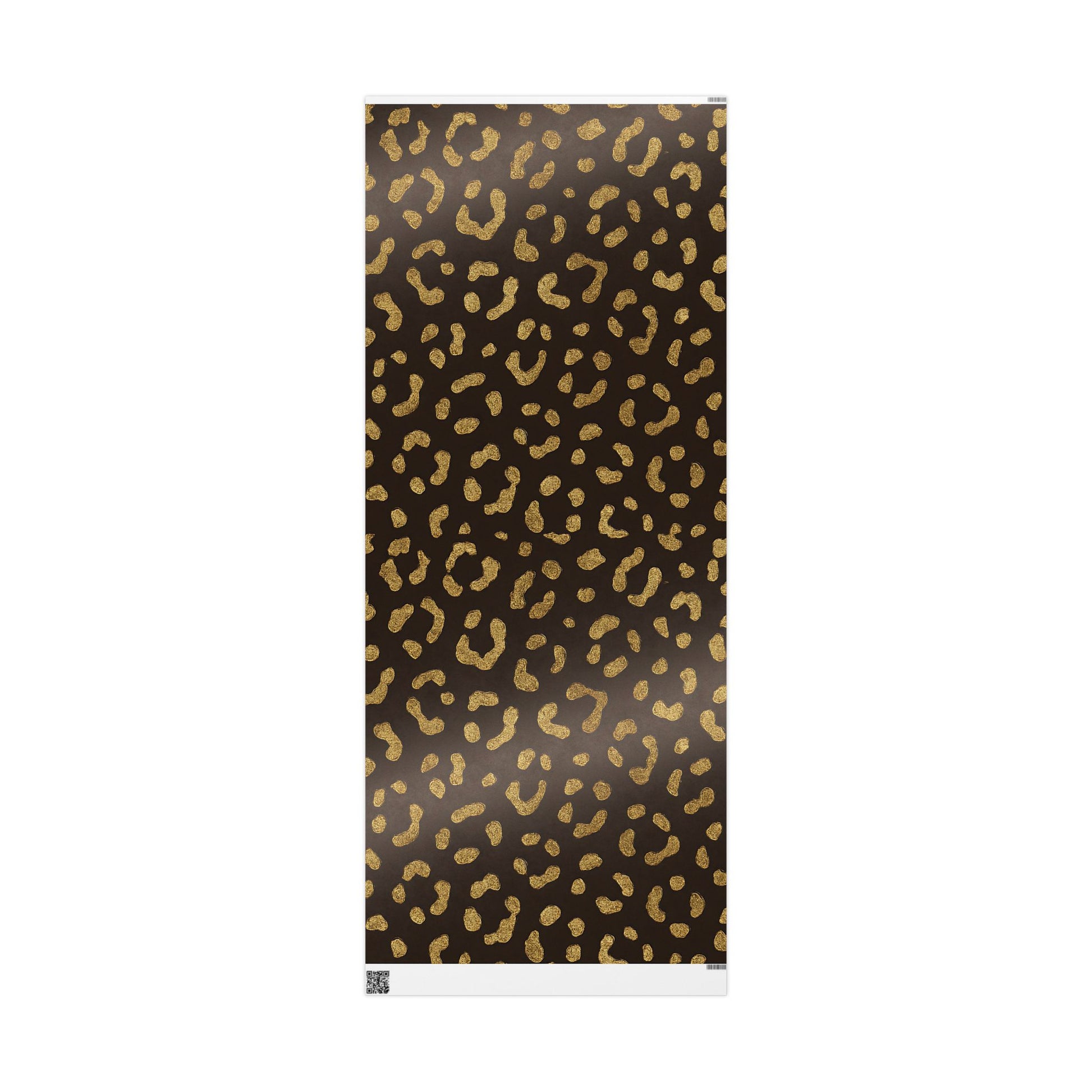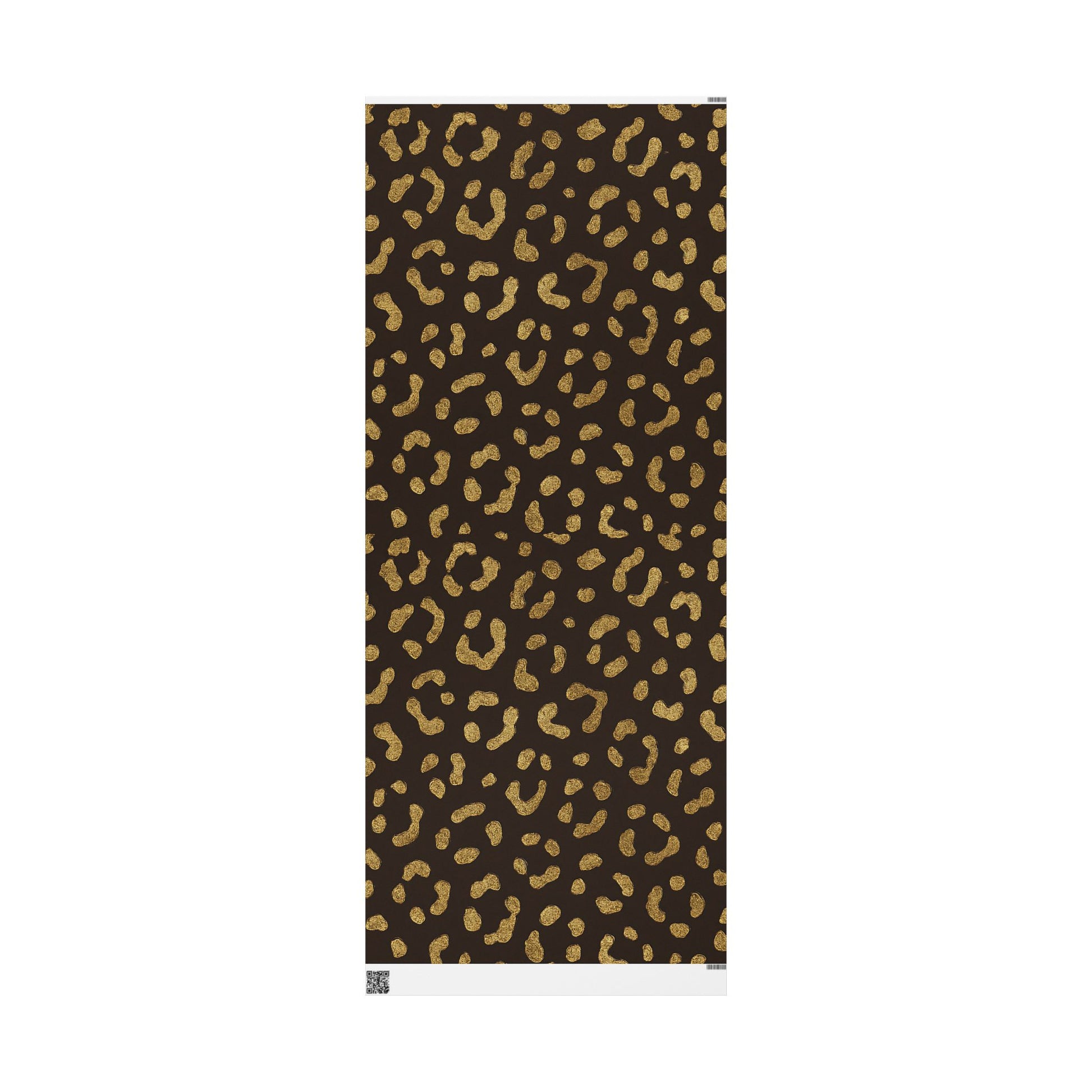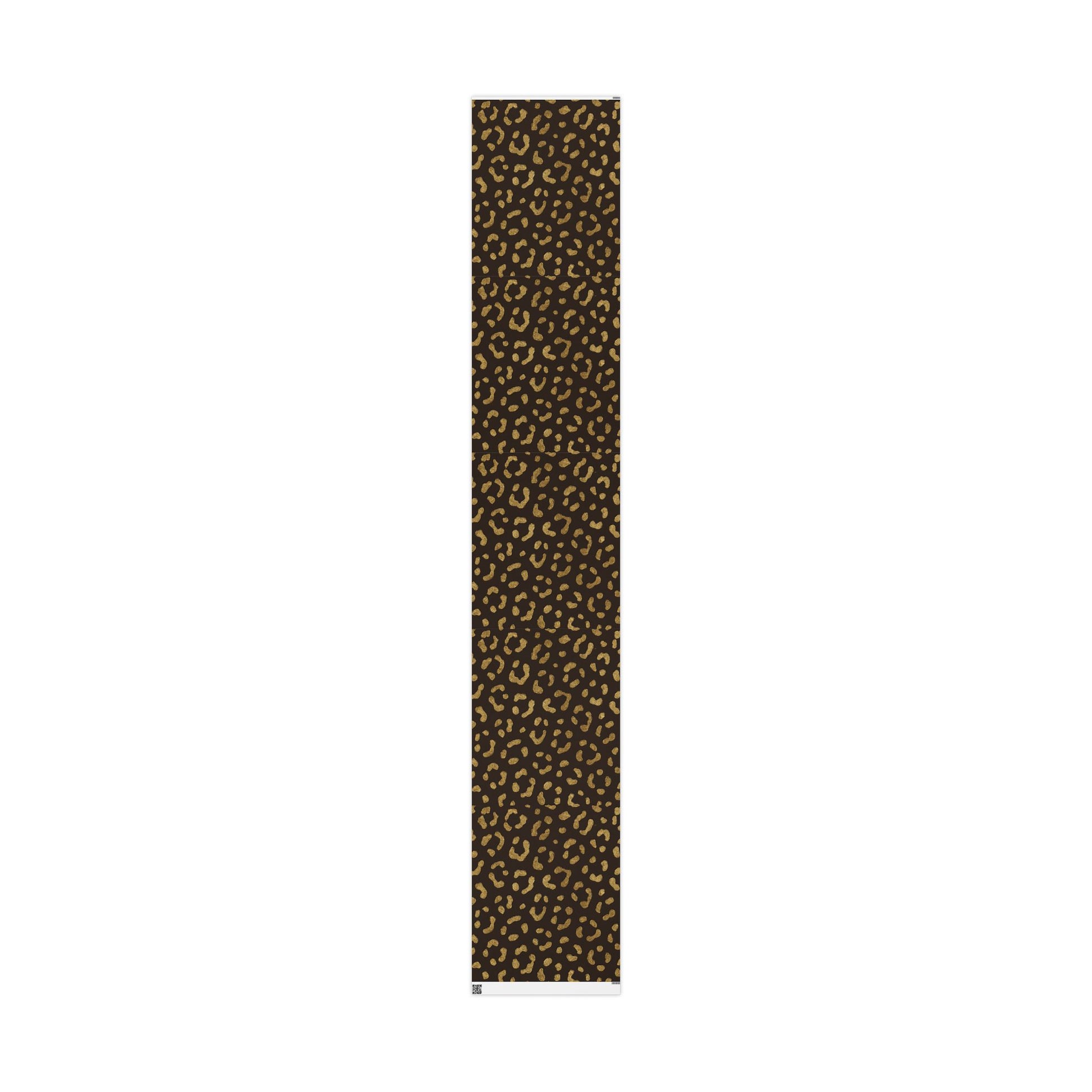 Our Gold Leopard Print Wrapping Paper features shimmering gold spots on a deep chocolate-brown background.
