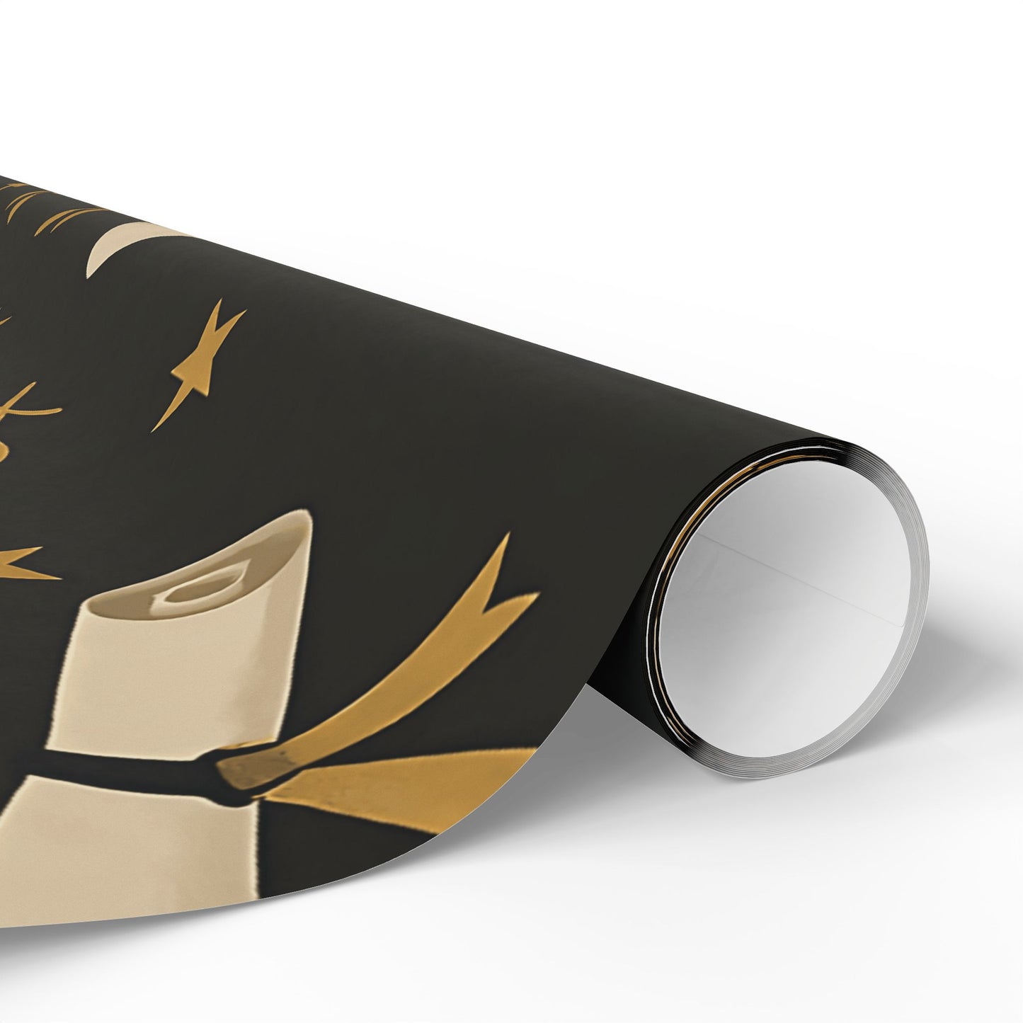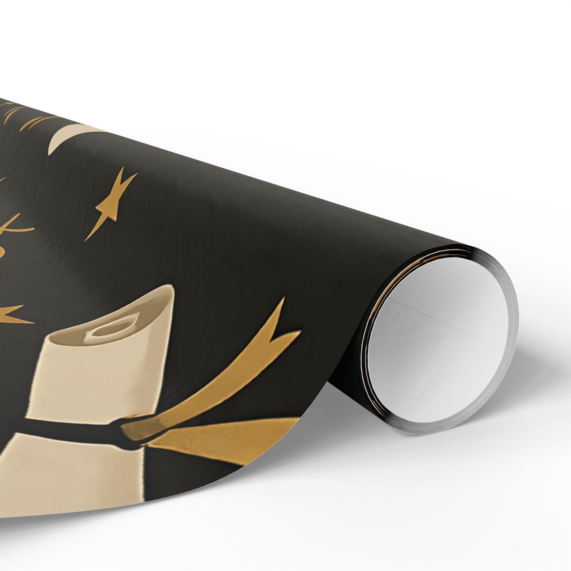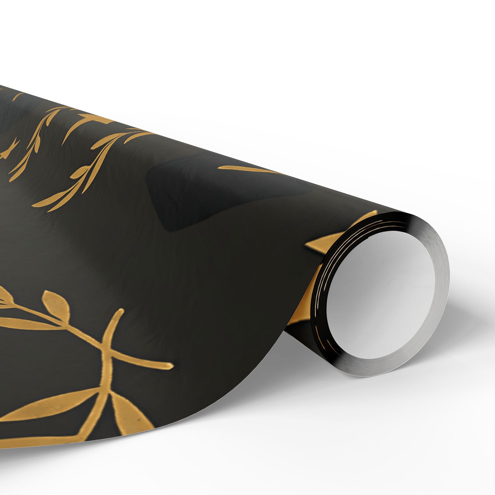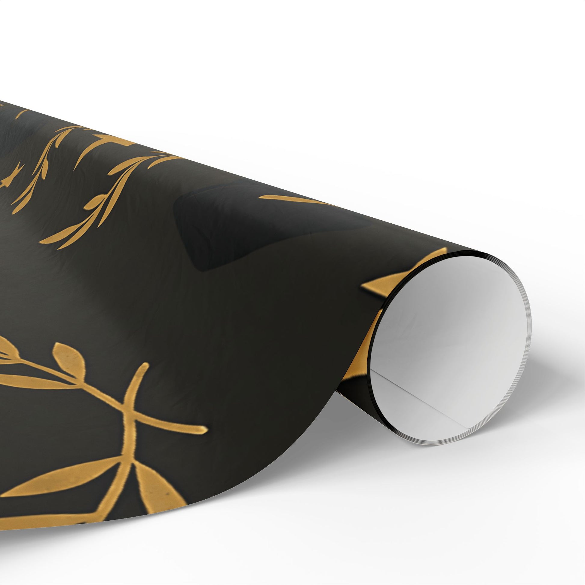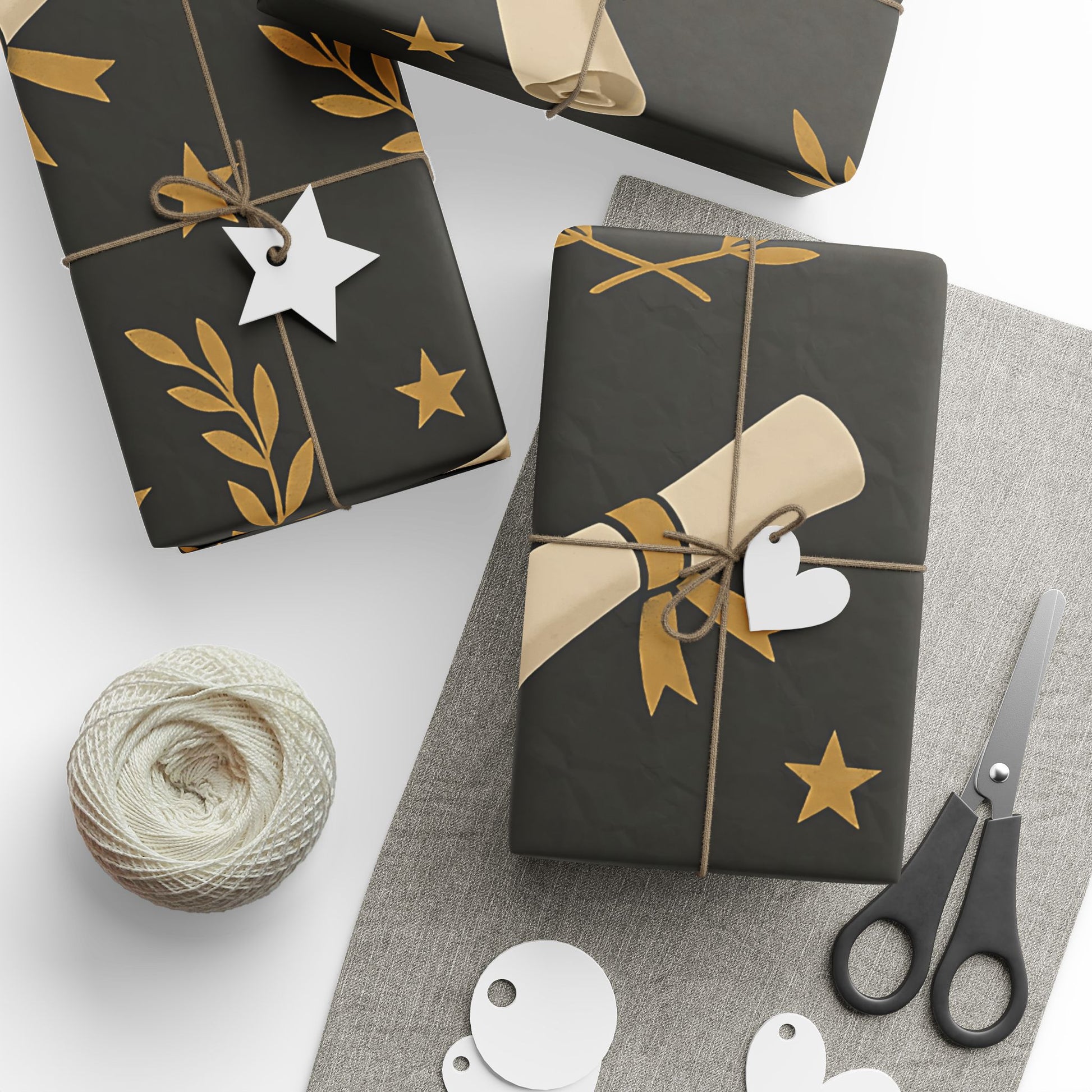 Honor your graduate’s milestone with this Graduation Celebration Wrapping Paper, featuring a sophisticated black backdrop adorned with gold laurel wreaths, diplomas, stars, and graduation caps.